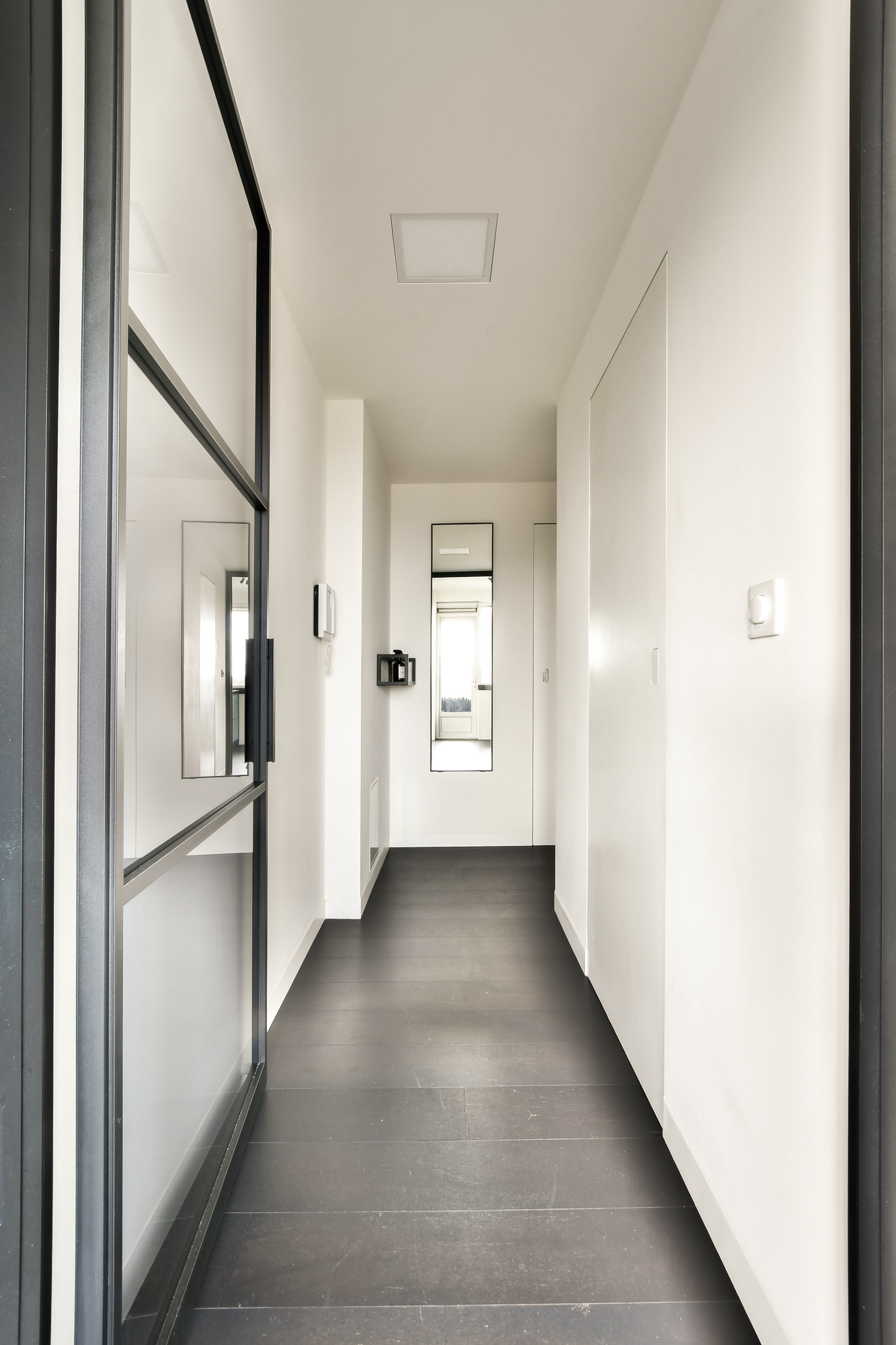 Upon entering, you step into a spacious hallway that provides access to the living room and the toilet. The bright living room with a modern open kitchen is fitted with large windows, allowing for plenty of natural light and creating an open and spacious atmosphere. You can also enjoy a beautiful view from here, offering a sense of tranquility right in the city.