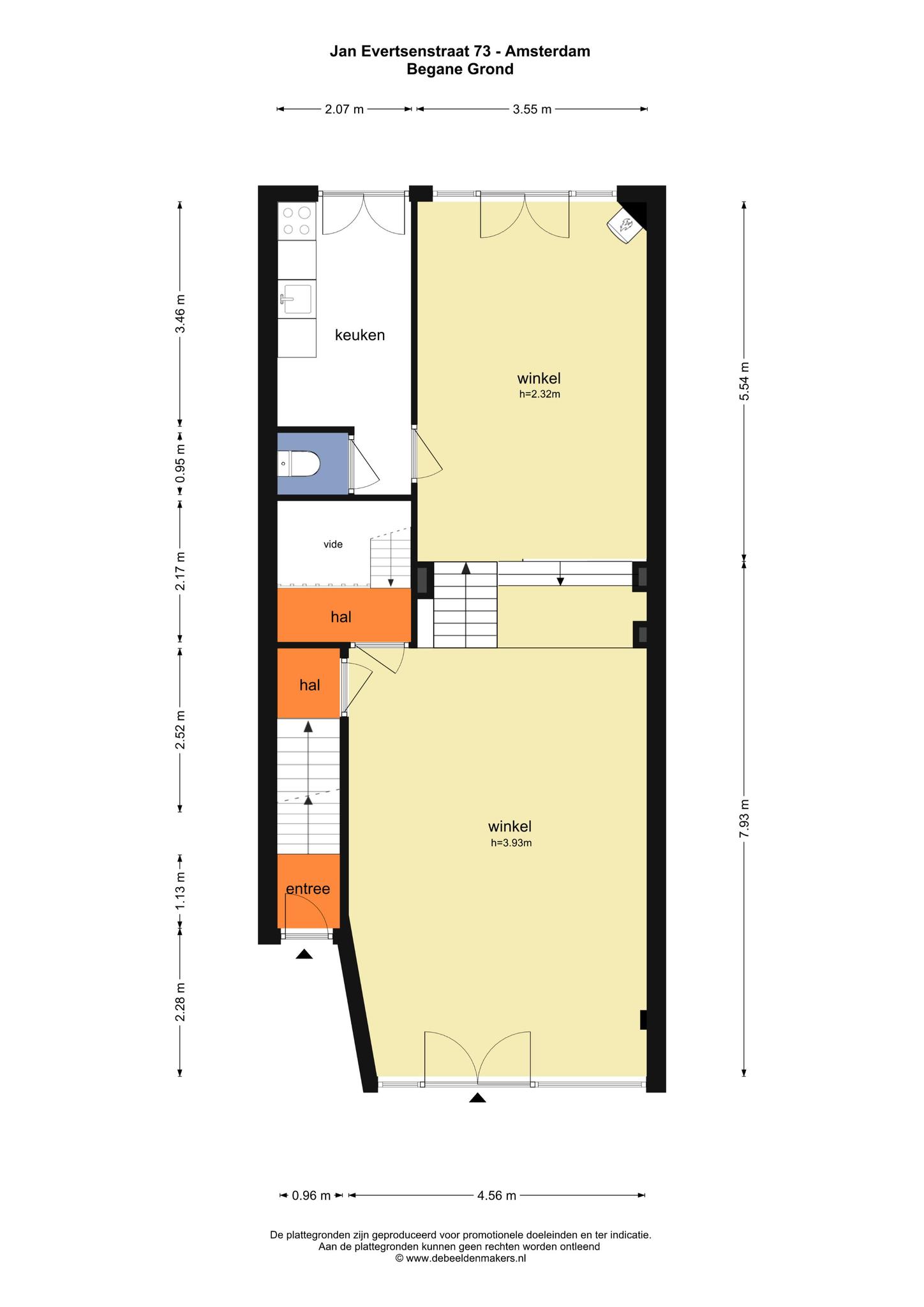 Retail space of 134 m² on the busy Jan Evertsenstraat in the cozy area De Baarsjes around the corner from Mercatorplein and Admiraal de Ruijterweg. The store has a split level, allowing maximum use of space. The retail space is located near all kinds of hotspots such as Fort Negen, Cafe Cook and De Biertuin West.