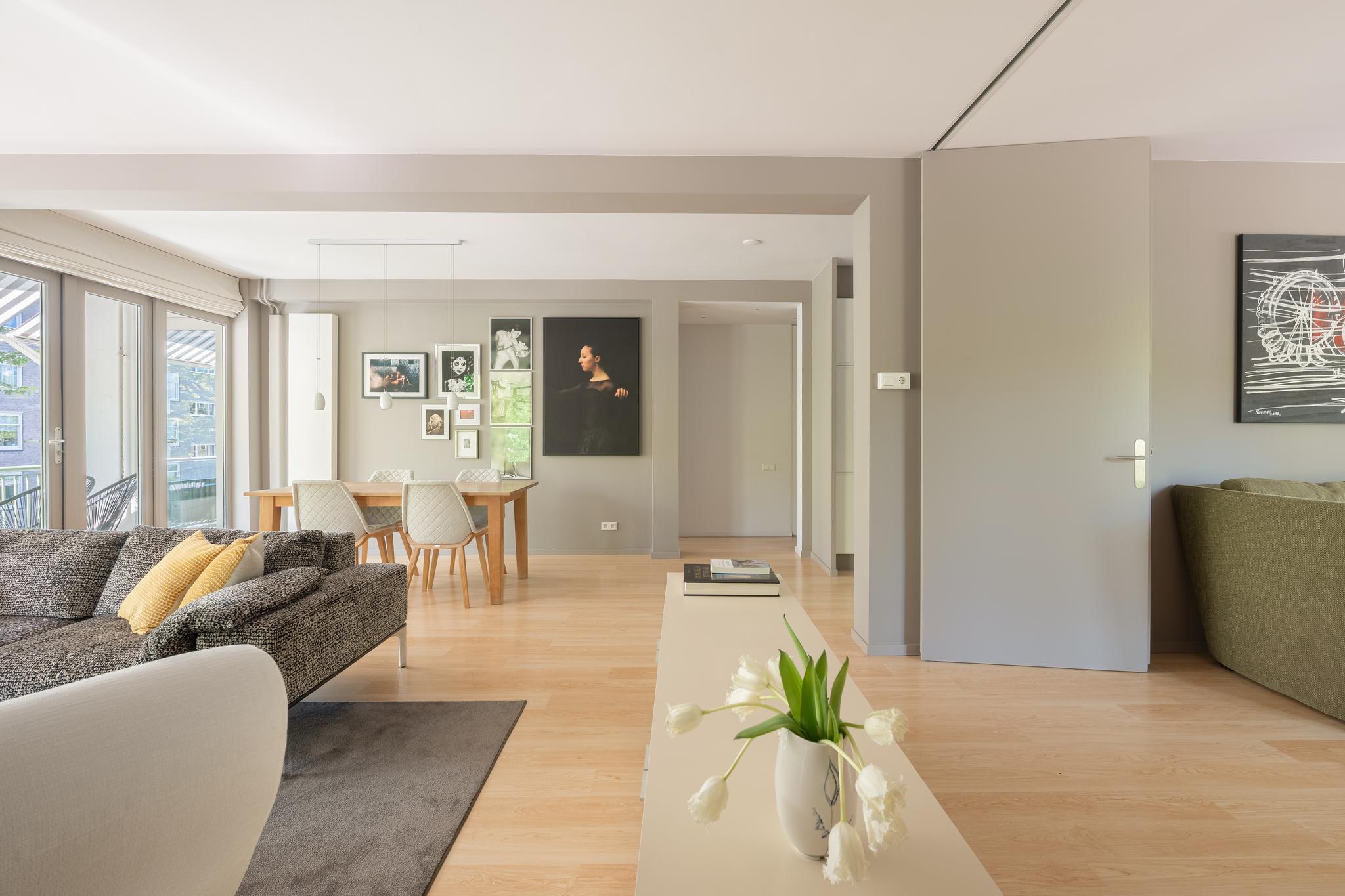 Wonderfully bright and spacious upper-floor apartment of approximately 102 m², located just a stone's throw from the beautiful Beatrixpark and around the corner from the Zuidas. The apartment is situated on the second floor and includes a storage room on the ground floor. Energy label A and the ground lease has been BOUGHT OFF in perpetuity!