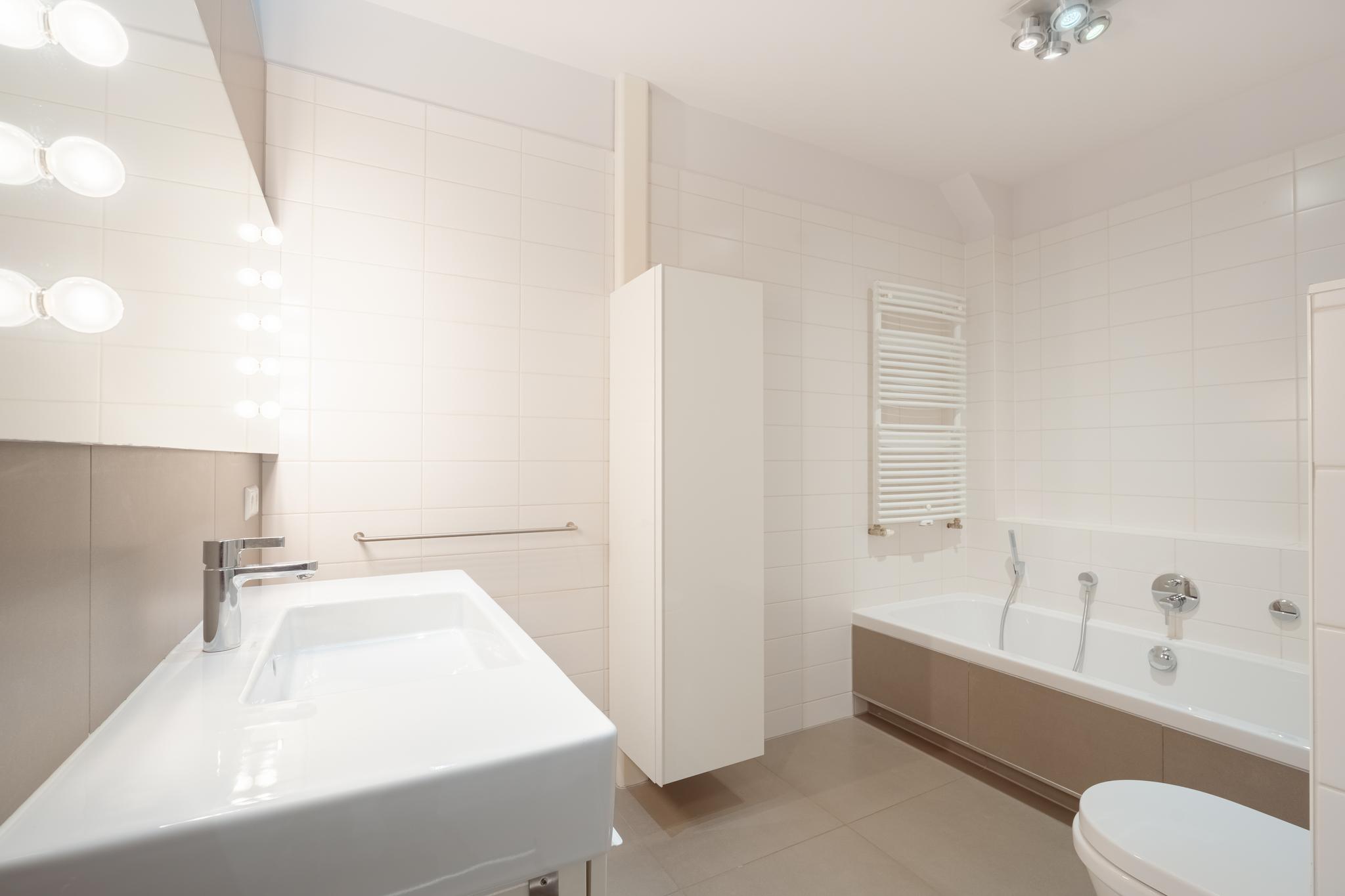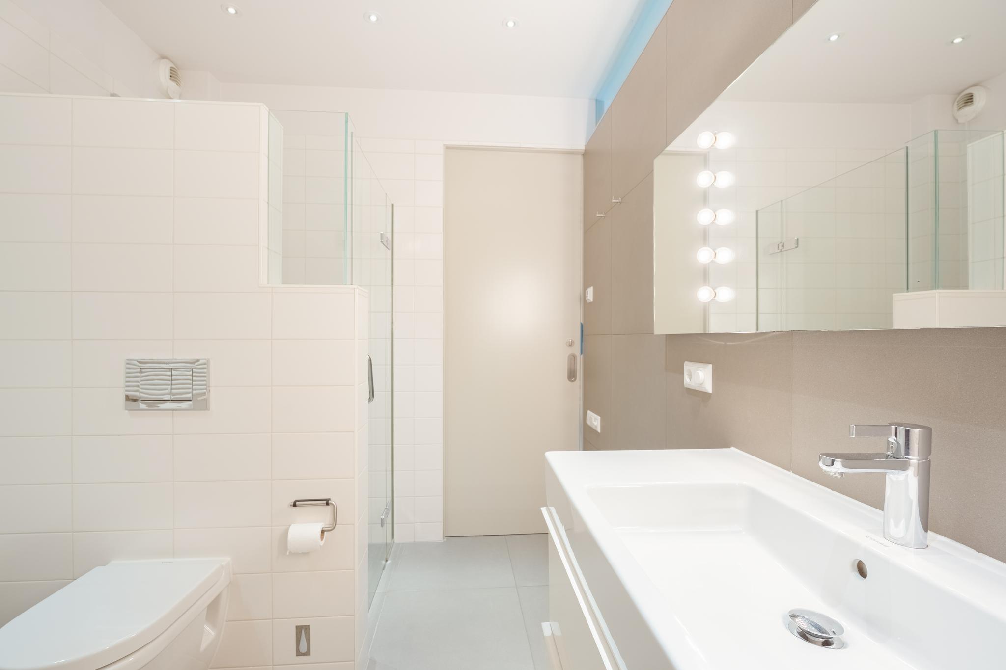 - Bathroom amenities Ligbad, toilet, wastafel, wastafelmeubel, inloopdouche, vloerverwarming