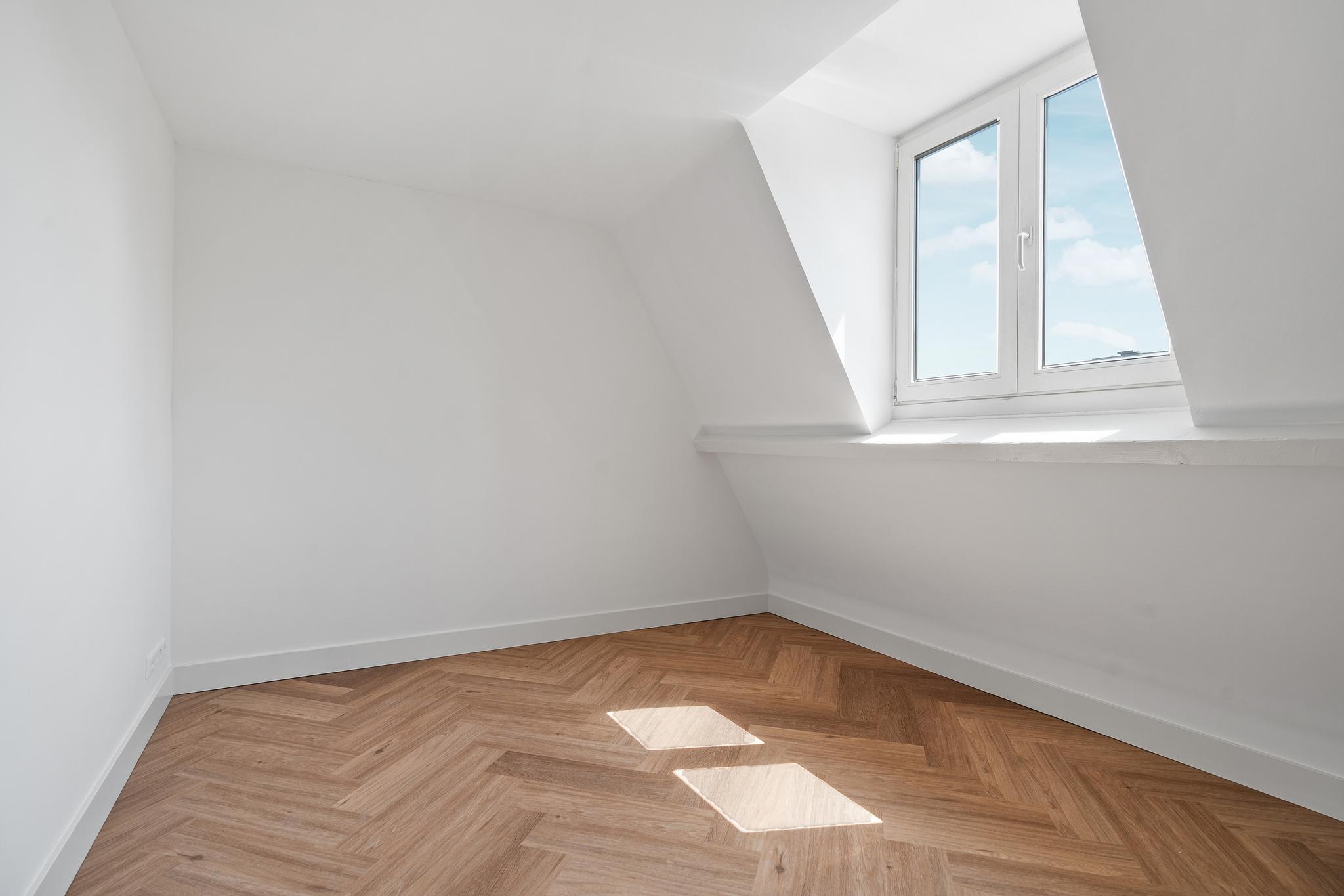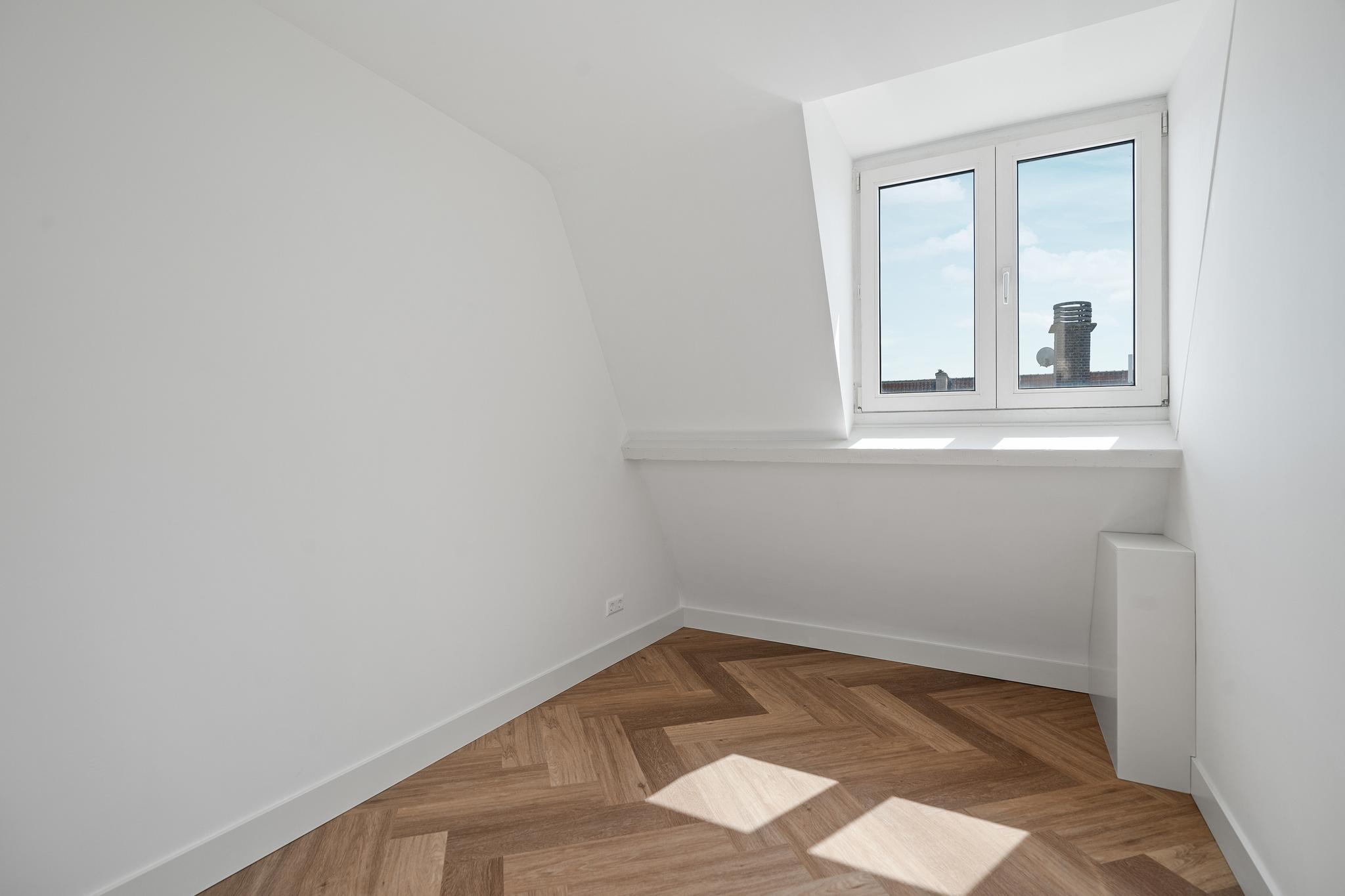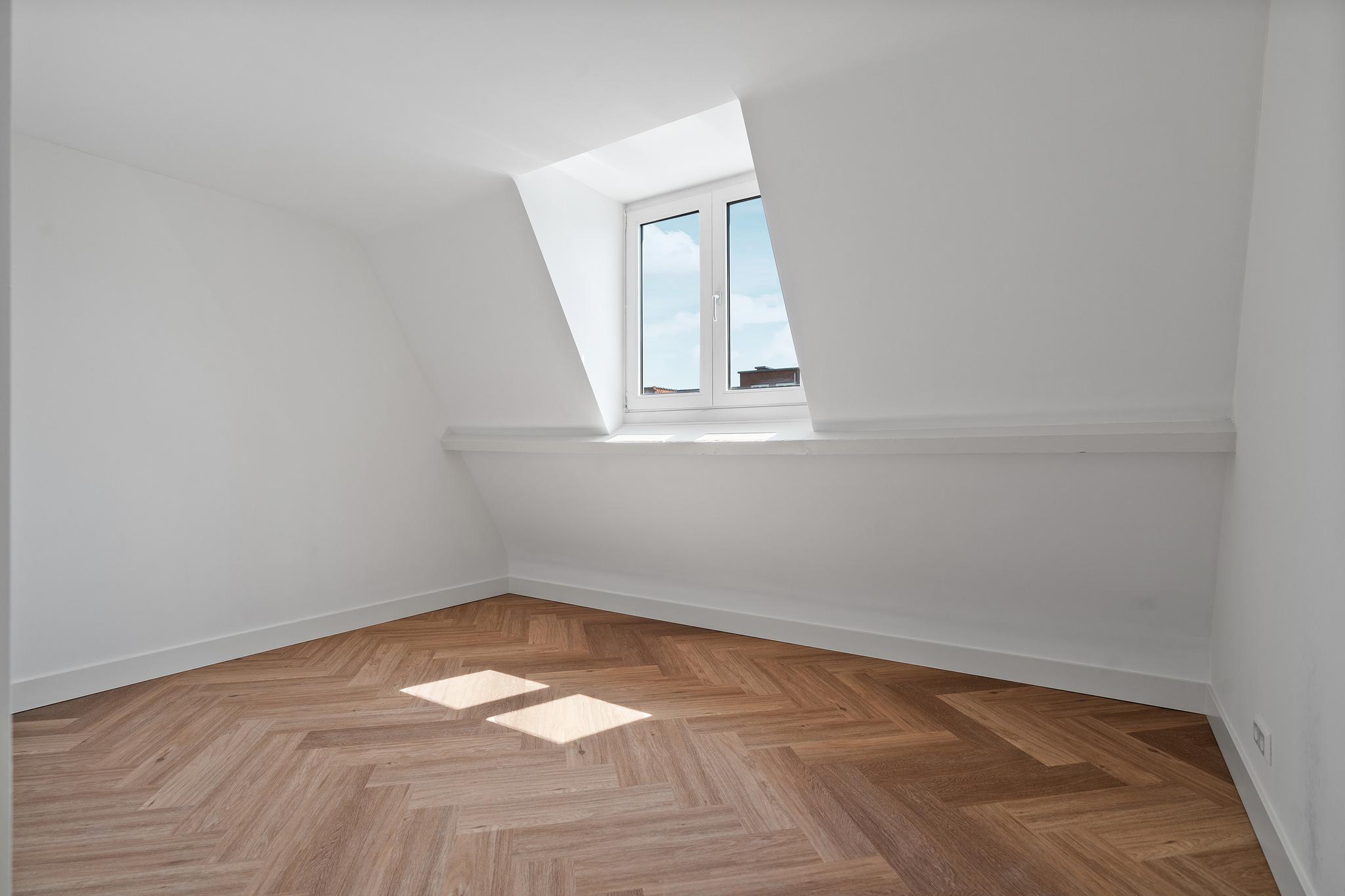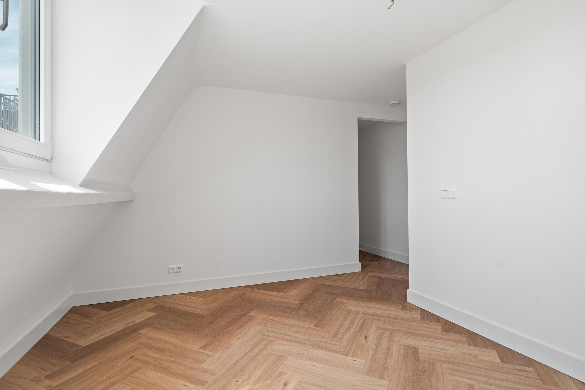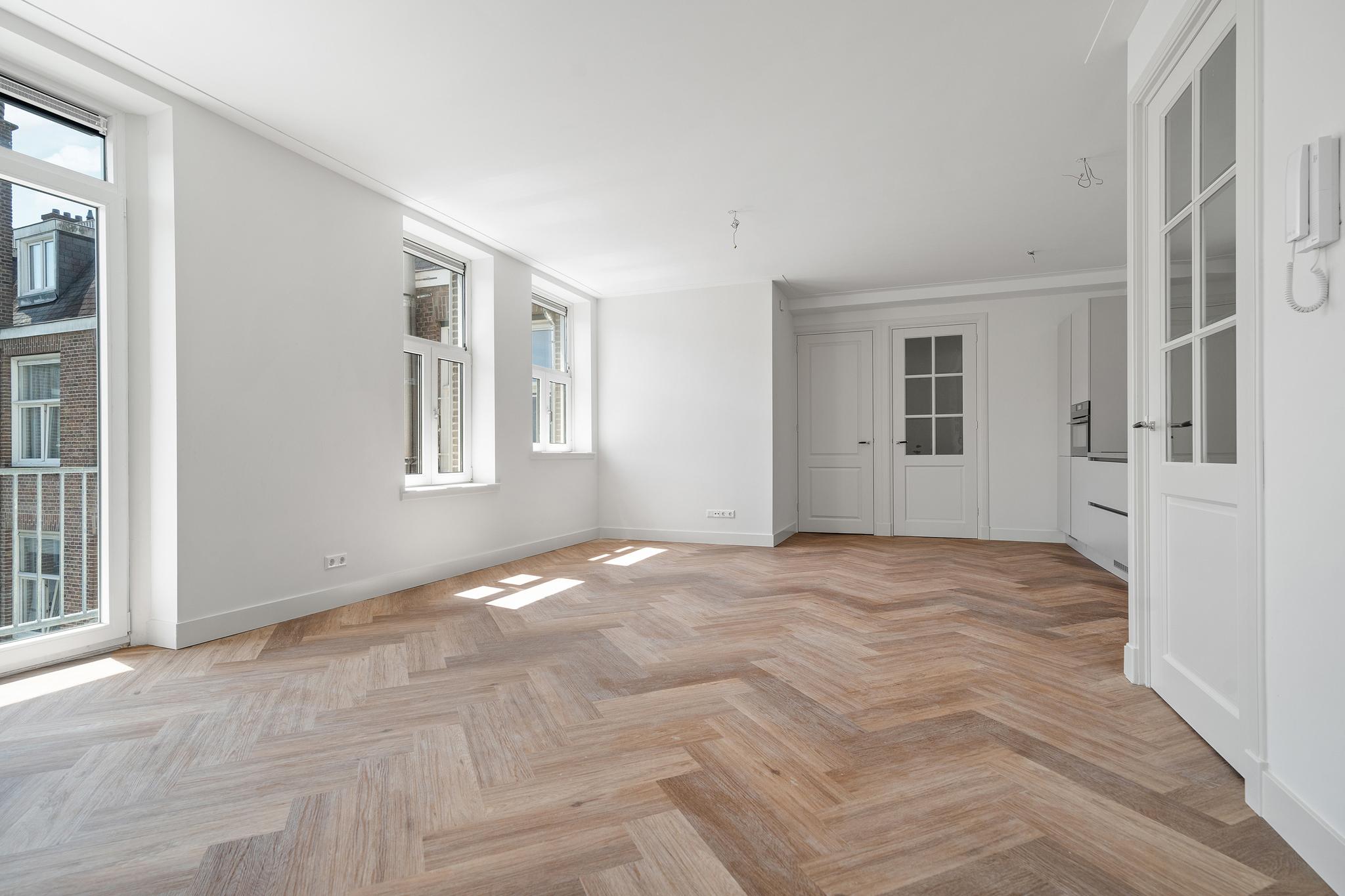 Located on the stately Churchill-laan in the popular Rivierenbuurt, this charming two-storey apartment is situated at the rear of the building, spread over the third and fourth floors. The property is cleverly laid out with a bright living floor, modern kitchen, sunny balcony, and on the upper level two full-sized bedrooms and a contemporary bathroom.