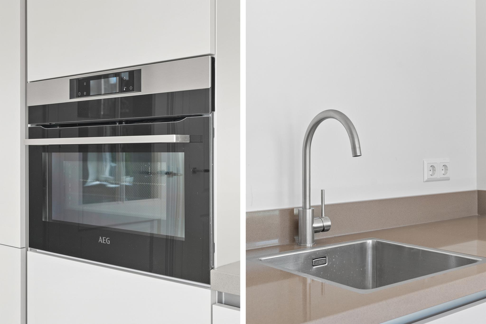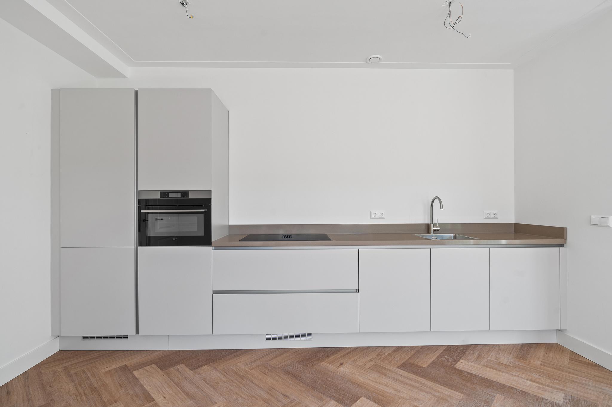 Via the communal entrance, you reach the apartment on the third floor. Upon entering, you step into a small hallway. The spacious living room is bright and inviting, featuring French doors that open onto the south-facing balcony – ideal for afternoon and evening sun. The open-plan kitchen is modern and equipped with various built-in appliances, including an induction cooktop and sink. There is a separate utility cupboard in the living room housing the central heating system. A closed door leads to a hallway that gives access to a separate toilet and a built-in closet with washing machine connection.