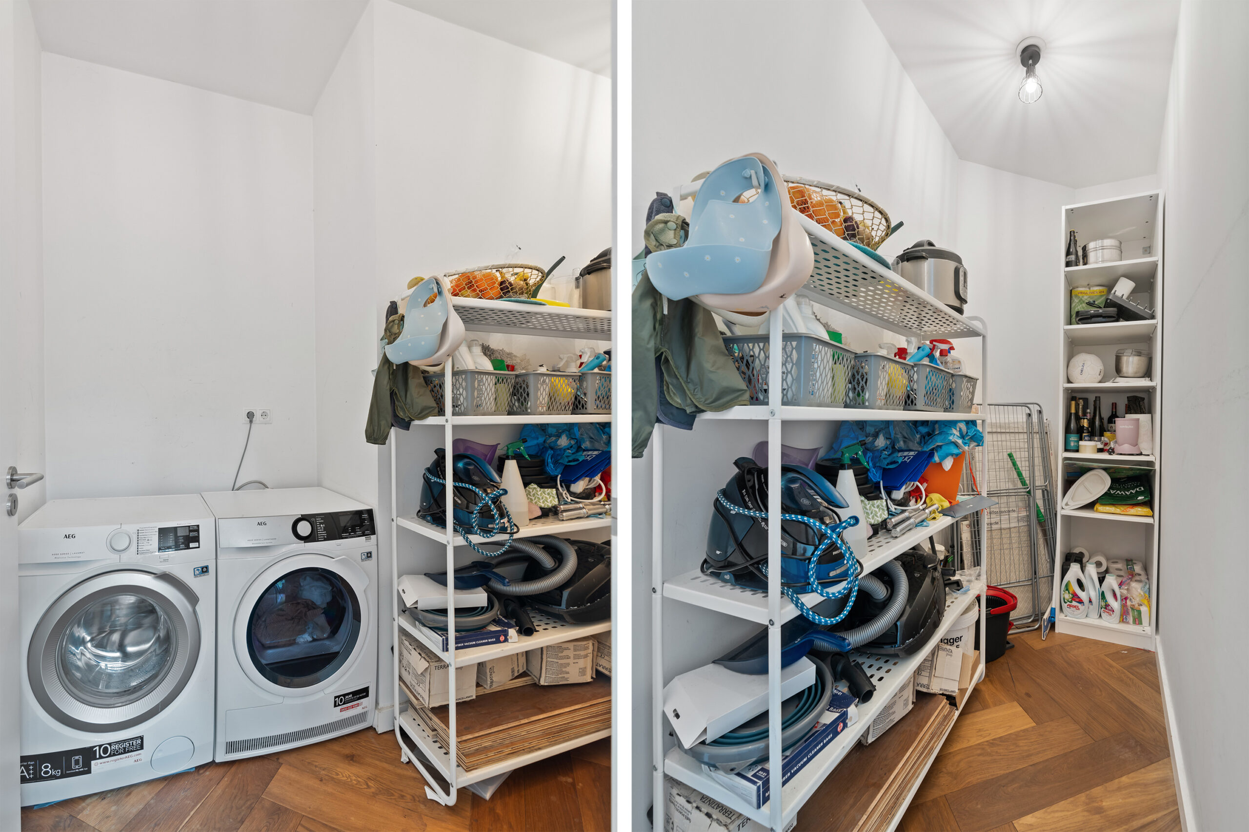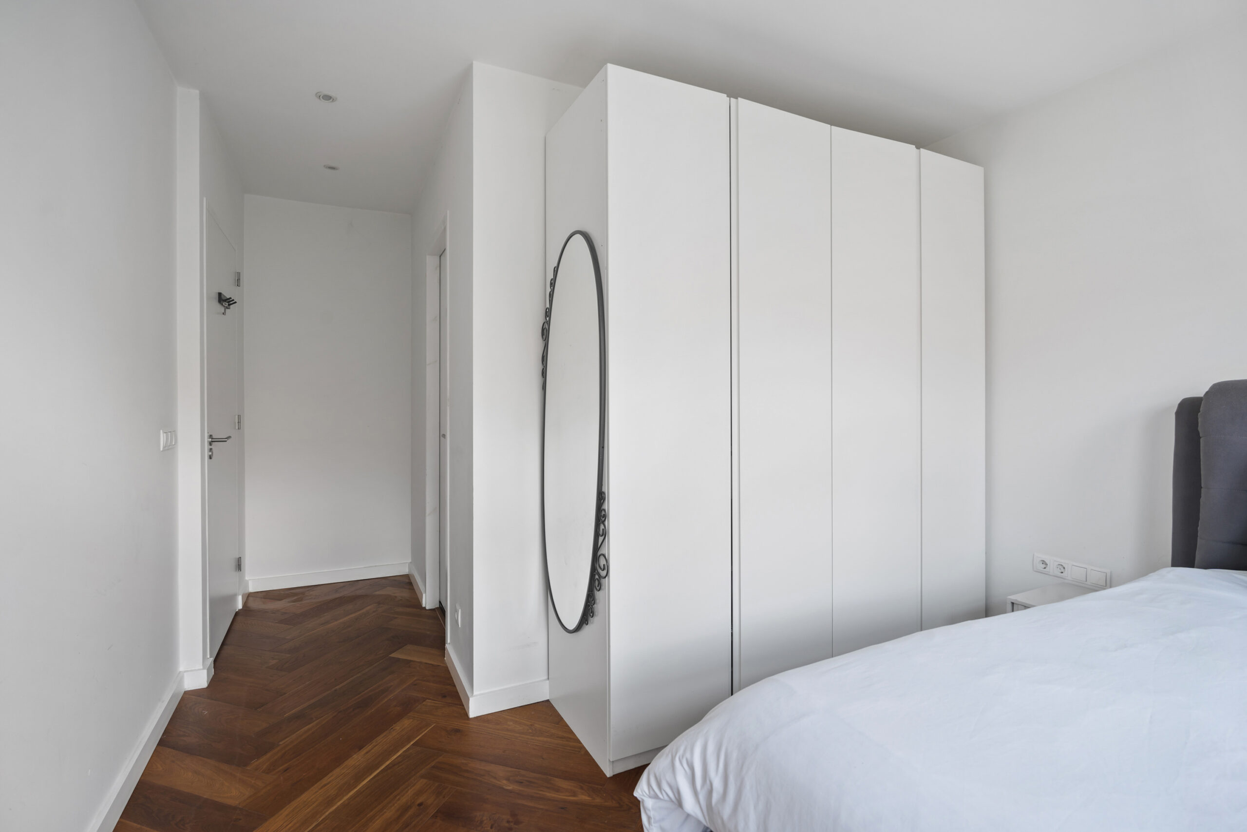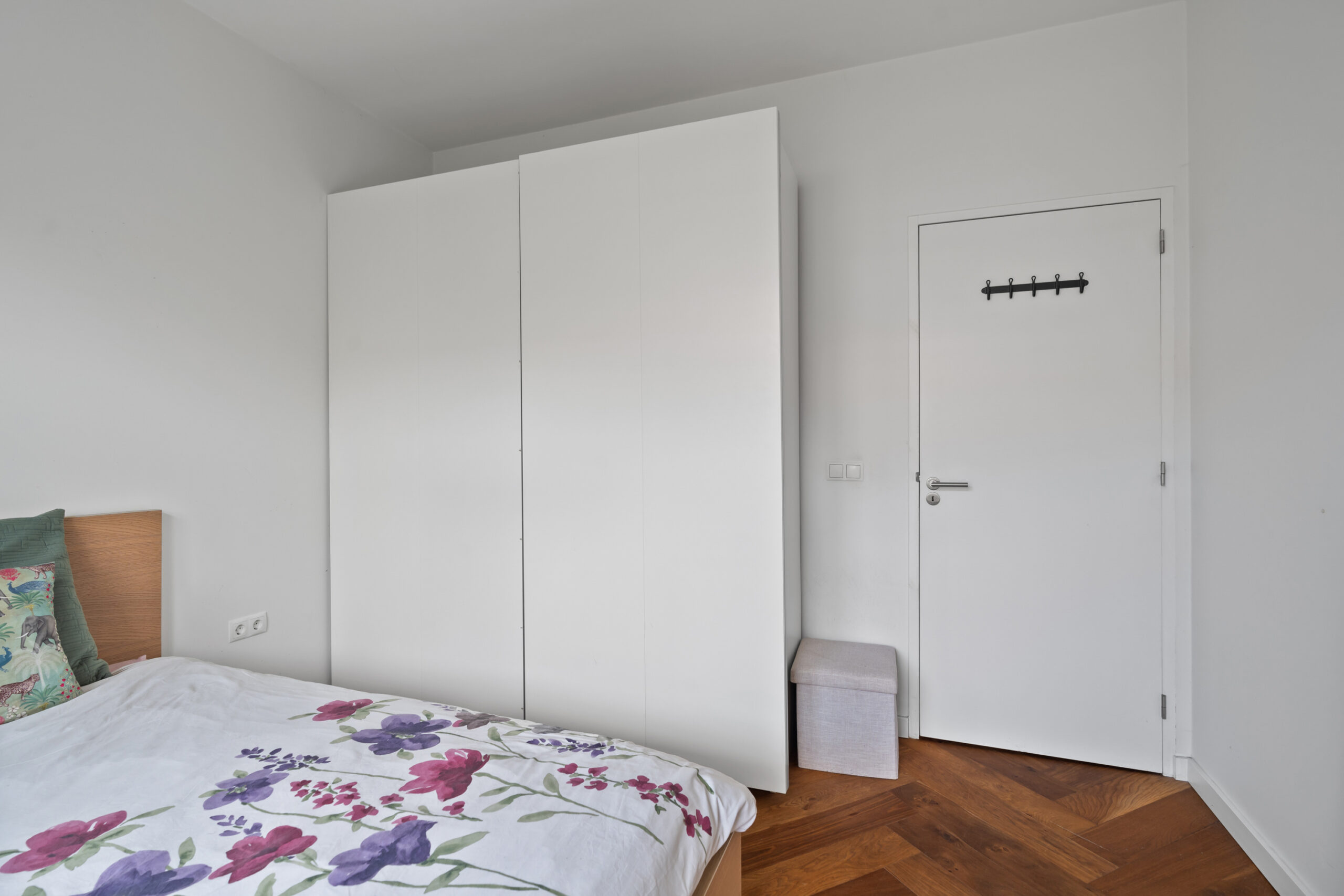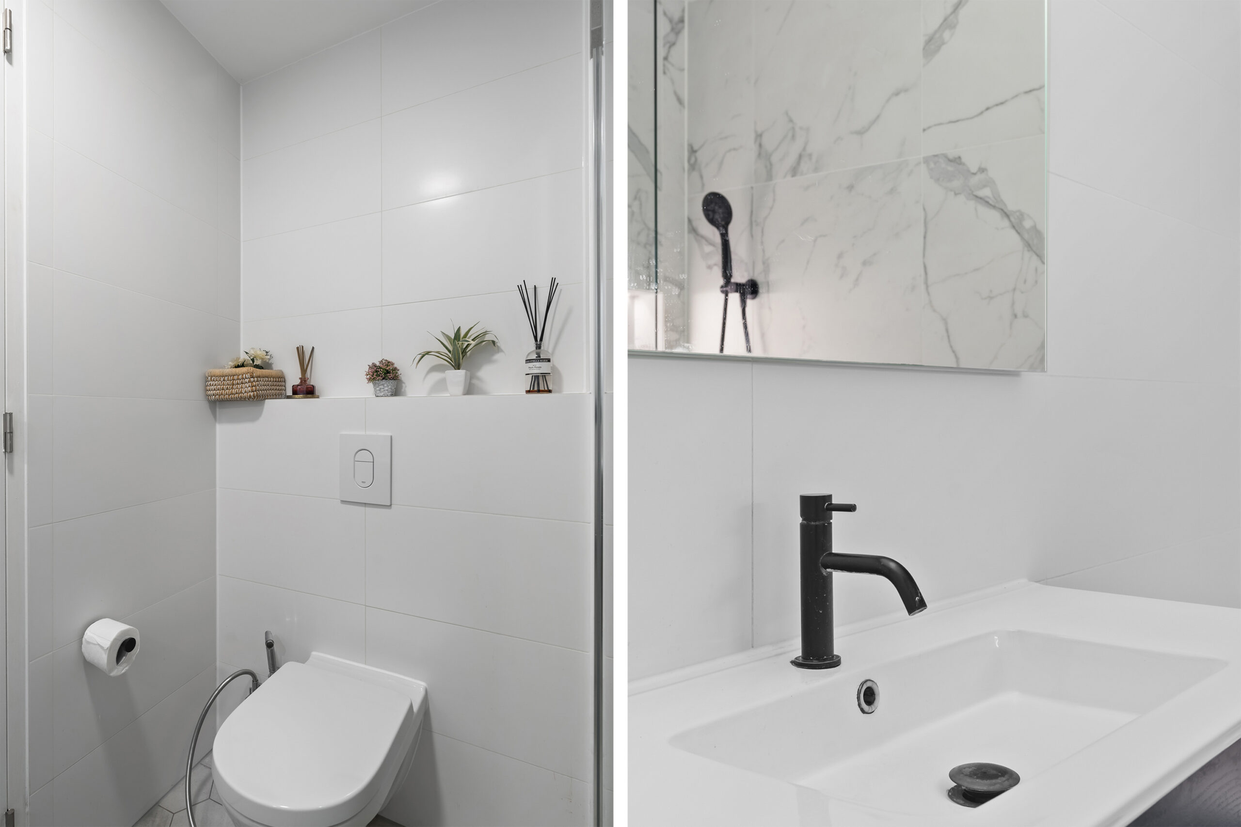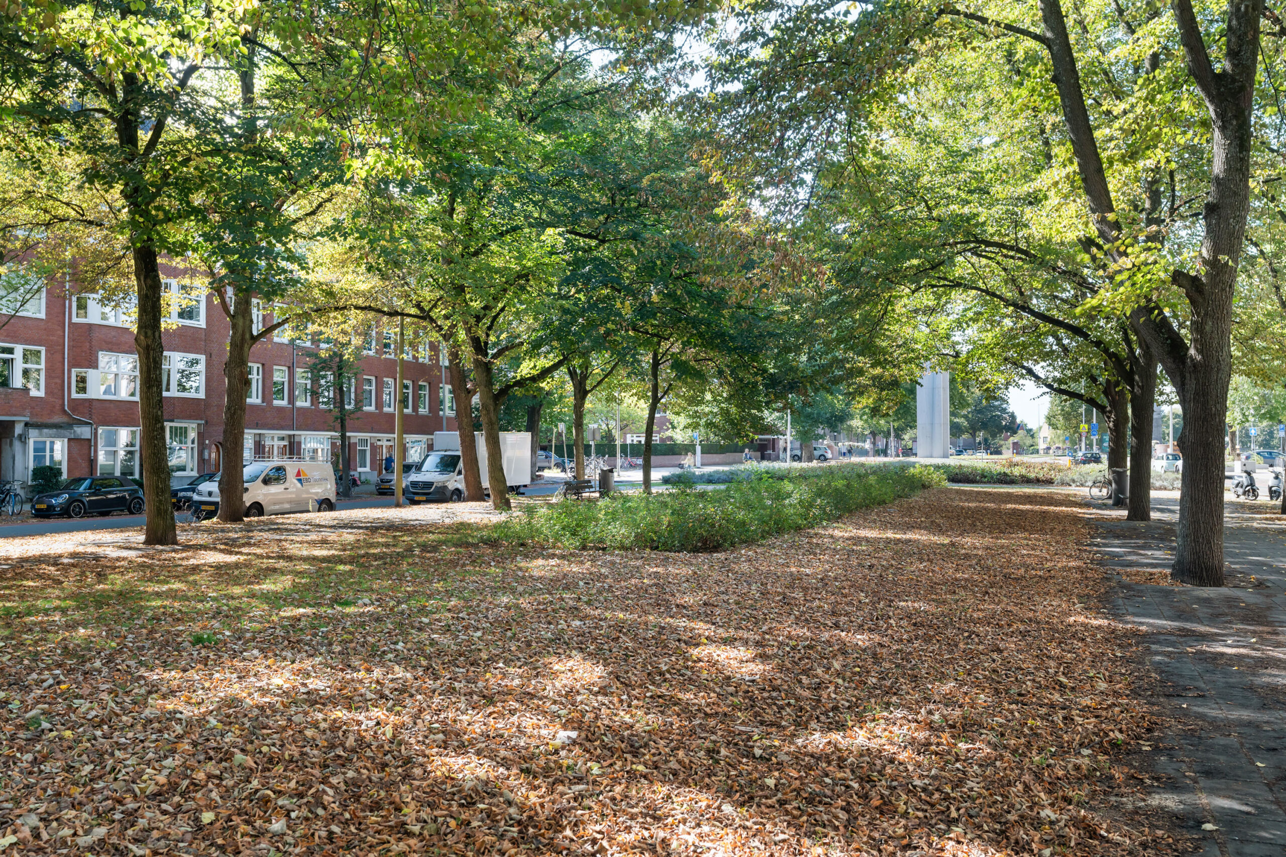 The sun-filled living room overlooks the green Churchill-laan. At the quiet rear area are three bedrooms, including a primary large suite with its own private bathroom featuring a walk-in shower, washbasin, and toilet.