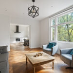 The entire floor is finished with a high-quality solid oak herringbone floor, adding to the luxurious look and feel.