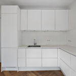 Upon entering, the hallway provides access to a wardrobe and meter cupboard. At the front, the spacious kitchen-diner is fitted with high quality built-in appliances and overlooks the green boulevard. Adjacent is a large storage area, thoughtfully designed for storage and washer/dryer connections.