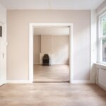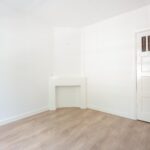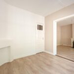 The kitchen is basic but offers ample daylight and storage space. At the front of the apartment is a spacious living room with large windows and a ceiling height of 2.75 meters. Adjacent to this is a third bedroom featuring a characteristic fireplace mantel.