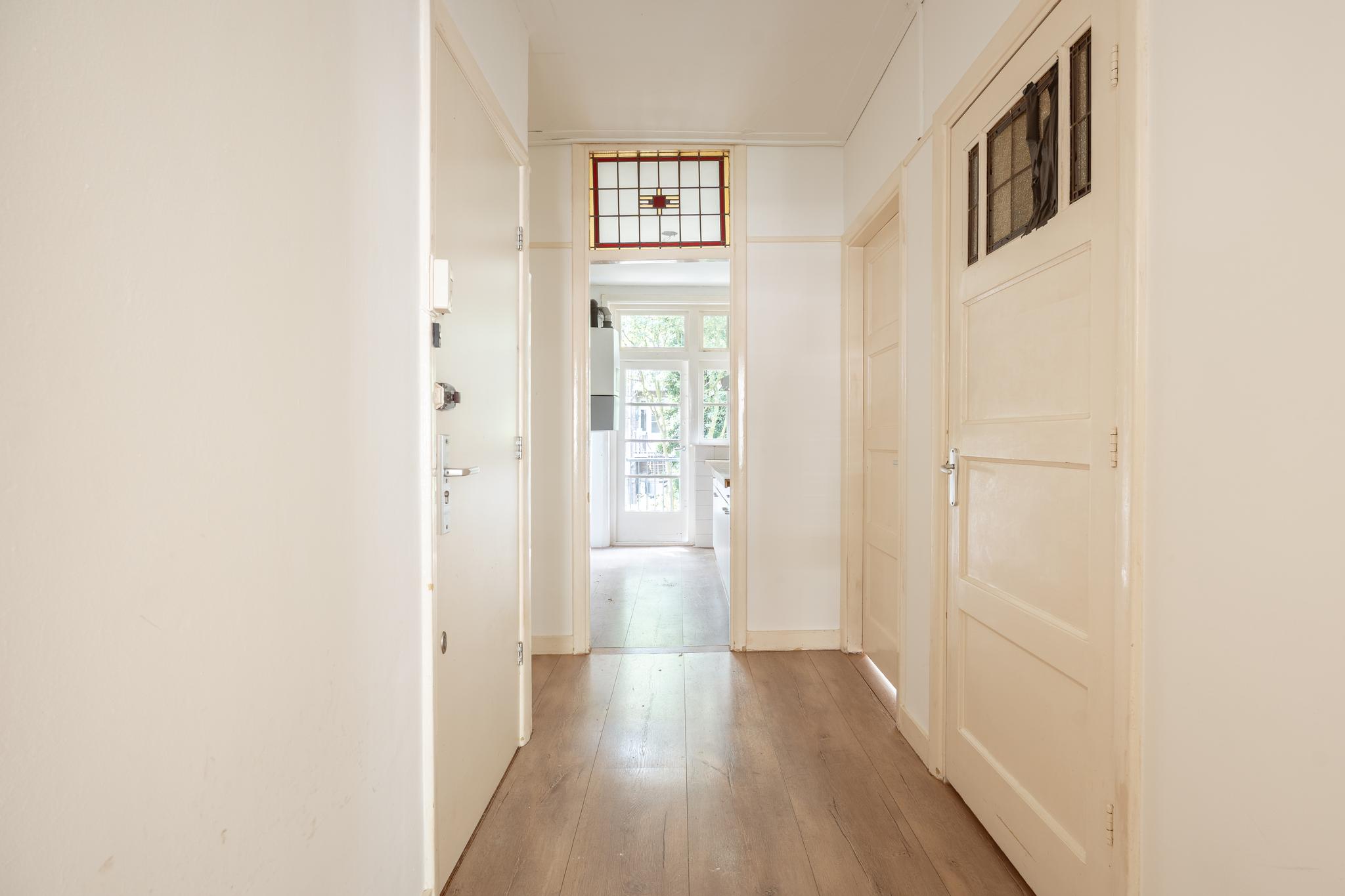 The entrance to the apartment is on the first floor and is accessed via the communal staircase. The central hallway provides access to nearly all rooms. At the rear are two bedrooms and a closed kitchen, all with direct access to the sunny west-facing balcony. The homeowners' association (VvE) has already approved the option to enlarge the balcony/create a roof terrace on the rear extension of the ground floor. Any required permits are at the buyer’s own expense and risk.