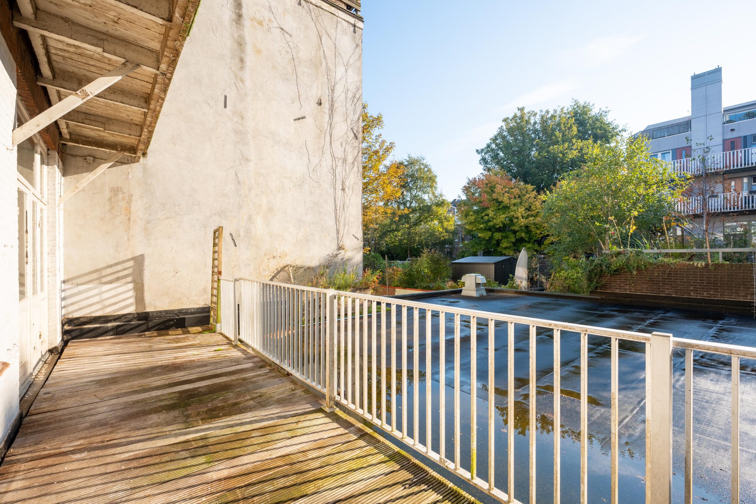 Shell space(s) with a small balcony at the front. Window frames with double glazing at the front and single glazing at the rear. The rear (roof) terrace of approx. 19 m² faces east.