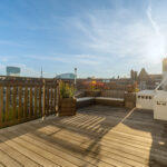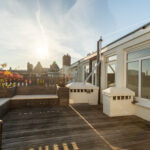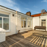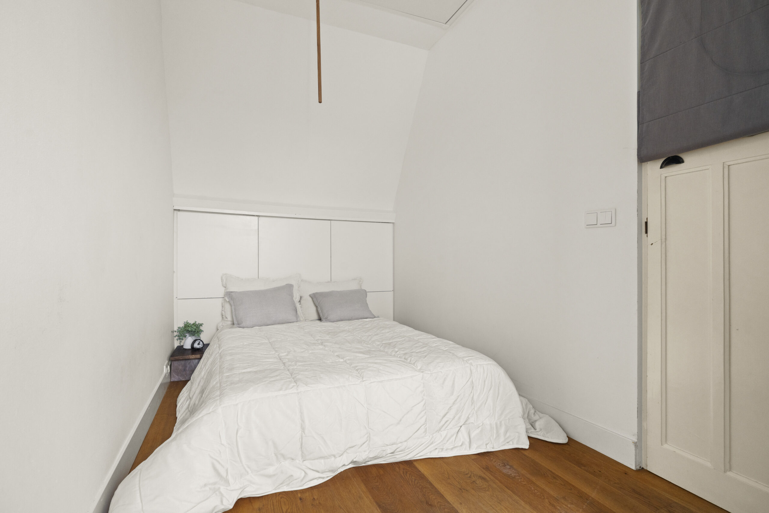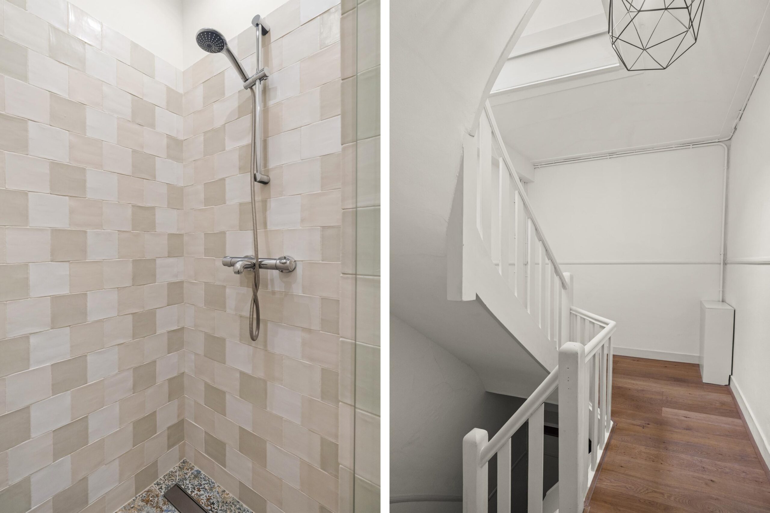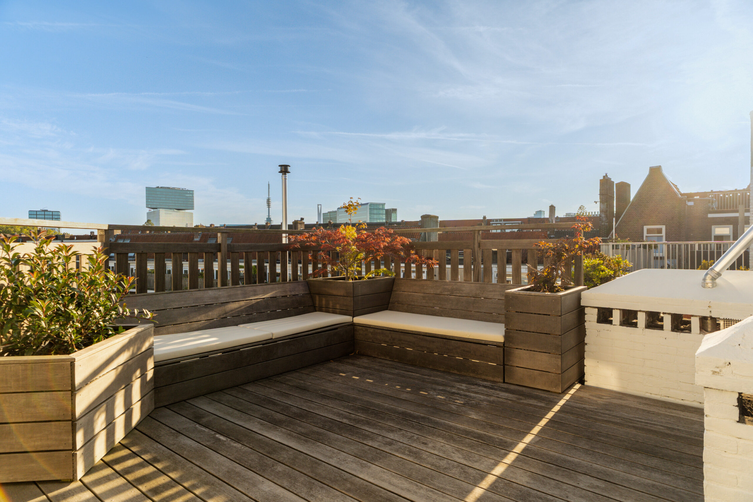 Lovely spacious duplex apartment (approx. 124m²) with 3 bedrooms, 2 bathrooms, 2 balconies and a unique large roof terrace facing southwest, where you can enjoy the sun all day. The property is located in the Rivierenbuurt in a quiet area, within walking distance of cozy terraces, coffee bars, shops, and restaurants. The ground lease has been bought off in perpetuity! Layout Second floor Entrance with stairs to the third floor. Third floor Hallway, a modern bathroom with walk-in shower, washbasin, floating toilet, and concealed connections for a washing machine and dryer. A spacious master bedroom at the front. A generous…