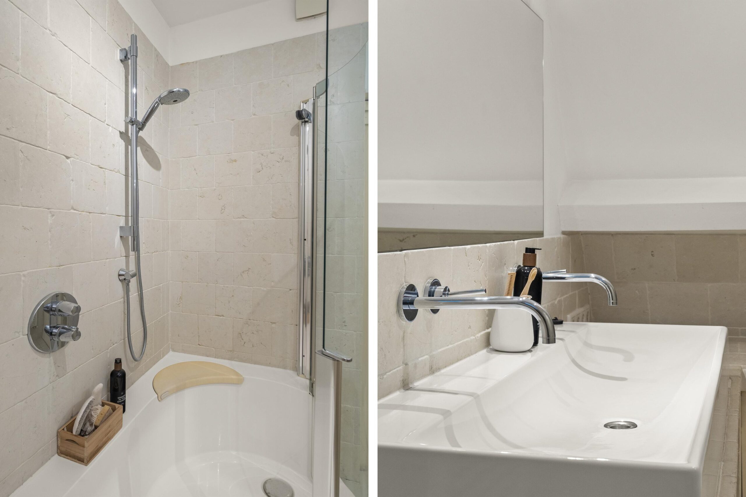 - Bathroom amenities Toilet, wastafel, inloopdouche, wasmachineaansluiting, ligbad, dubbele wastafel