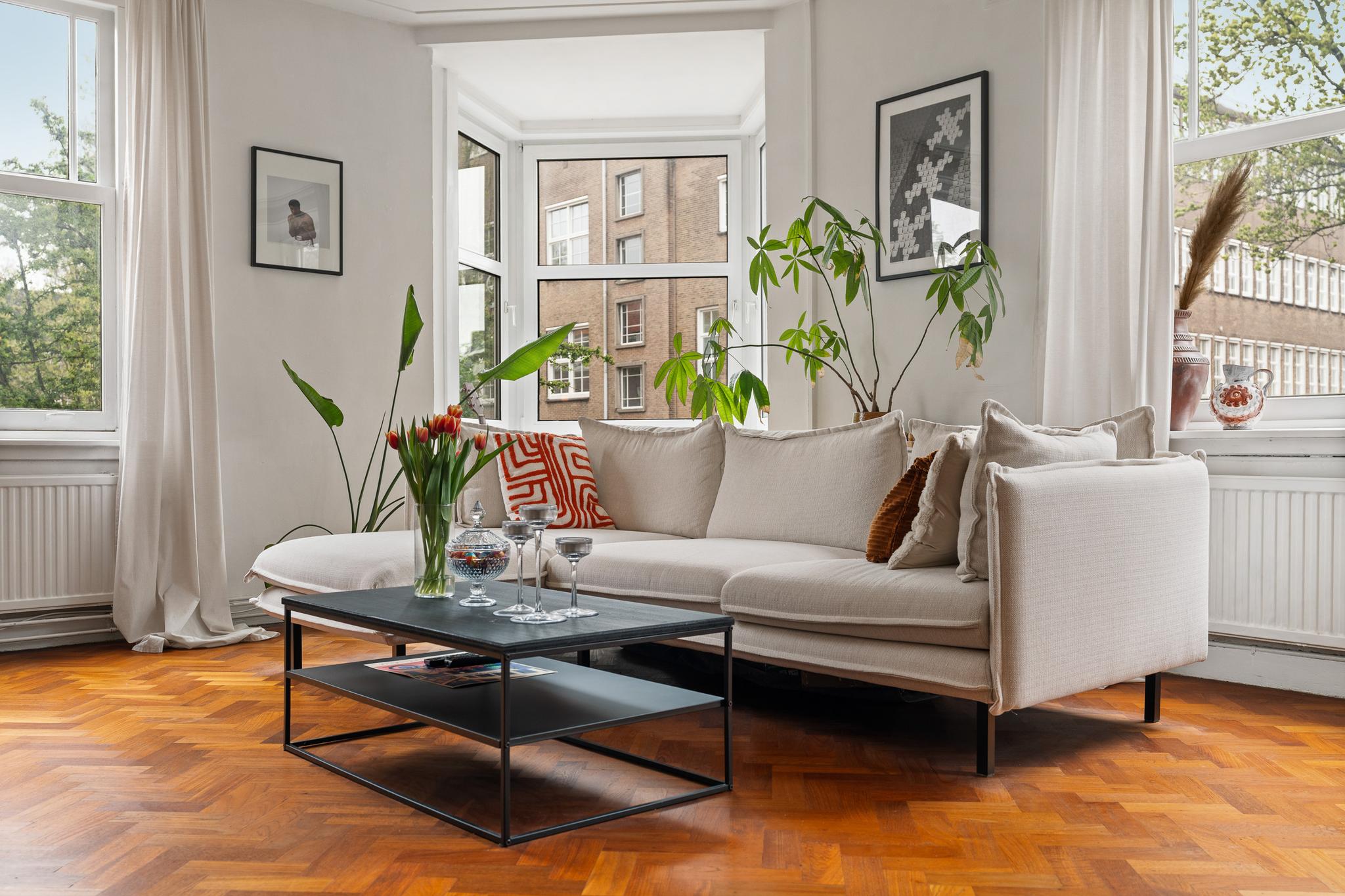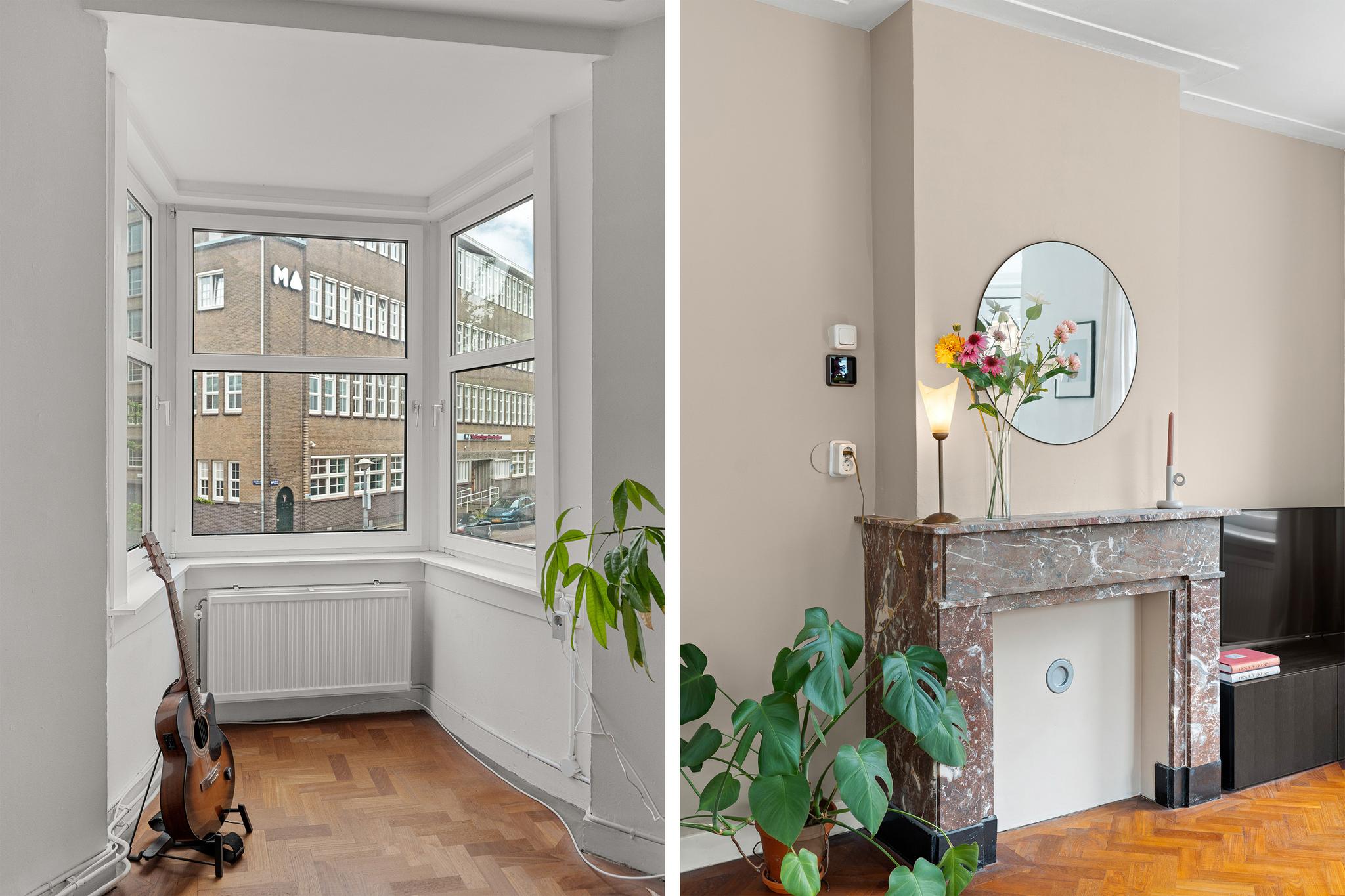 Atmospheric 3-room corner apartment of 76 m² on the first floor and a large studio of approximately 23 m² on the fourth floor. The apartment is located in the heart of the popular Rivierenbuurt, between Maasstraat and Scheldestraat! The home features a spacious living room and is exceptionally bright due to its many windows, bay window, and southern orientation.