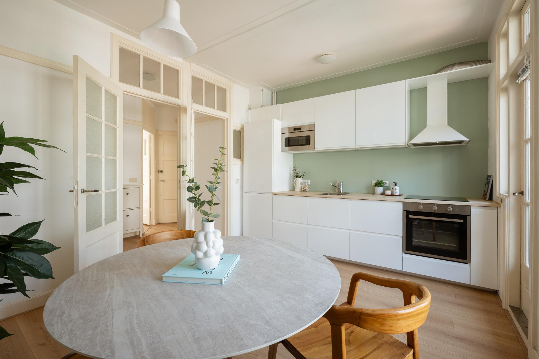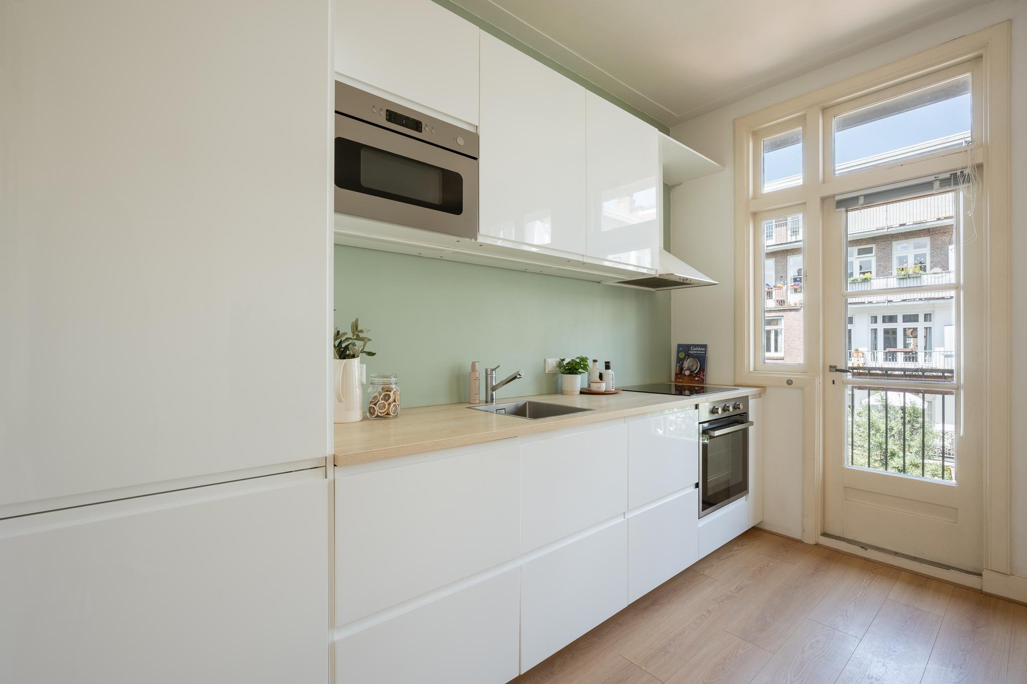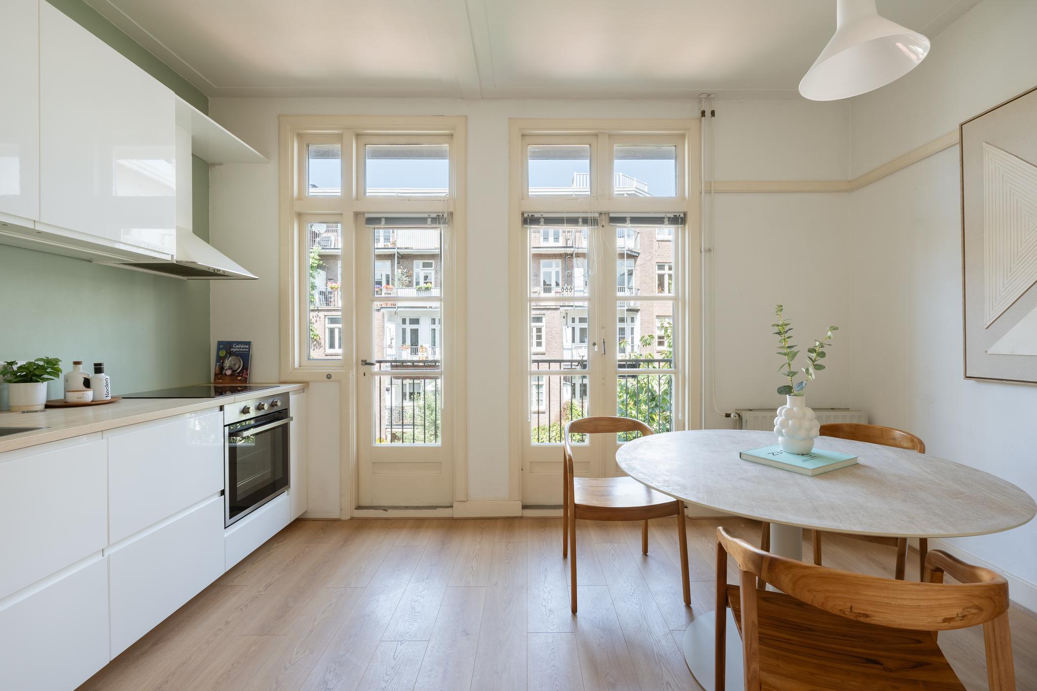 Spacious Two-Level Upstairs Apartment (Maisonette) of approx. 81 m² with Two Bedrooms and Two Balconies This generously sized maisonette of approximately 81 m² features two bedrooms and two balconies. The home is centrally located in the popular Rivierenbuurt, just around the corner from Scheldestraat and De Pijp. LAYOUT Entrance on the second floor. The hallway provides access to two separate rooms. The spacious living room is at the front of the apartment, while the closed kitchen is located at the rear. The modern kitchen is equipped with a fridge with freezer compartment, 4-burner stove, oven, dishwasher, and microwave. The kitchen…