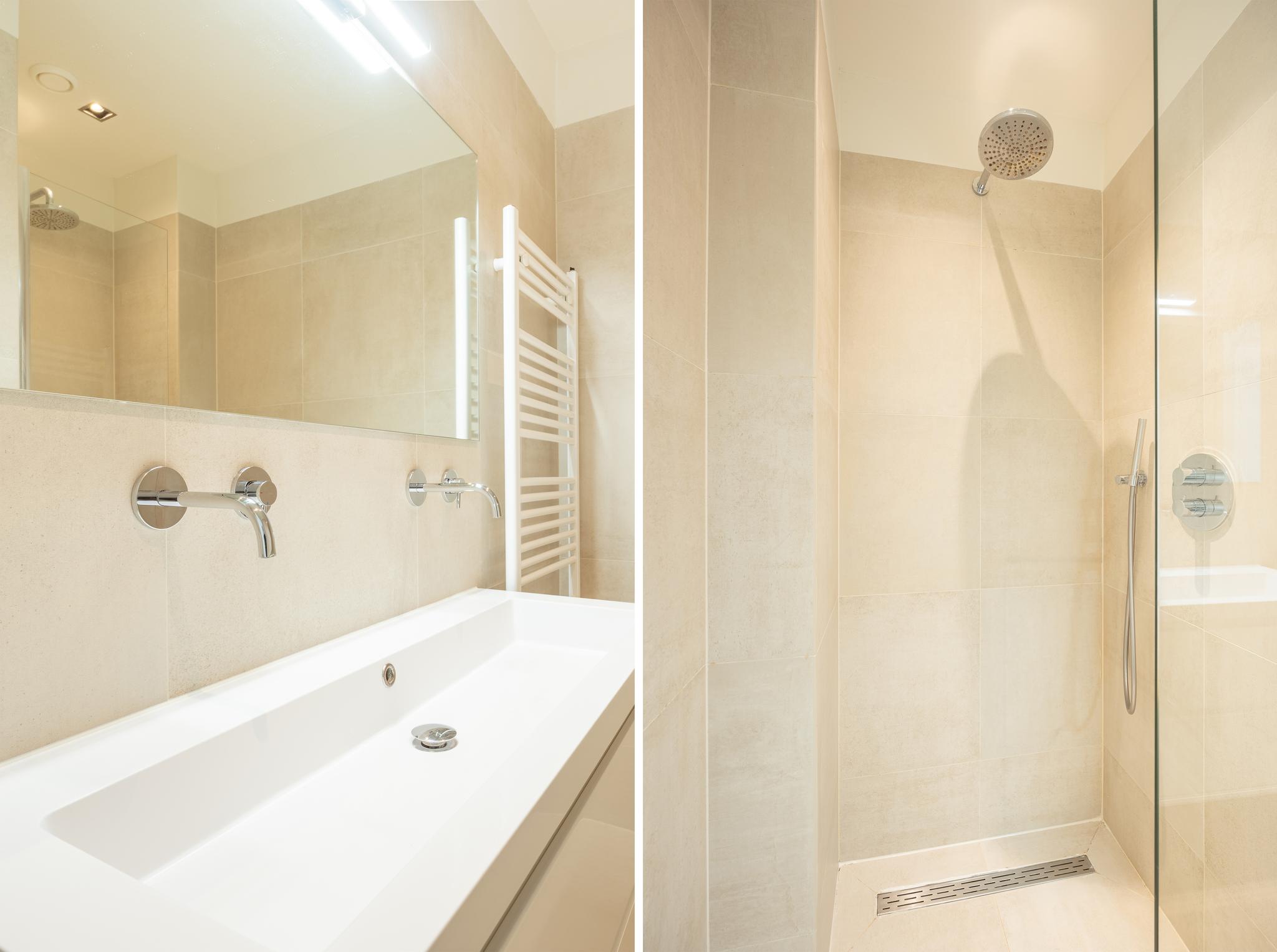- Bathroom amenities Dubbele wastafel, wastafelmeubel, inloopdouche