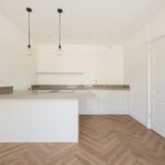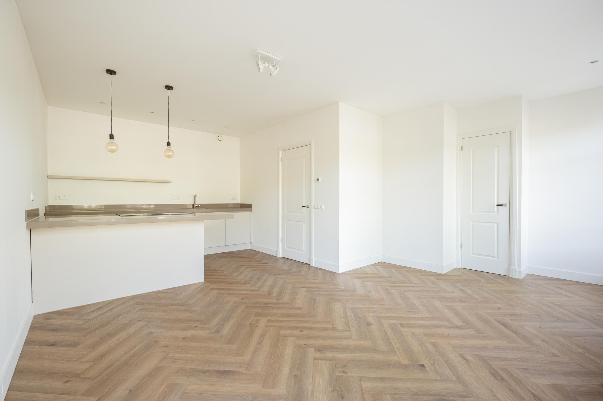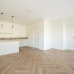 Through the communal entrance, you access this apartment on the first floor. The central hall provides access to all rooms. At the front of the apartment is the living room with an open kitchen. The kitchen is equipped with AEG built-in appliances, including a dishwasher, 4-burner induction cooktop with integrated extractor hood, combination oven/microwave, and a fridge-freezer combination.