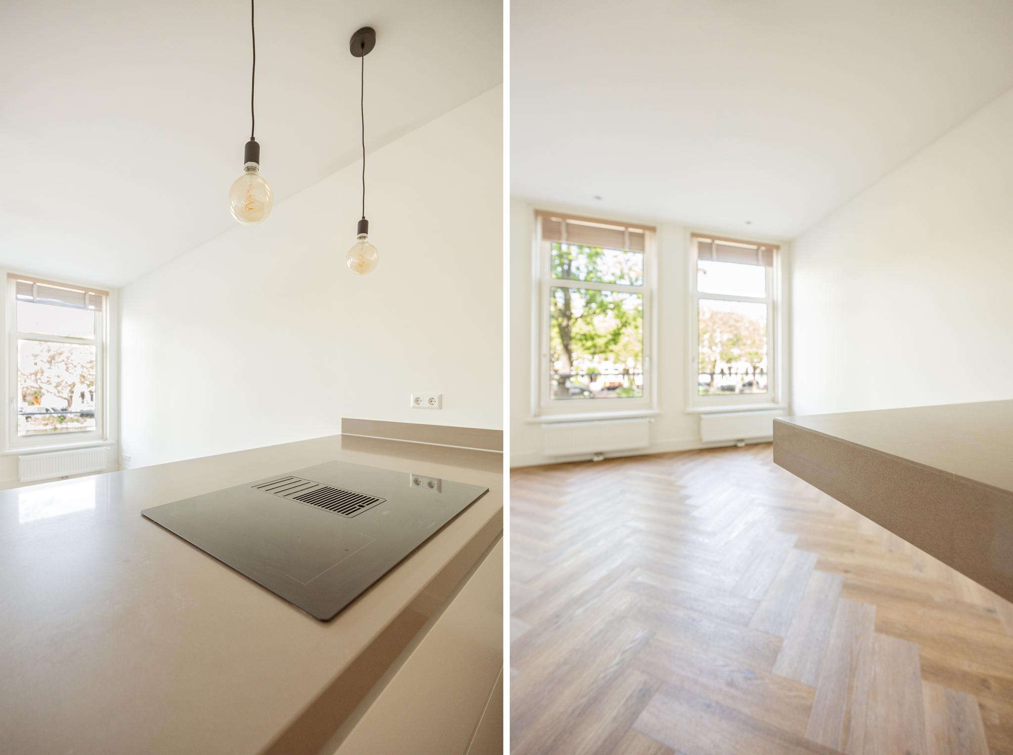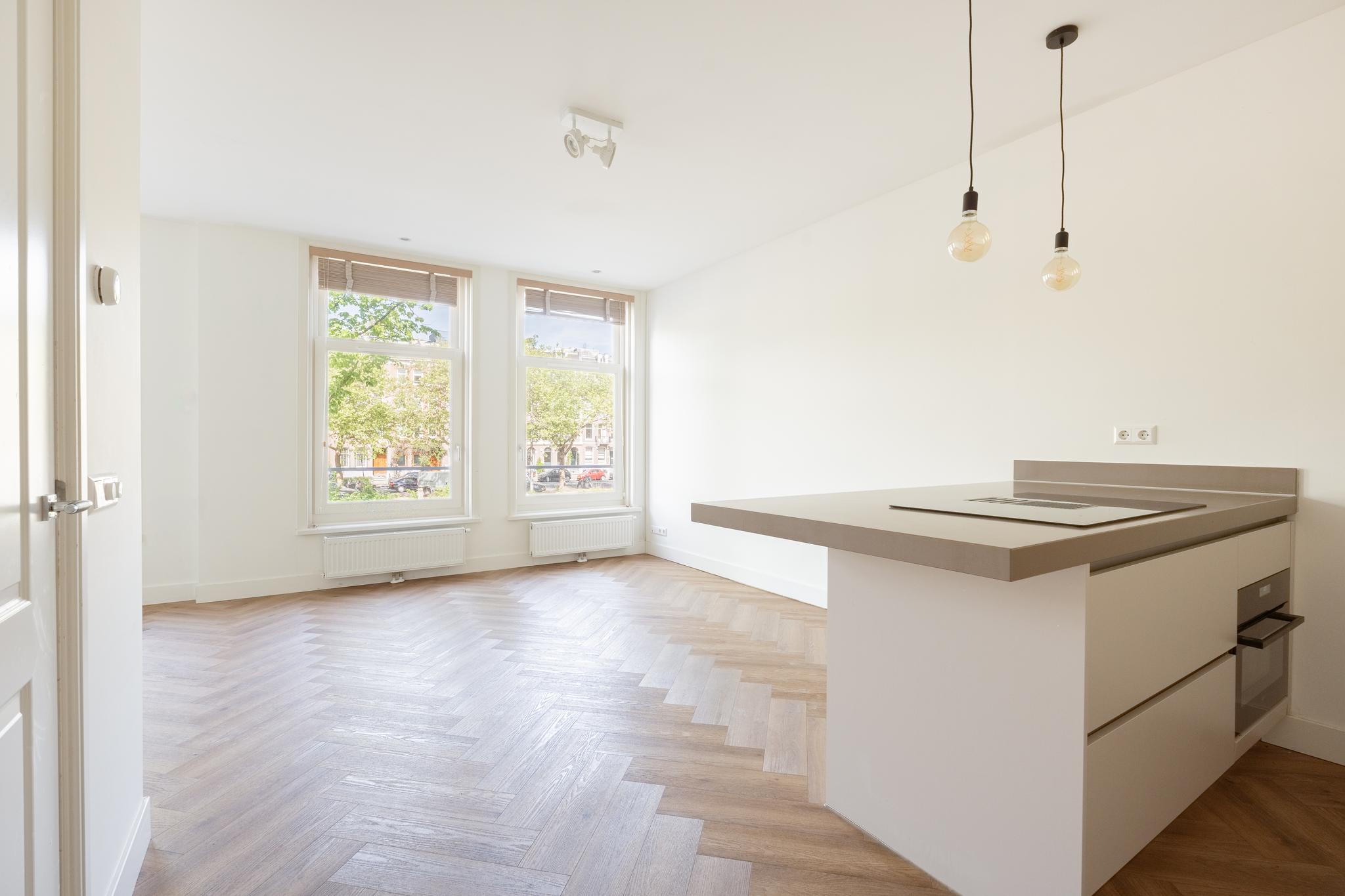 High-guality renovated 3-room apartment of 64 m² with Wide Views Located on the Water and Near Westerpark, De Jordaan, and the City Center. The property has an energy label B and is situated on freehold land. THE LAYOUT Through the communal entrance, you access this apartment on the first floor. The central hall provides access to all rooms. At the front of the apartment is the living room with an open kitchen. The kitchen is equipped with AEG built-in appliances, including a dishwasher, 4-burner induction cooktop with integrated extractor hood, combination oven/microwave, and a fridge-freezer combination. In the middle of…