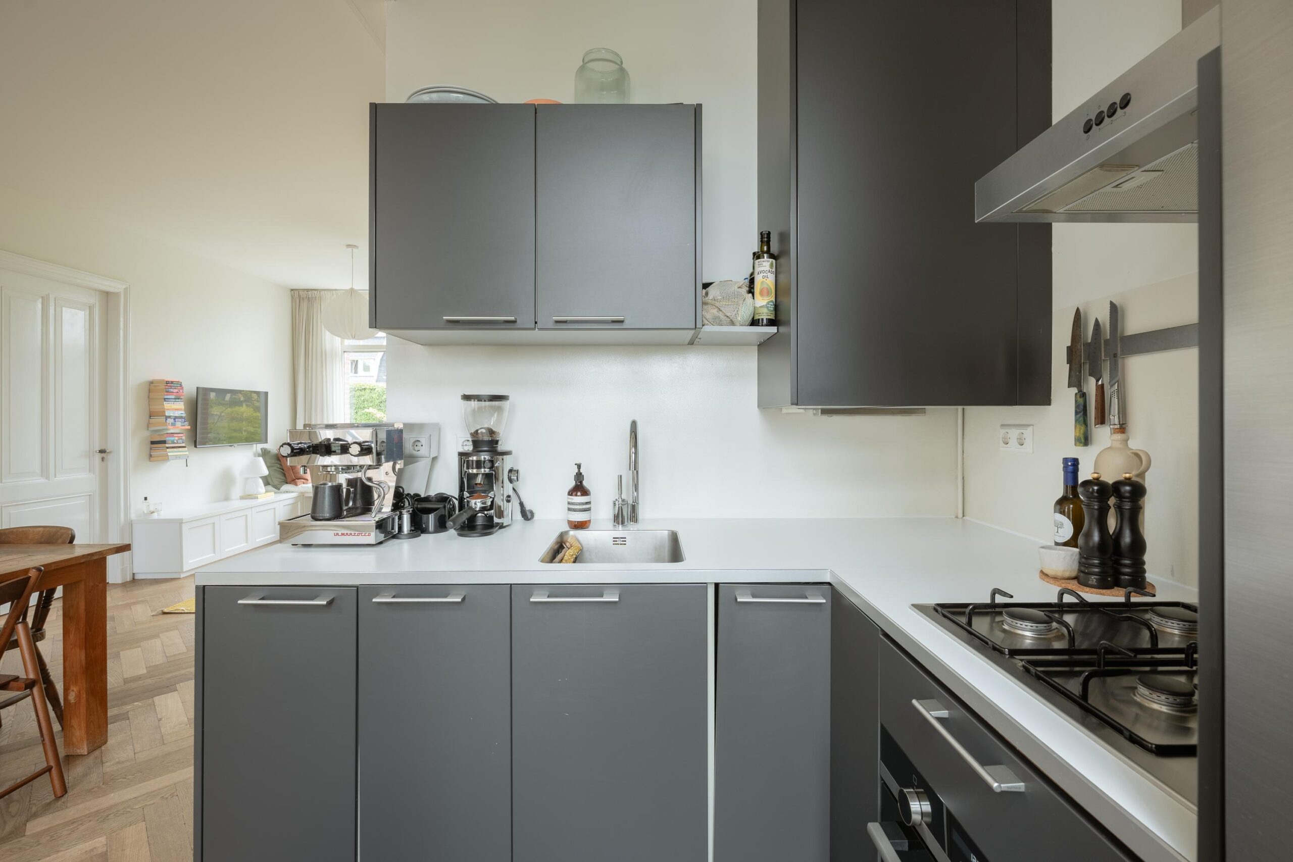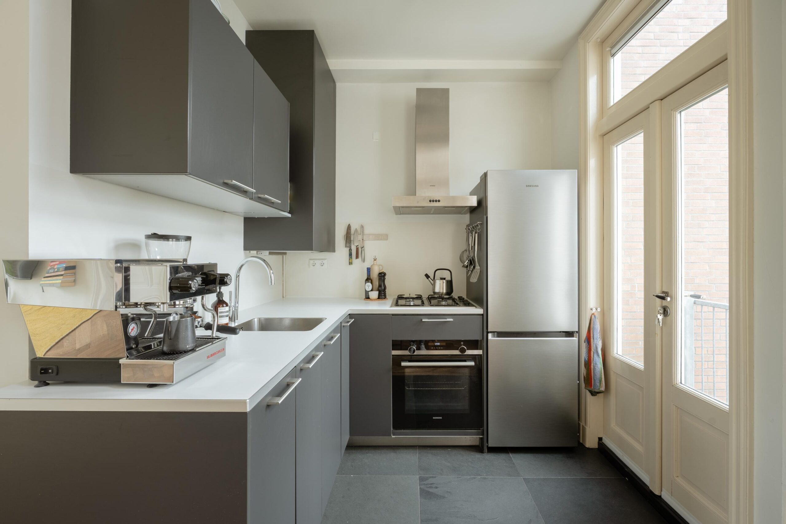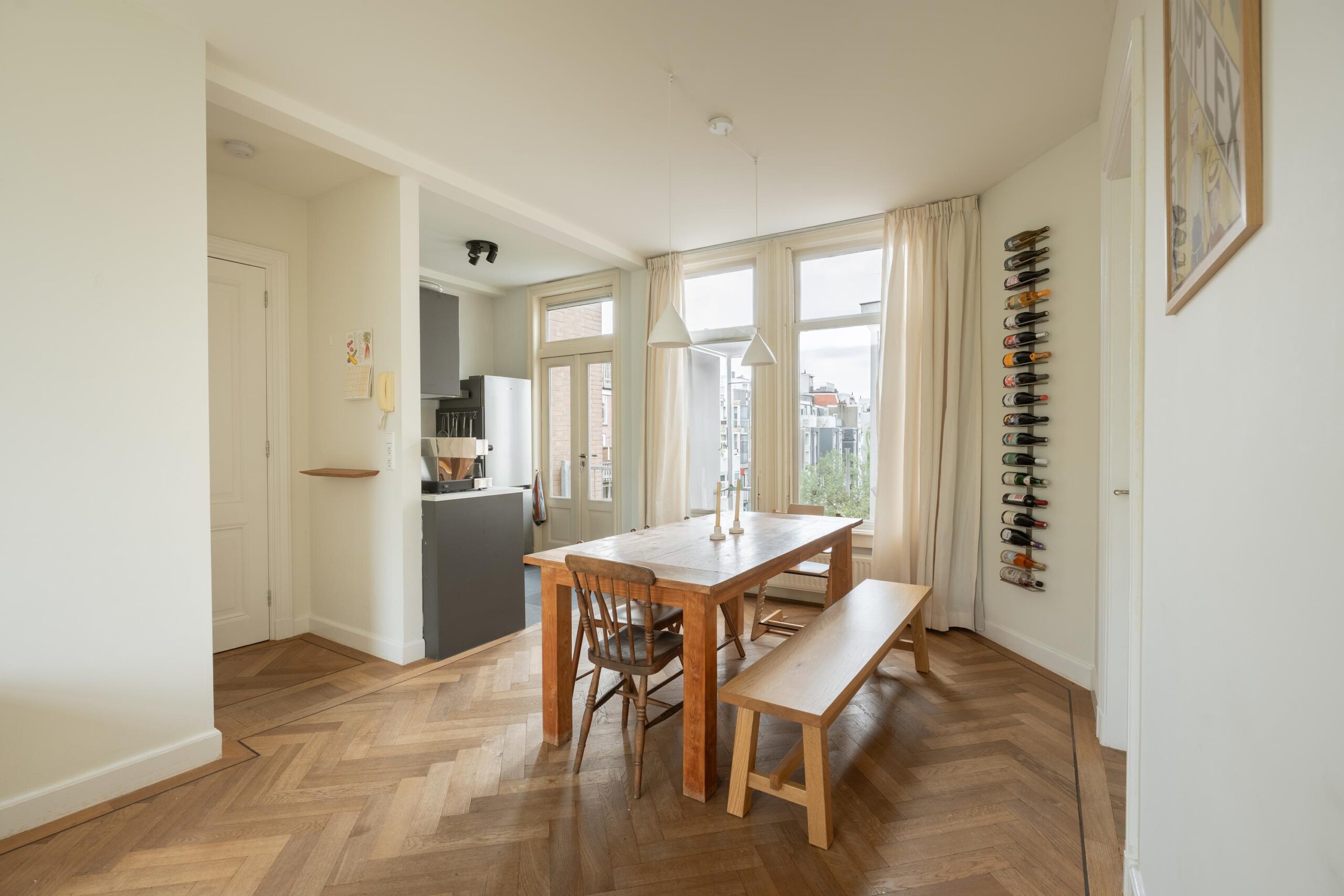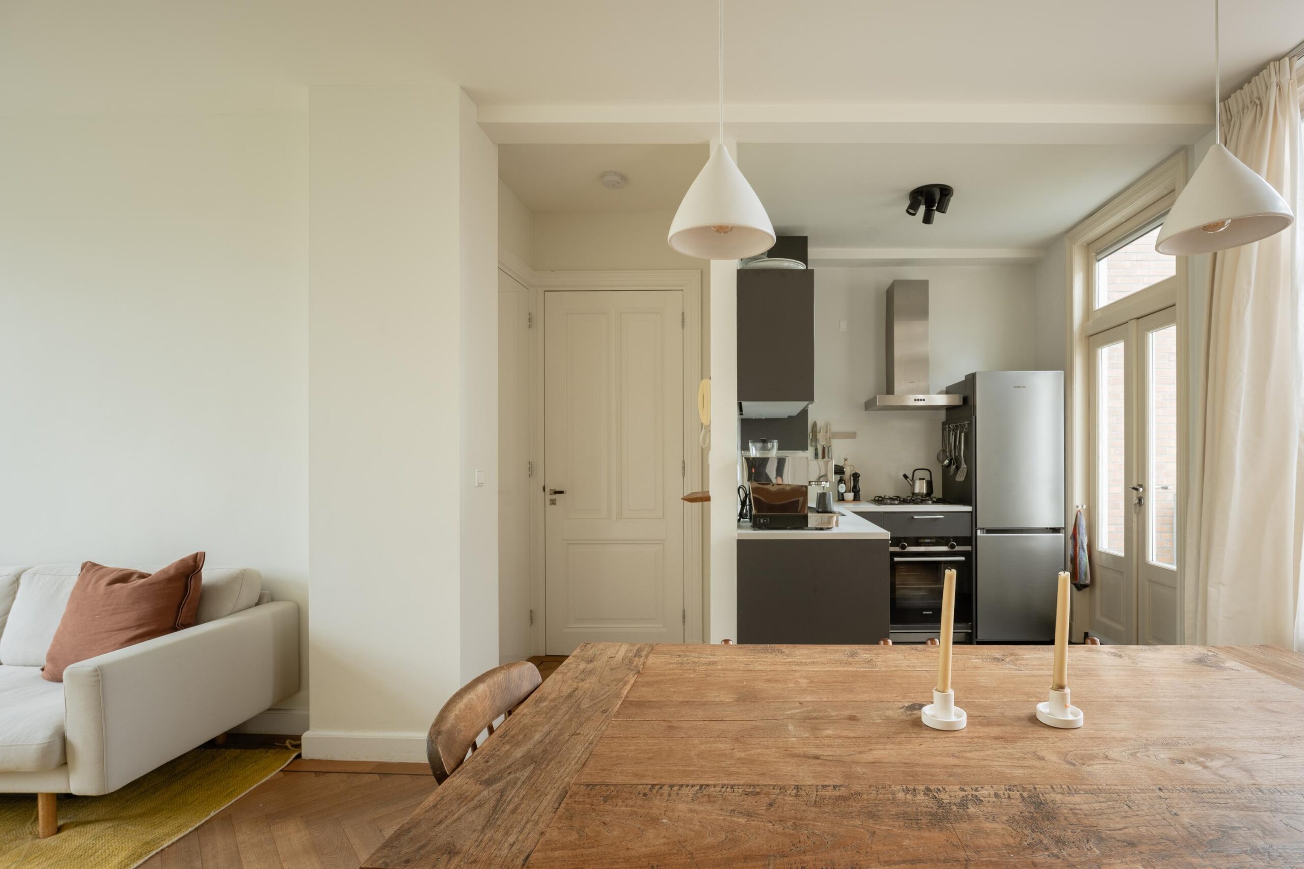 Lovely Renovated Upper Apartment of approx. 51 m² with 2 Bedrooms and a Very Practical Layout. The apartment features, among other things, a luxury kitchen, wooden parquet floors, and a sunny balcony. It is located in a popular neighborhood in Amsterdam West, just around the corner from Jan Pieter Heijestraat and Kinkerstraat. The property is on freehold land – so no ground lease.