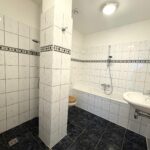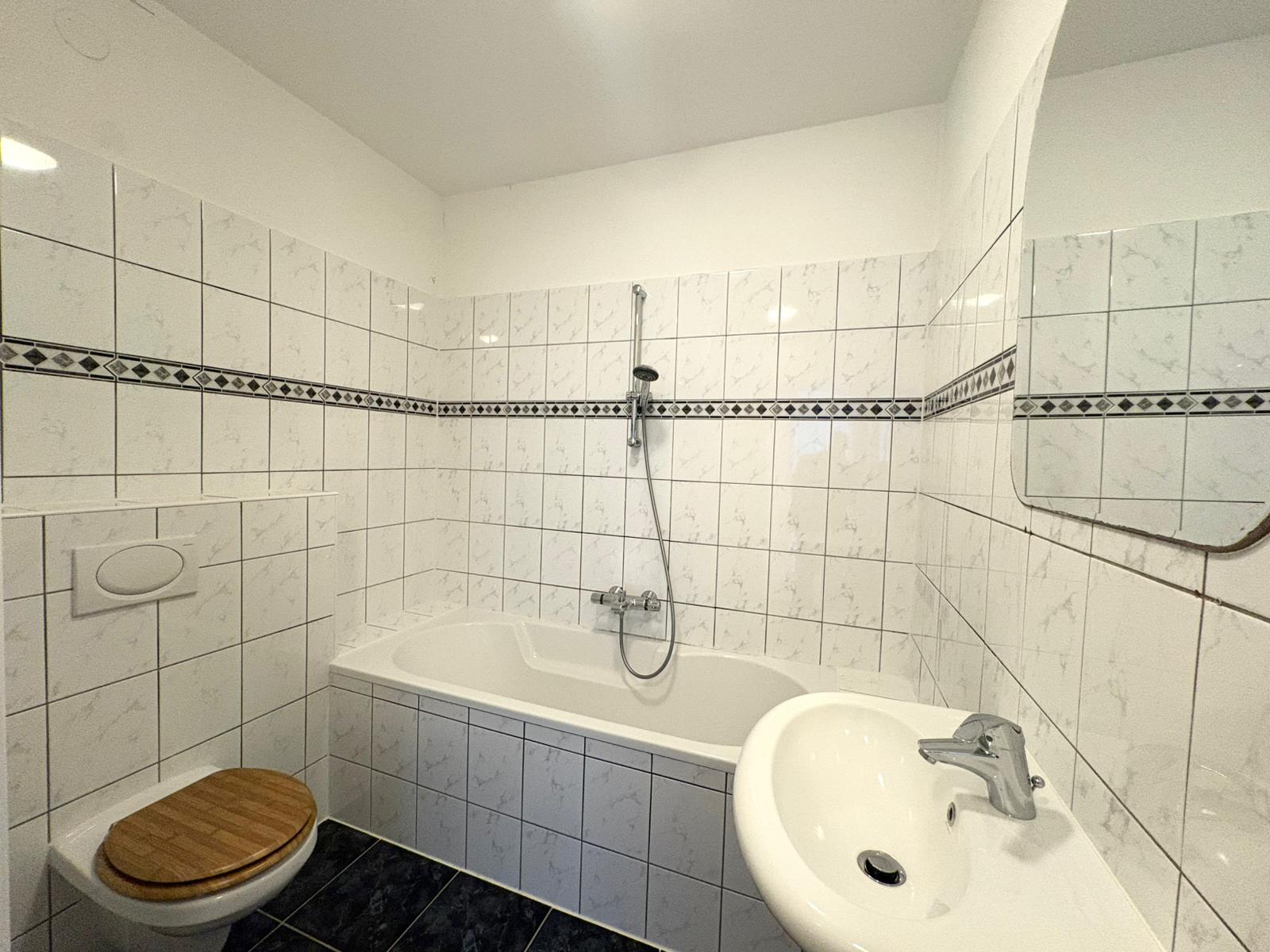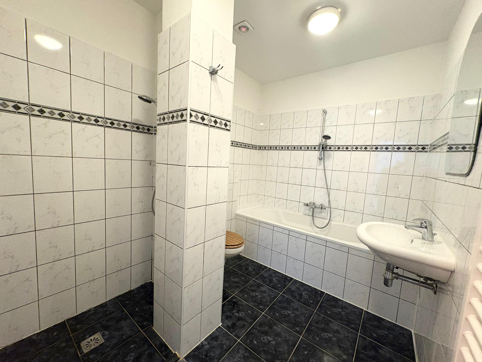 The bathroom is fully fitted and features a bathtub, separate shower and washbasin.