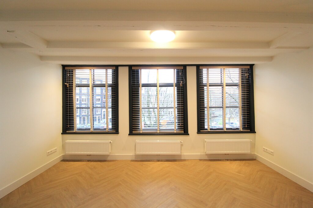 You reach the house on the second floor. Upon entering, you arrive in the bright, playful living room with a view of the Prinsengracht and the Noordermarkt. The luxury kitchen is accessible from the living room and is equipped with a refrigerator including freezer, a 4-burner induction hob with integrated extractor, a dishwasher and a combination oven/microwave. There is also a washer-dryer combination in the kitchen. Through the landing you reach the two bedrooms and the bathroom. The large bedroom measures approximately 12.5m² (3.80m x 3.30m) and the smaller bedroom measures approximately 6.5m² (1.95m x 3.30m). The complete bathroom has a walk-in shower, washbasin with mirror and (floating) toilet.