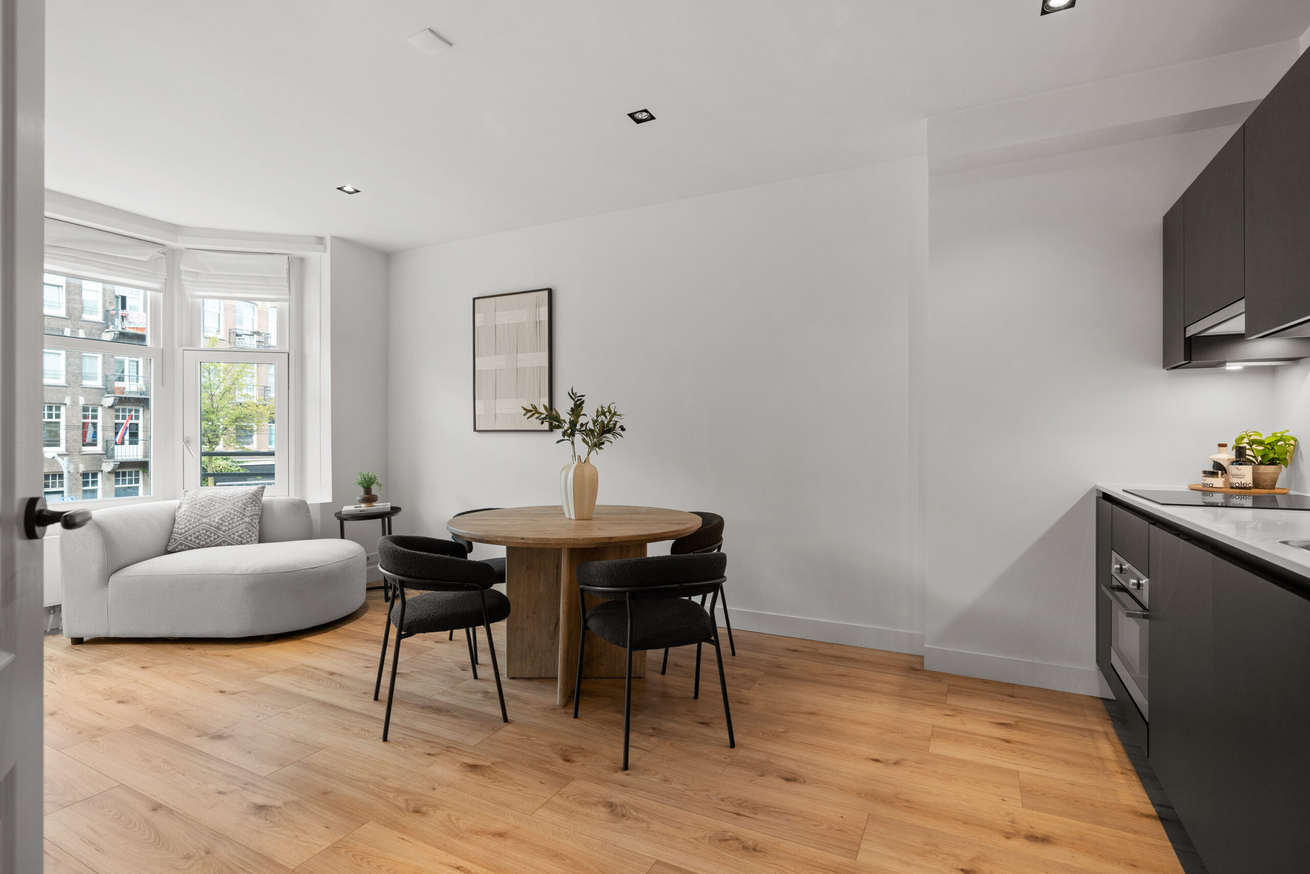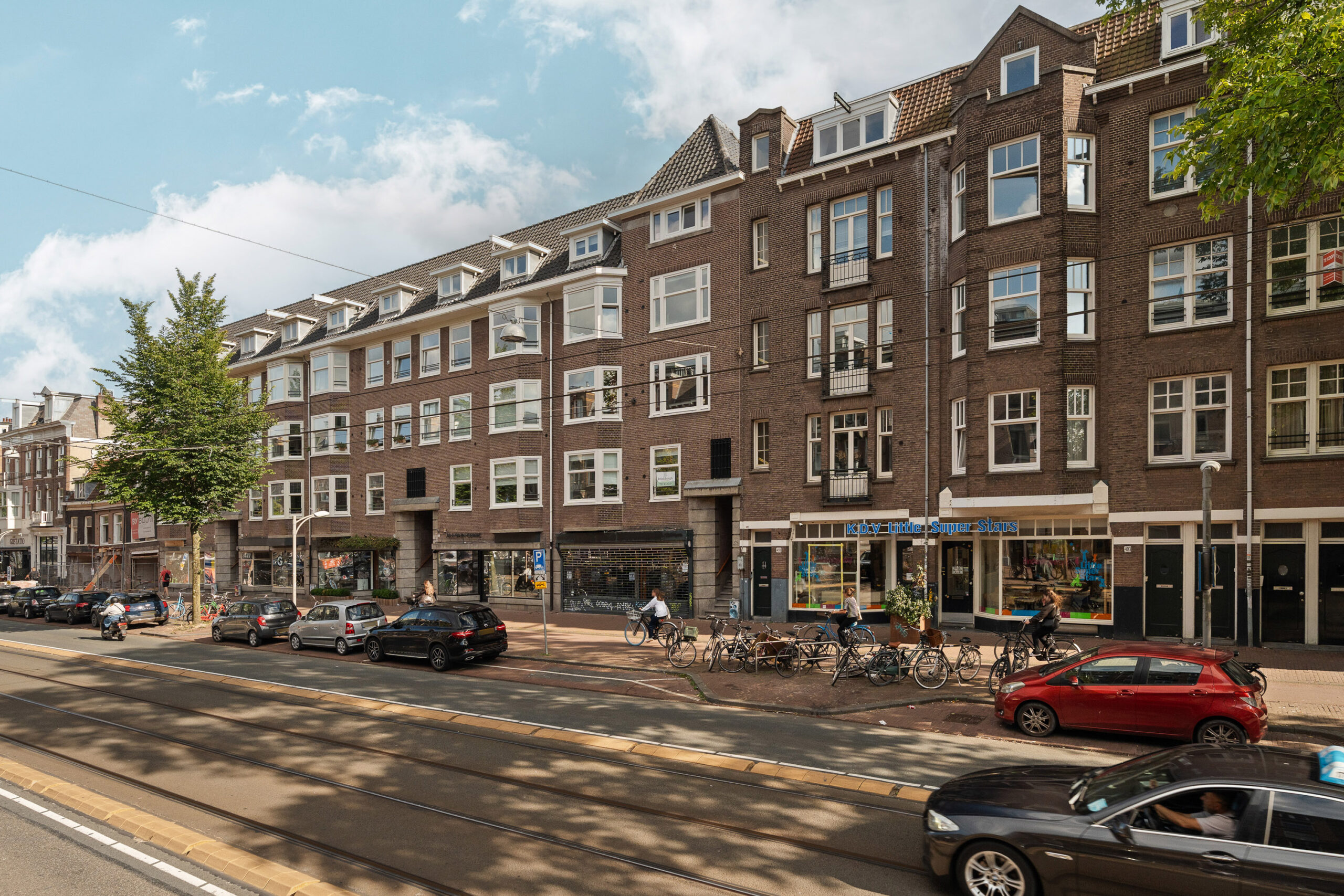 The apartment is located in the popular Oud-West district, just around the corner from Vondelpark, Amstelveenseweg, Jan Pieter Heijestraat, and the well-known Ten Katemarkt. This highly sought-after neighborhood is famous for its cozy cafés, restaurants (including the Foodhallen), delicatessens, and home decor shops. The David Lloyd sports club is nearby. You’ll find various supermarkets within walking distance, and Museumplein and Leidseplein are just a few minutes away by bike.