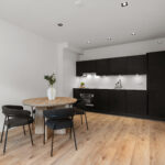- Open kitchen with modern appliances;