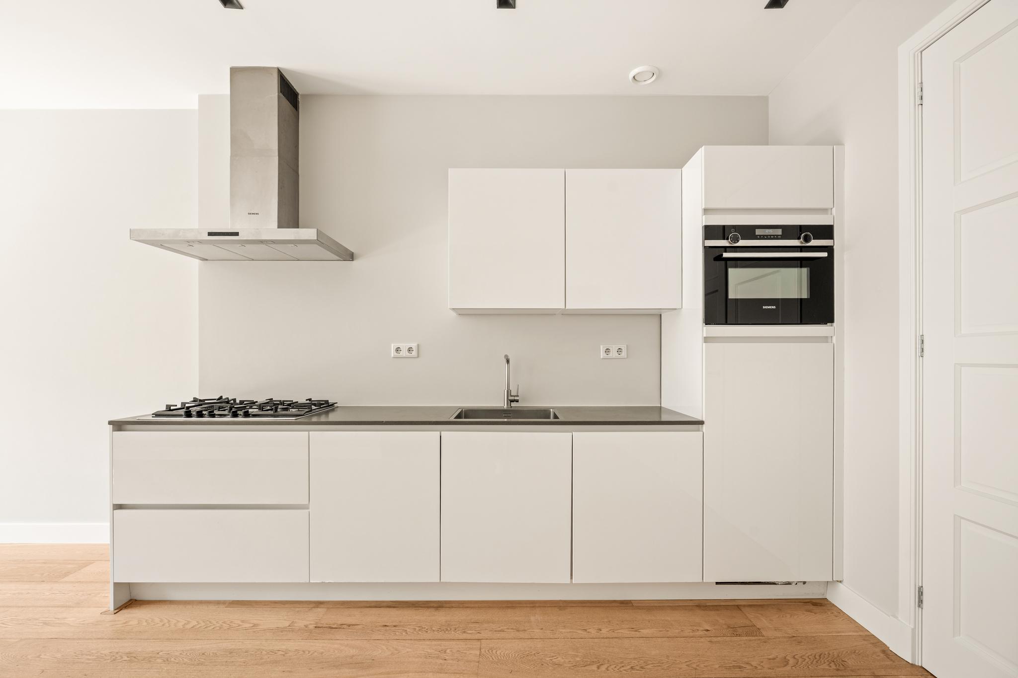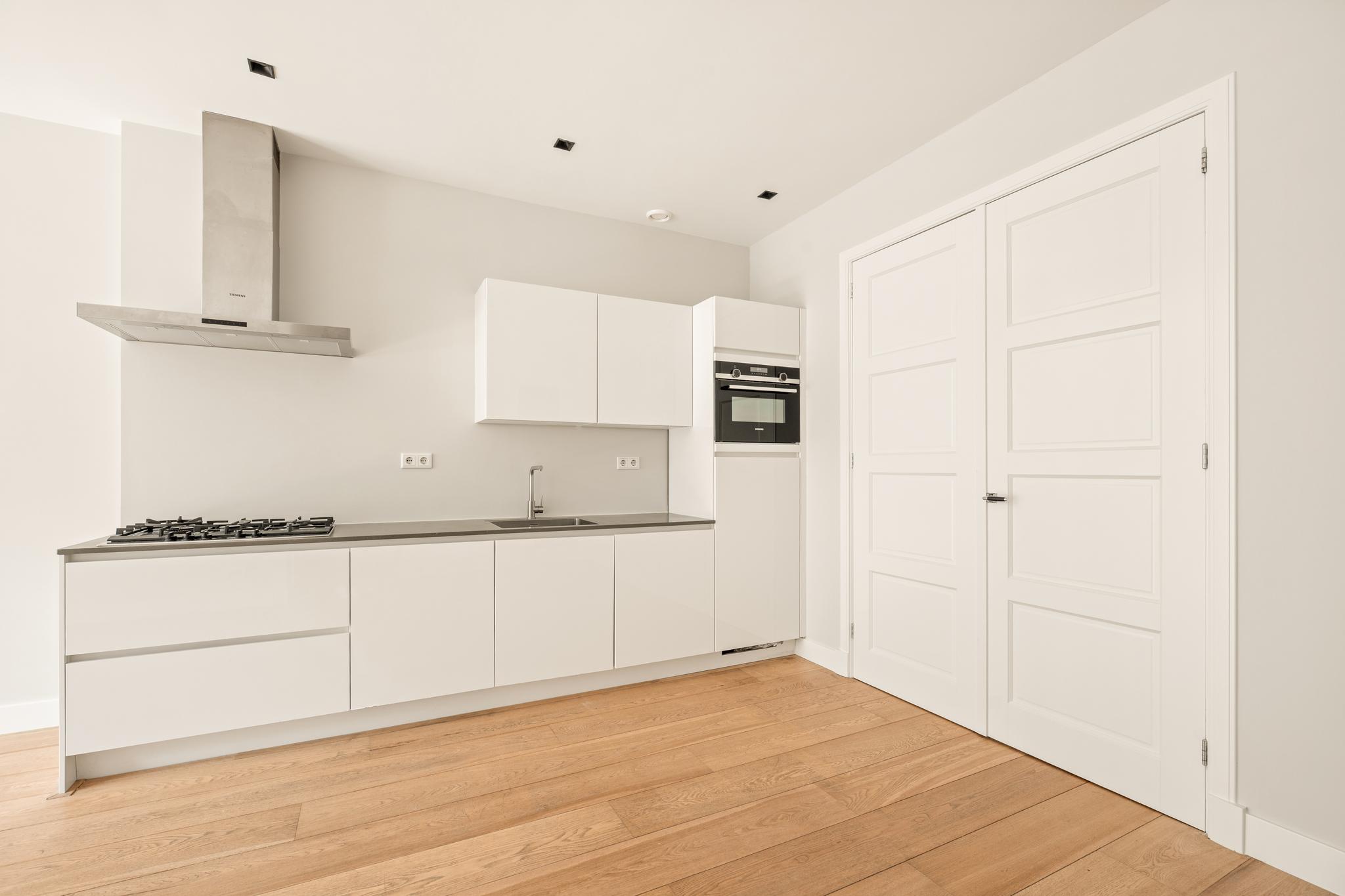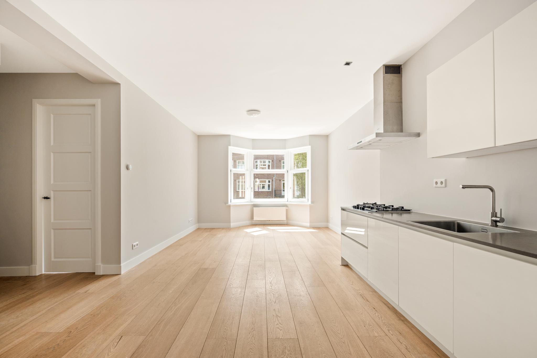 Renovated 4-room apartment of approx. 78 m² with private entrance and sunny balcony. This well-designed and efficiently laid-out apartment features a bright living area with open kitchen, three (bed)rooms, and a spacious bathroom. The property has an energy label C. LAYOUT Open porch with private entrance. First Floor Entrance hall, bright living room with bay window and open kitchen. The kitchen is equipped with a 5-burner gas stove, extractor hood, combination oven/microwave, dishwasher, and a refrigerator with freezer compartment. A spacious bedroom is located at the front of the apartment. Double doors lead to an additional room at the rear,…