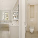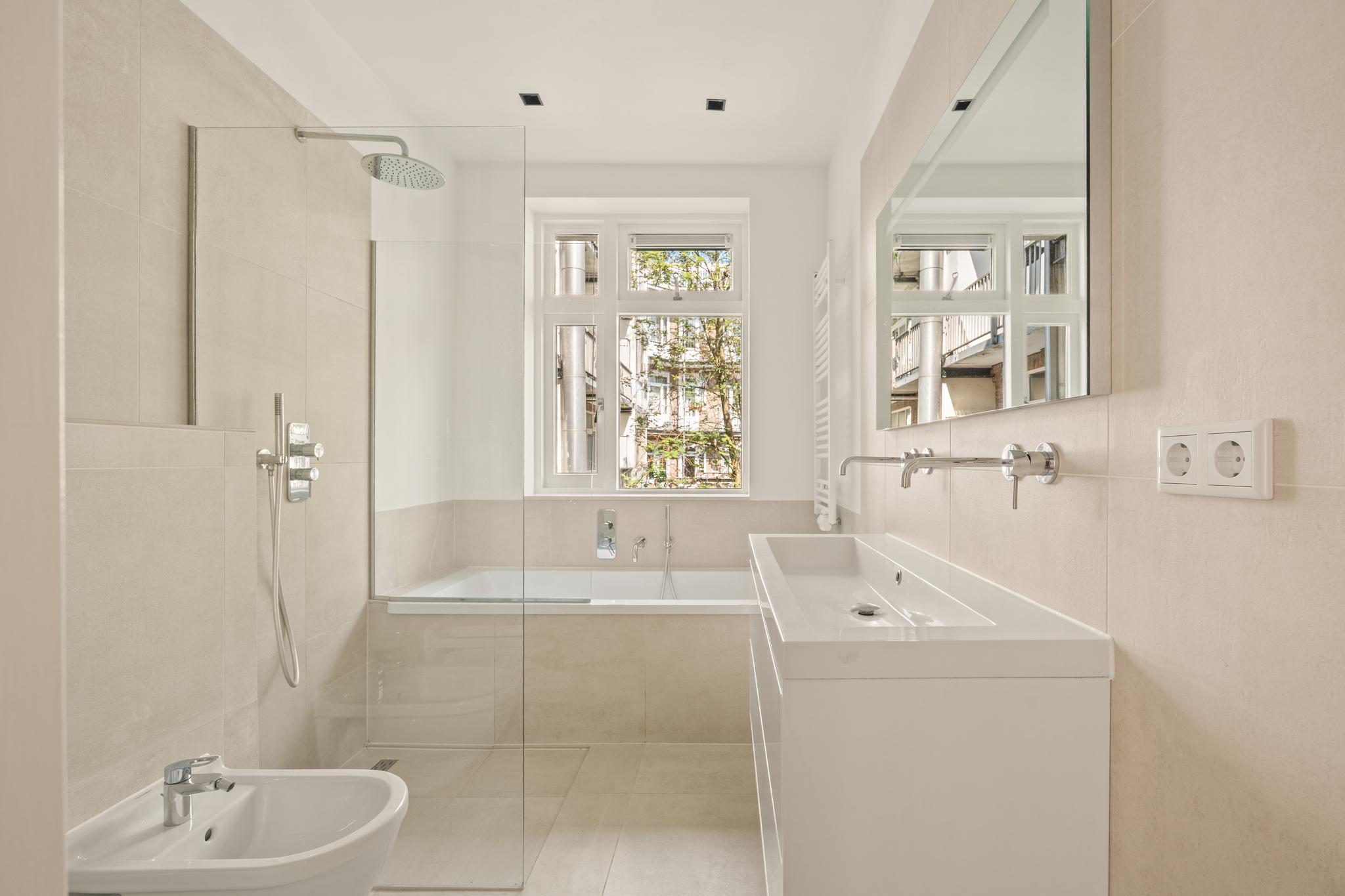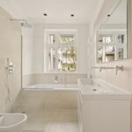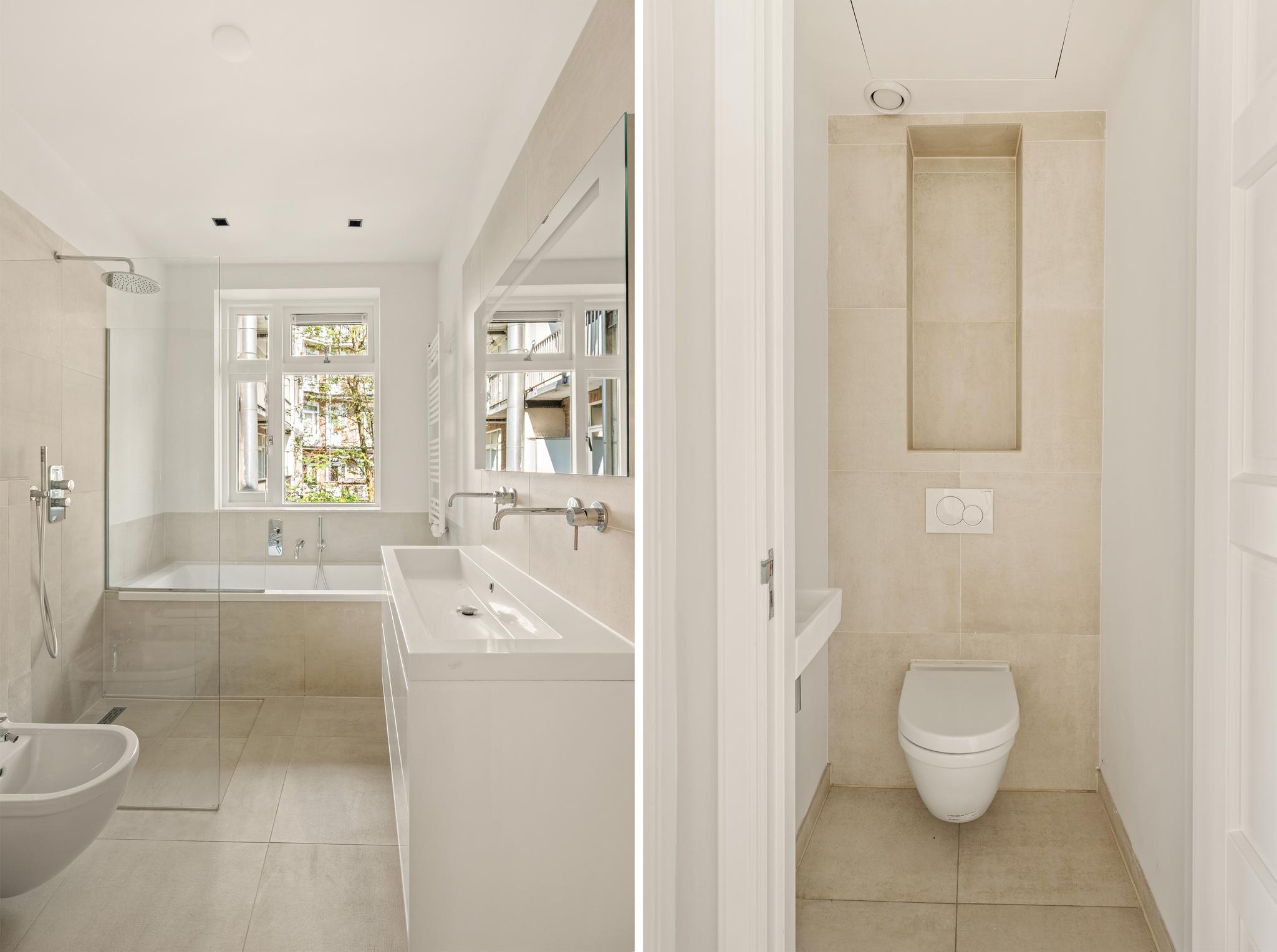 - Bathroom amenities Ligbad, toilet, bidet, dubbele wastafel, wastafelmeubel, inloopdouche
