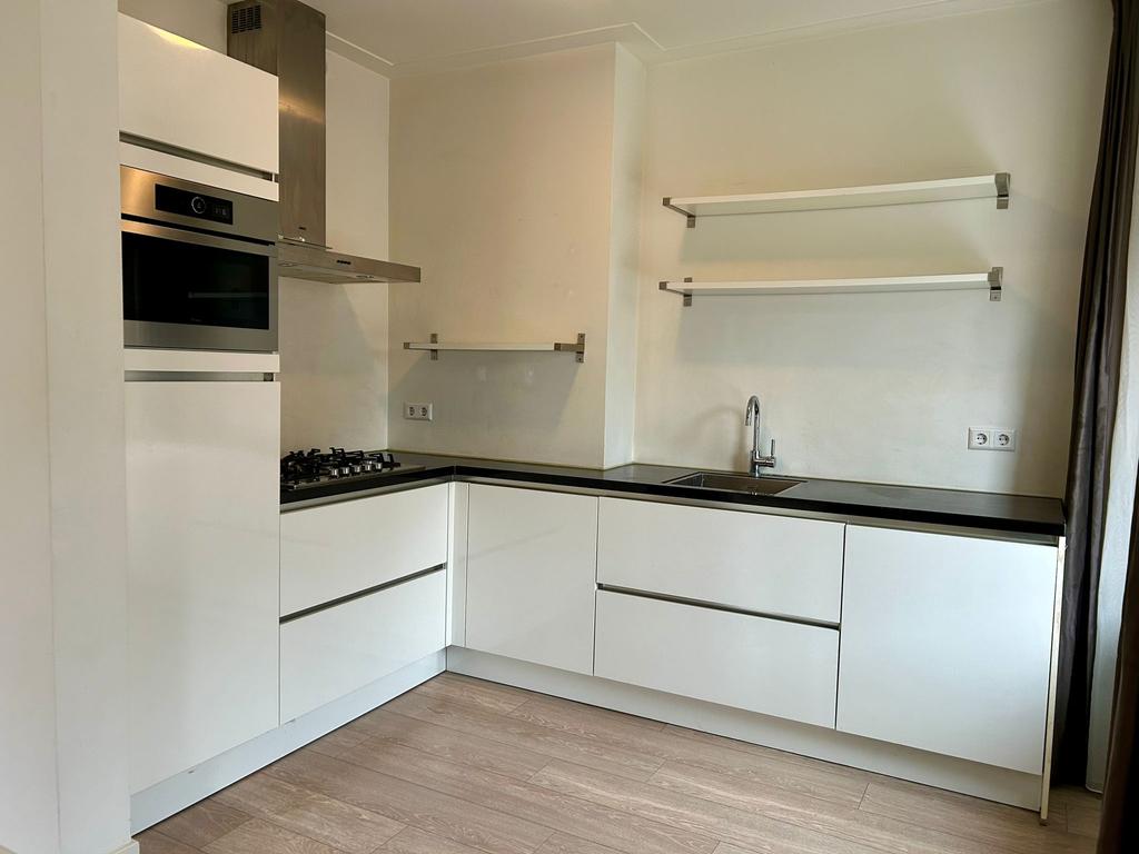 Through the staircase you reach the entrance of this apartment on the second floor. Upon entering you enter the spacious hall that gives access to all rooms. At the front of the apartment you will find the spacious living room with open kitchen. Here the amount of light is immediately noticeable through the many windows. In the corner is the luxury kitchen which is equipped with the following built-in appliances: 5-burner gas stove, combi microwave, extractor hood, dishwasher, large fridge with freezer drawer and sufficient cupboard space.