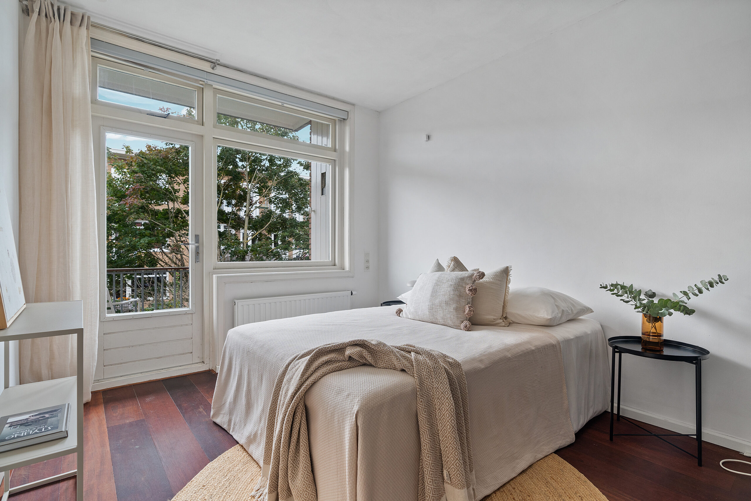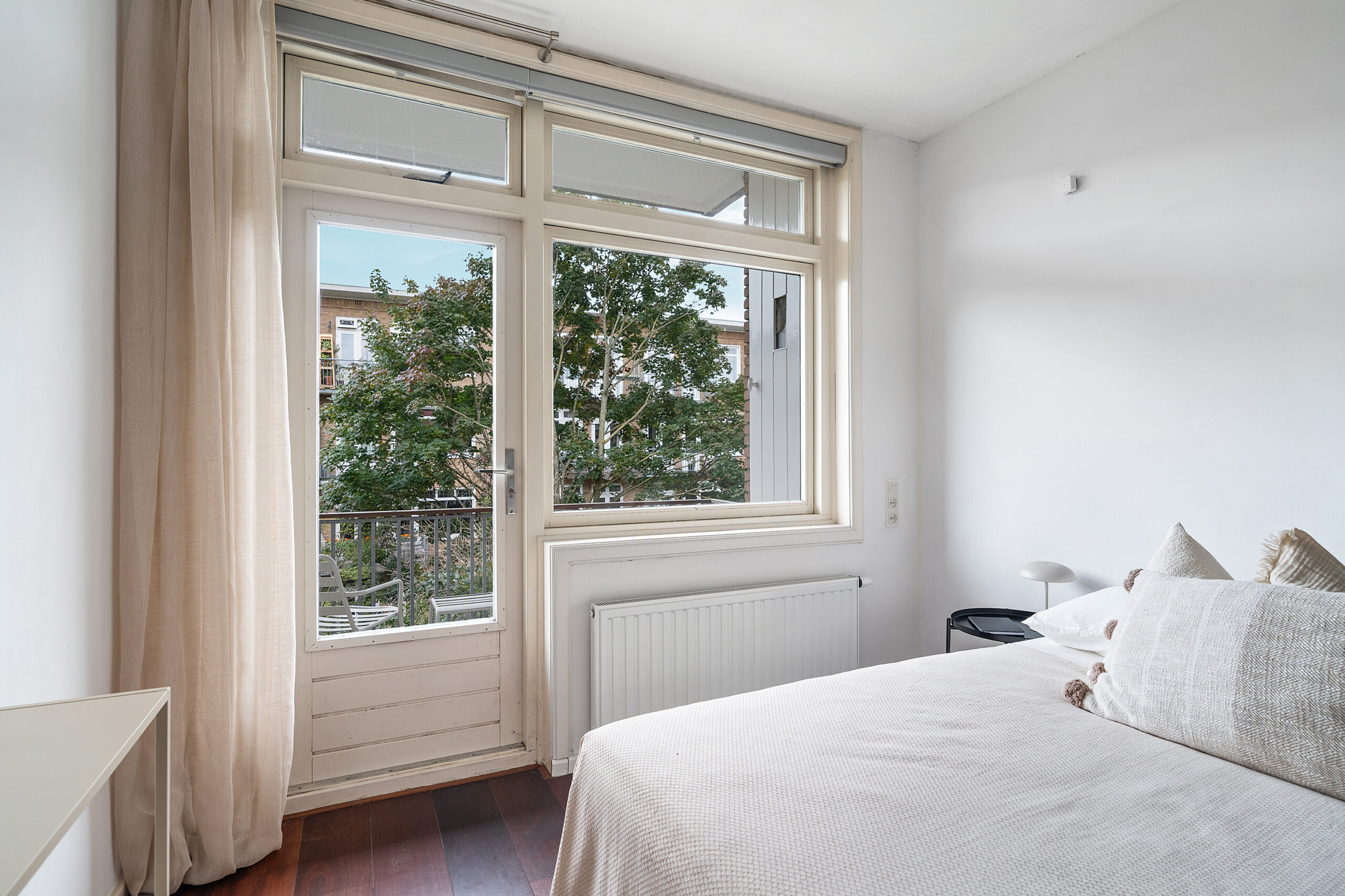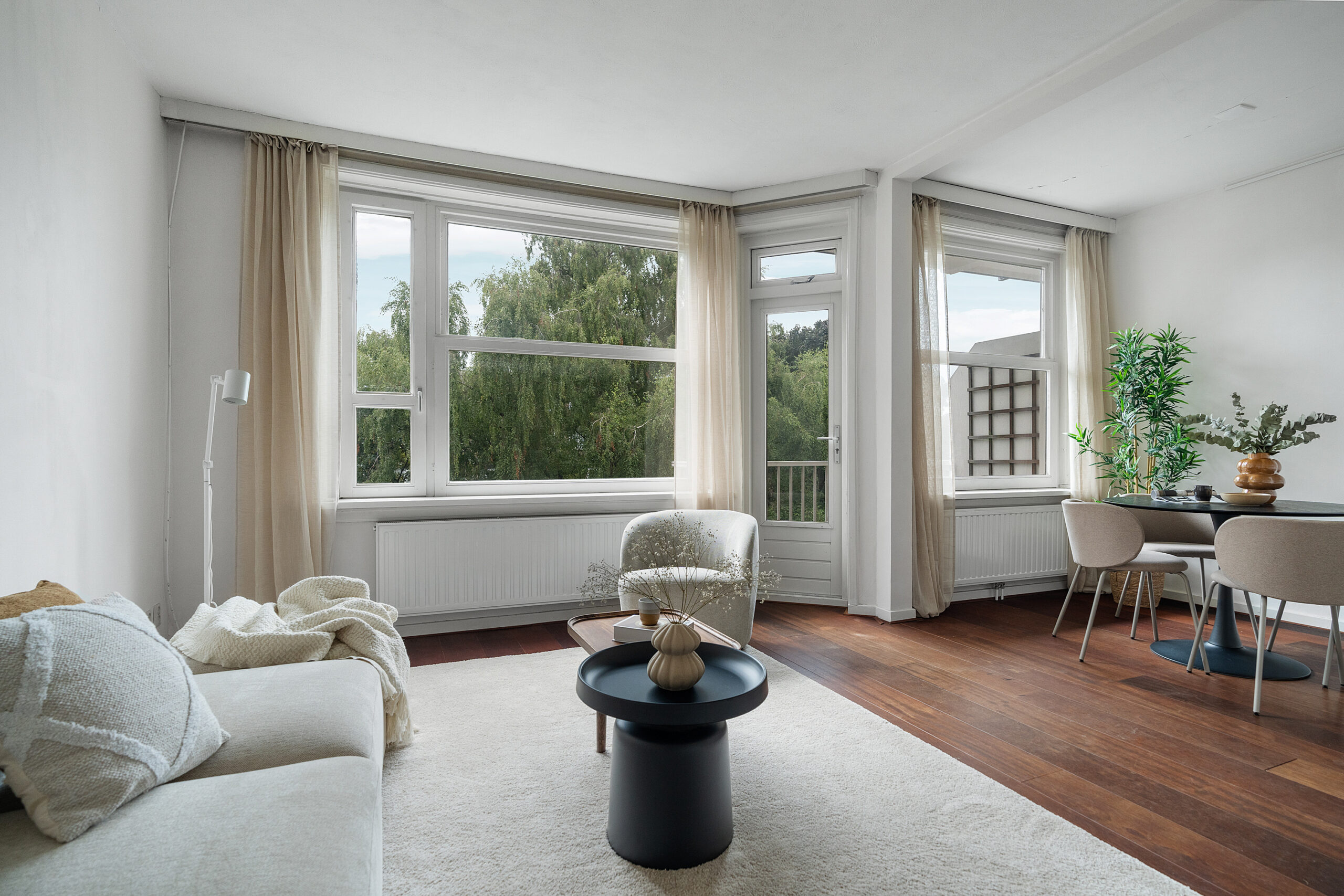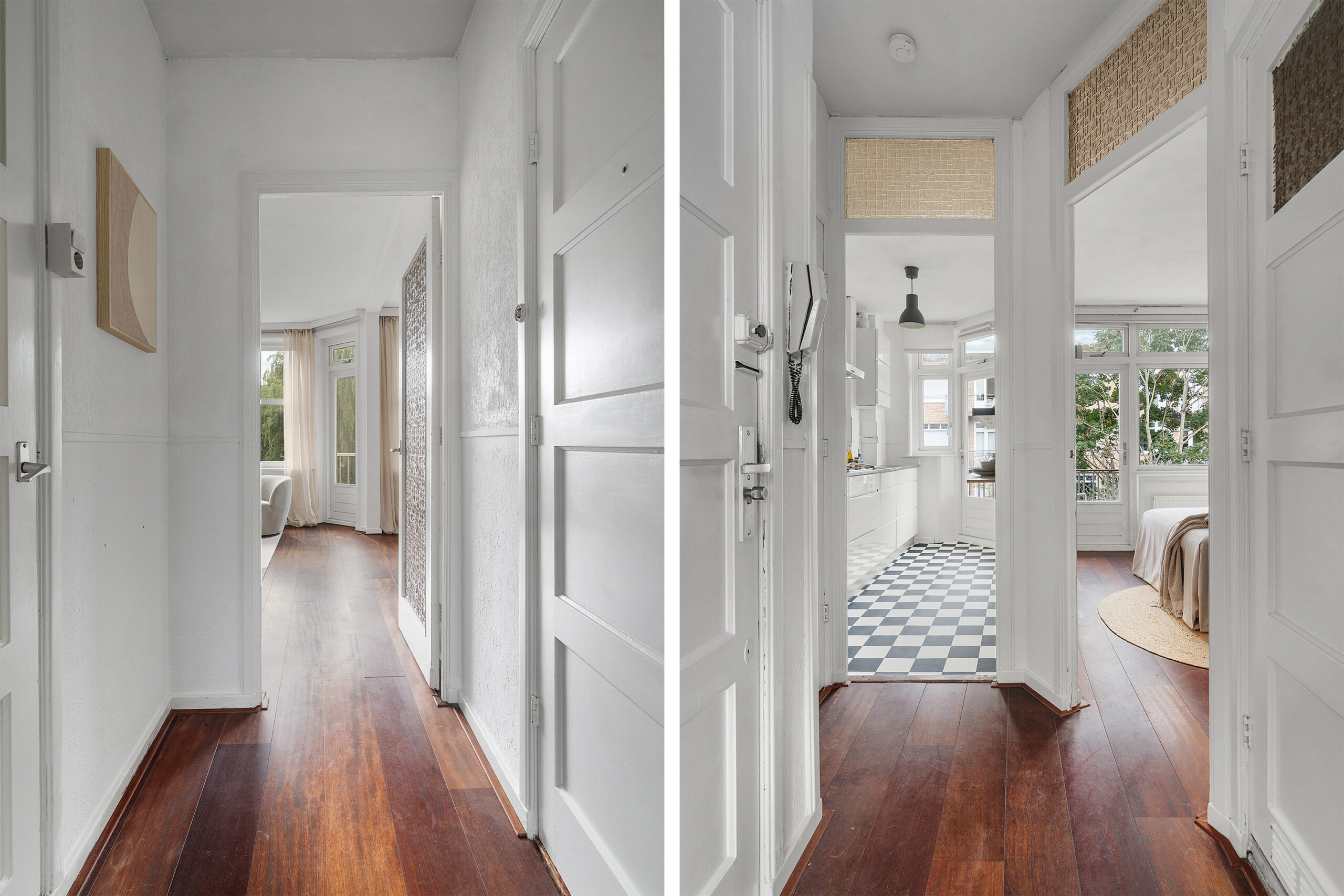Experience comfortable living with a delightful ambiance in this quietly located 2- (potentially 3-) room apartment on the second floor. With balconies at both the front and rear, you can enjoy sunlight throughout the day: coffee in the morning sun and a drink in the afternoon or evening on the west-facing front balcony. Both balconies offer green views and optimal privacy. The apartment is just a stone's throw from Erasmus Park and several cozy coffee spots and bakeries — you hardly need to leave the street for a fresh croissant.