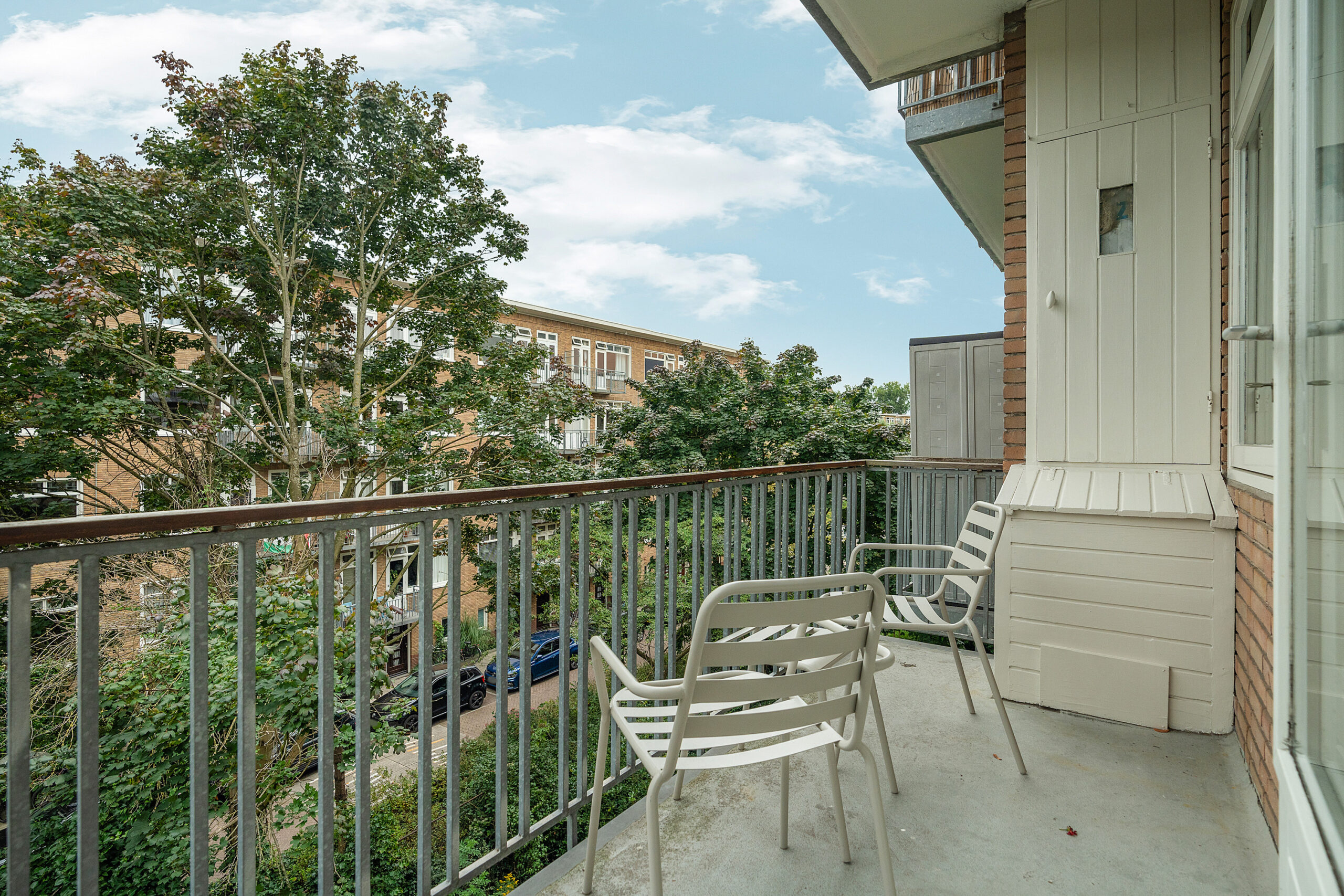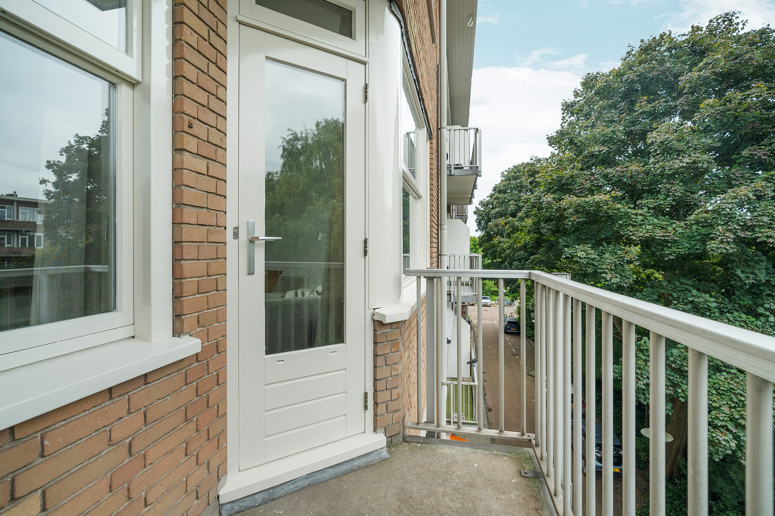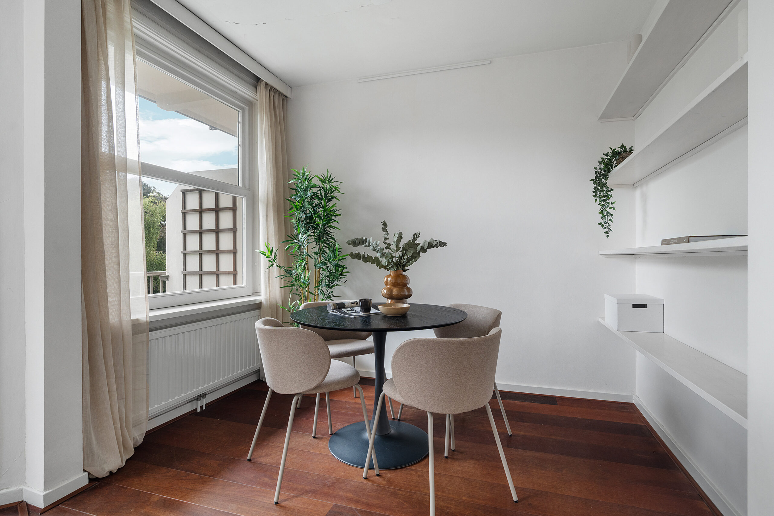 Experience comfortable living with a delightful ambiance in this quietly located 2- (potentially 3-) room apartment on the second floor. With balconies at both the front and rear, you can enjoy sunlight throughout the day: coffee in the morning sun and a drink in the afternoon or evening on the west-facing front balcony. Both balconies offer green views and optimal privacy. The apartment is just a stone's throw from Erasmus Park and several cozy coffee spots and bakeries — you hardly need to leave the street for a fresh croissant.