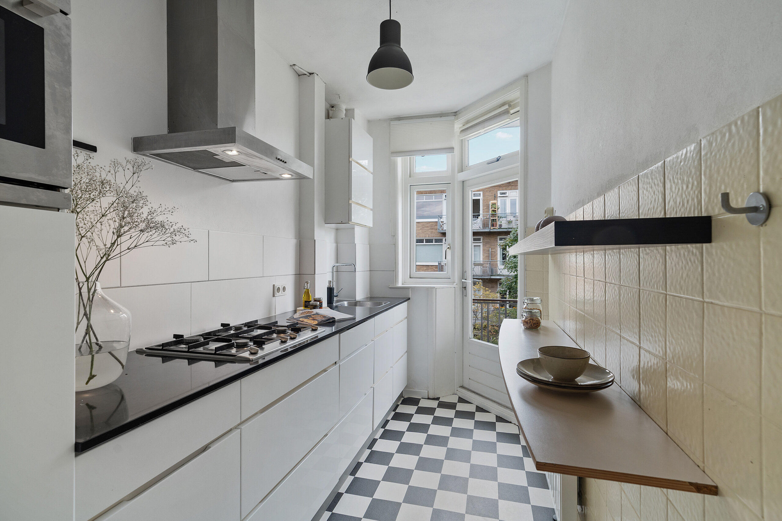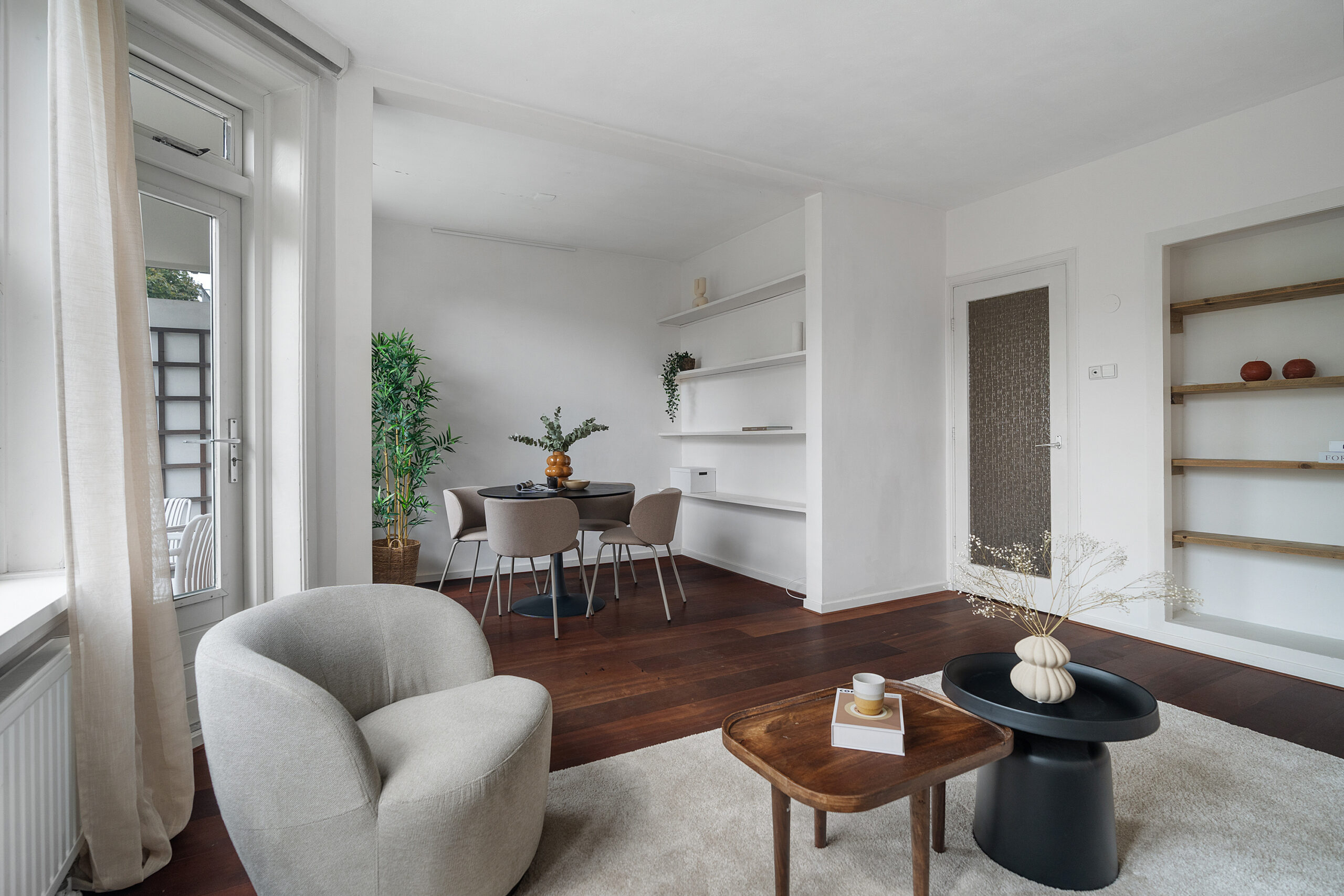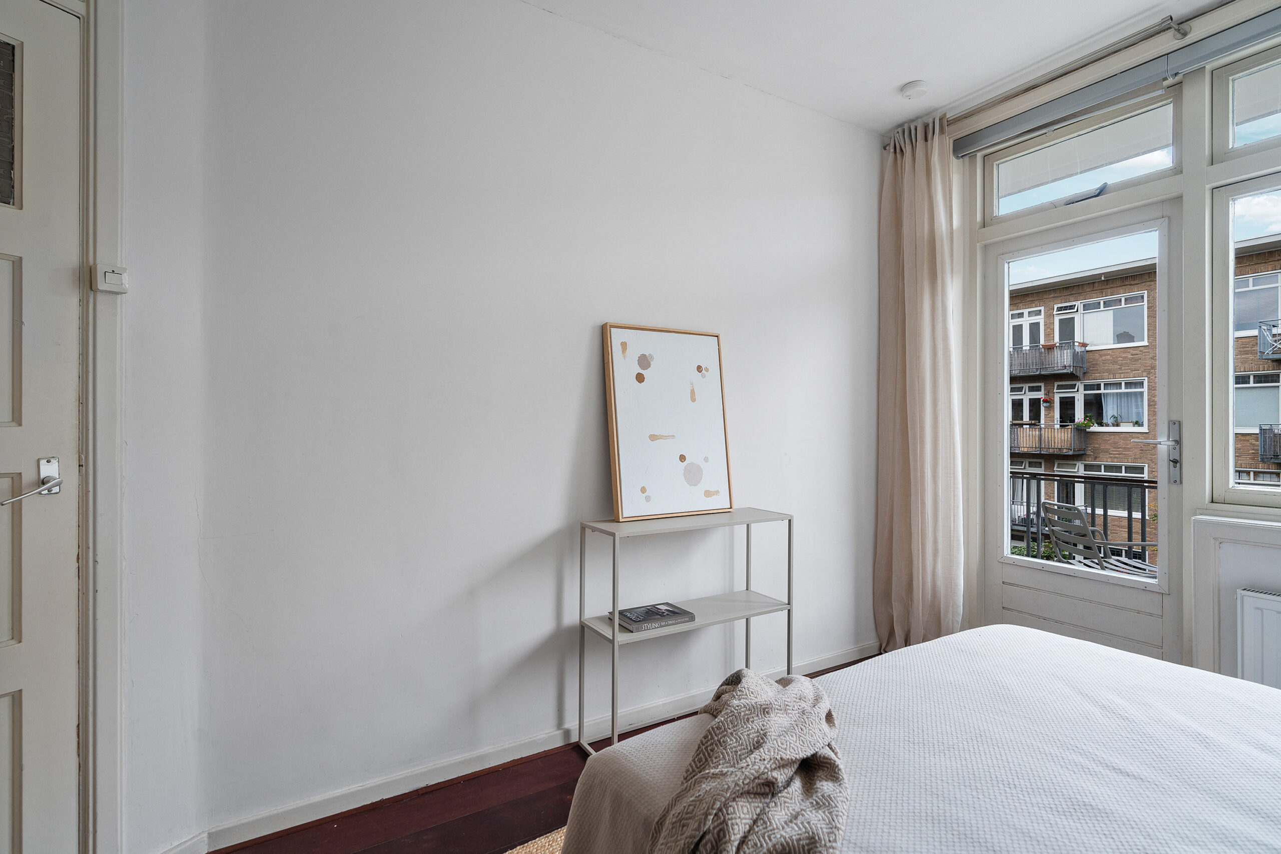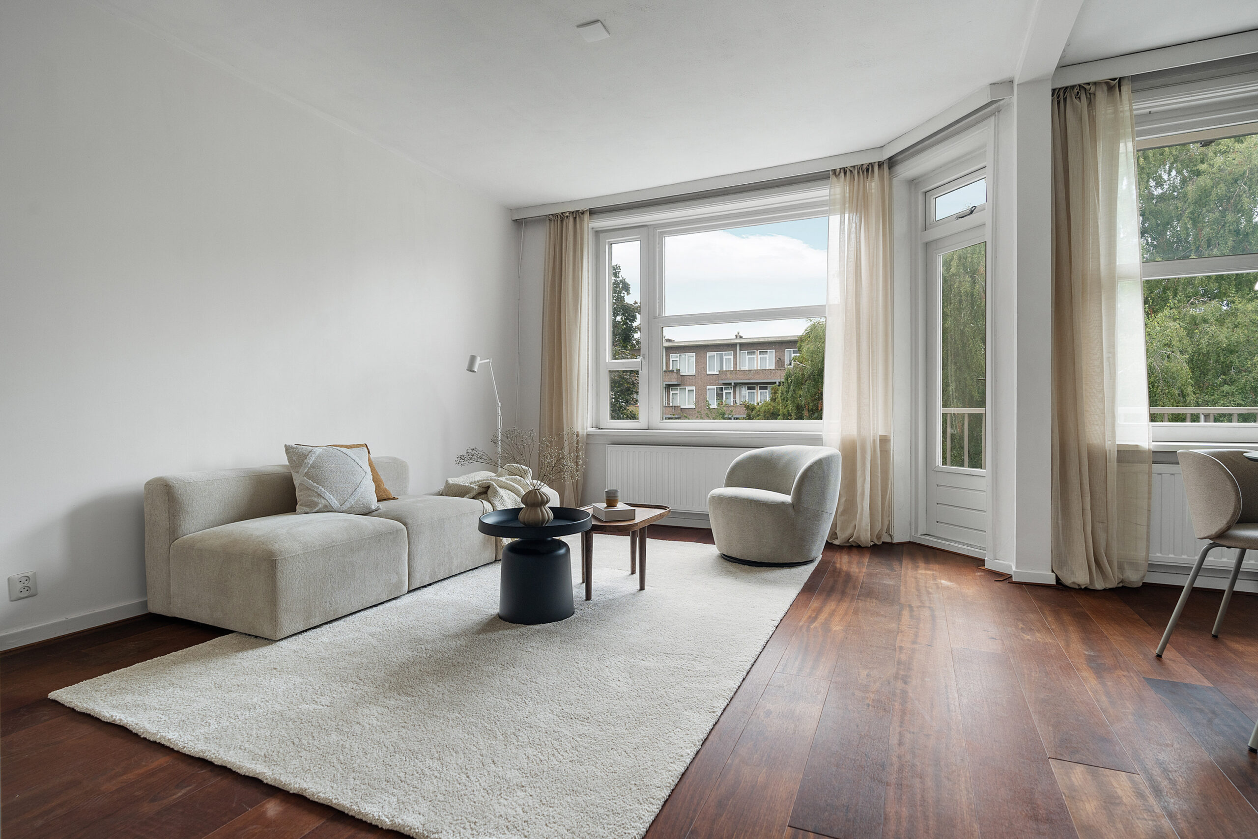 Experience comfortable living with a delightful ambiance in this quietly located 2- (potentially 3-) room apartment on the second floor. With balconies at both the front and rear, you can enjoy sunlight throughout the day: coffee in the morning sun and a drink in the afternoon or evening on the west-facing front balcony. Both balconies offer green views and optimal privacy. The apartment is just a stone's throw from Erasmus Park and several cozy coffee spots and bakeries — you hardly need to leave the street for a fresh croissant.