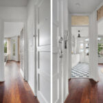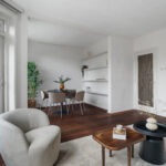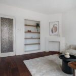 Second floor: Entrance/hall with washing machine and meter cabinet. Modern kitchen with various built-in appliances and access to the east-facing balcony. Spacious bedroom with large wardrobe and access to the east-facing balcony. The bathroom is dated but functional, with a bathtub and toilet. Bright living room at the front with a west-facing balcony and beautiful Jatoba hardwood flooring. The side section of the living room can be partitioned off to create a second bedroom.
