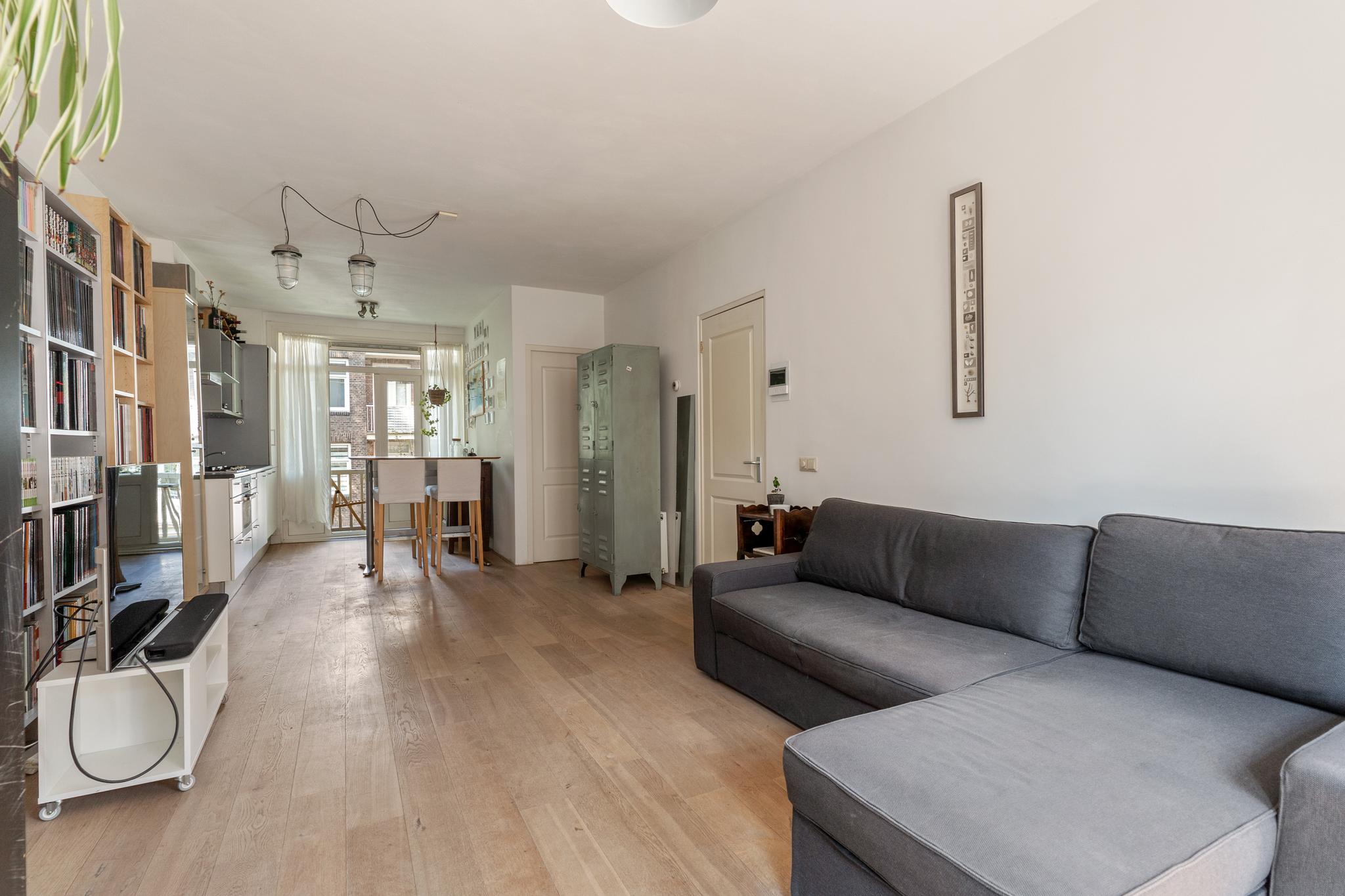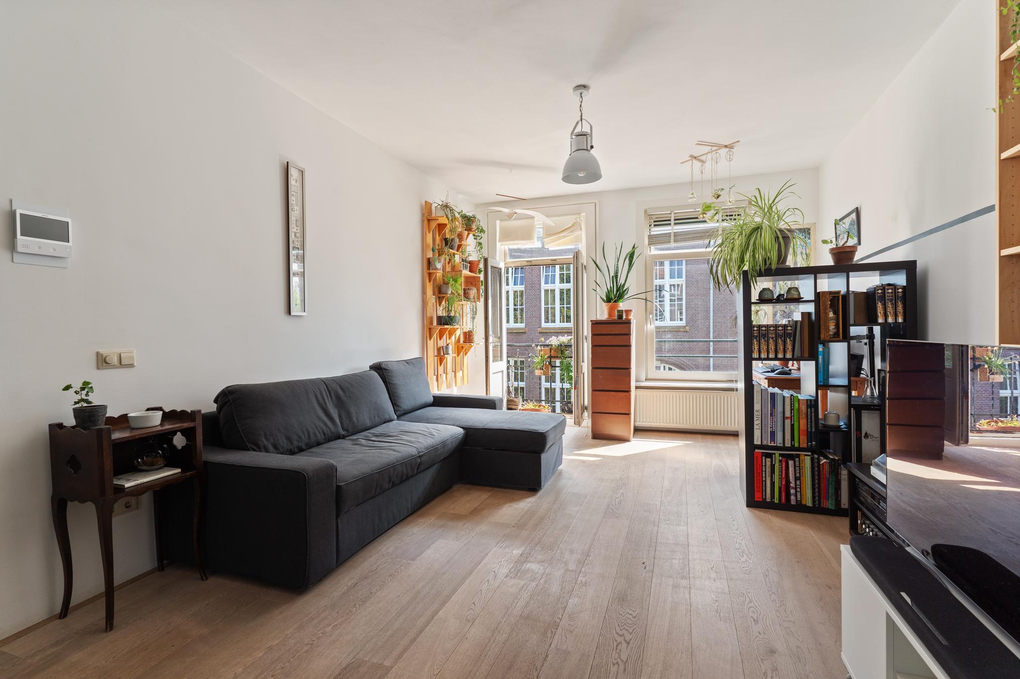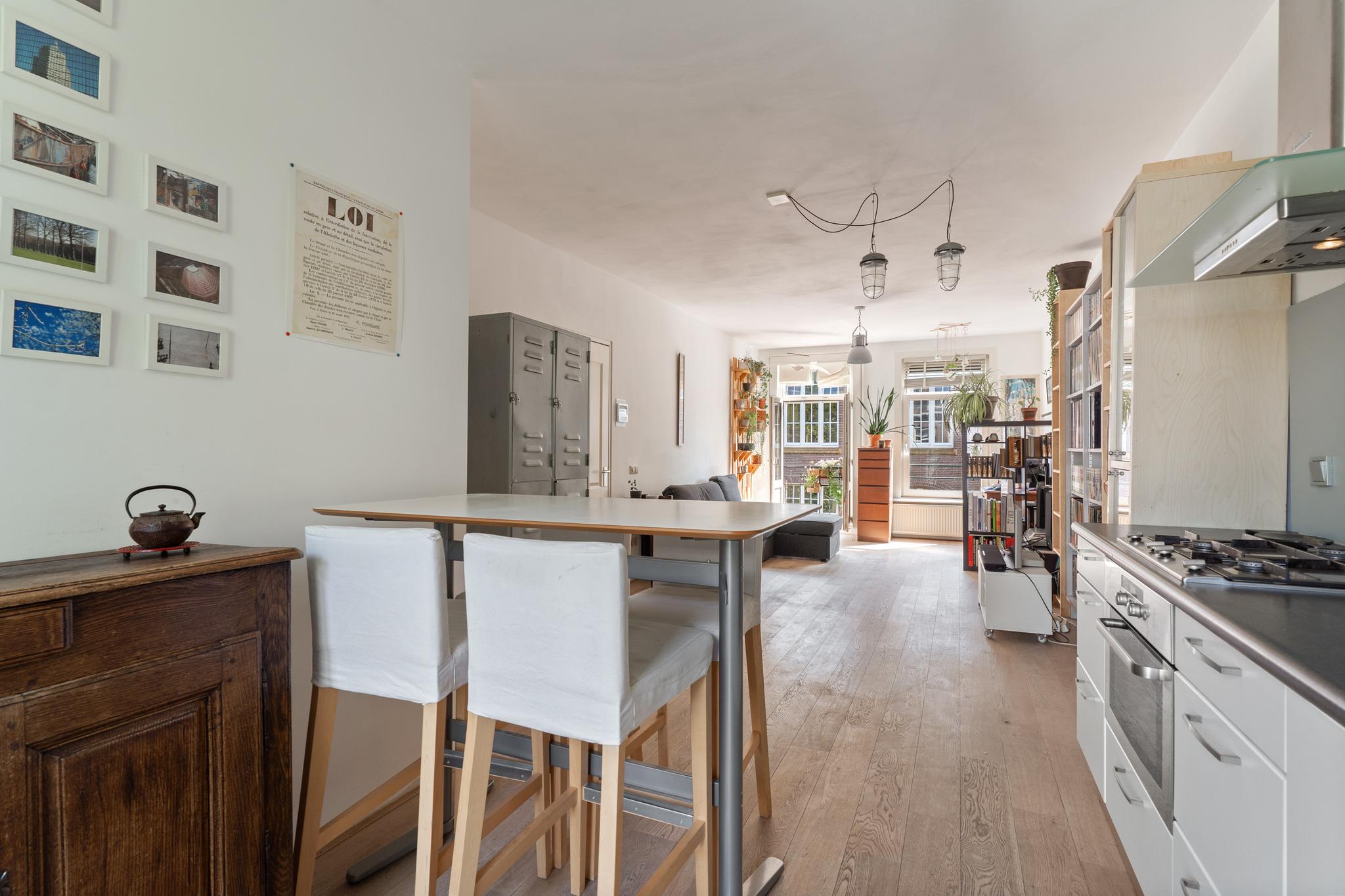 A bright and well laid-out 1-bedroom apartment of approximately 51 m², featuring a rear-facing balcony and a French balcony at the front. The apartment is situated on the fourth floor of a characteristic 1914 building, located on a quiet street in the popular Indische Buurt in Amsterdam East, offering beautiful views over Timorplein. The ground lease has been bought off in perpetuity.