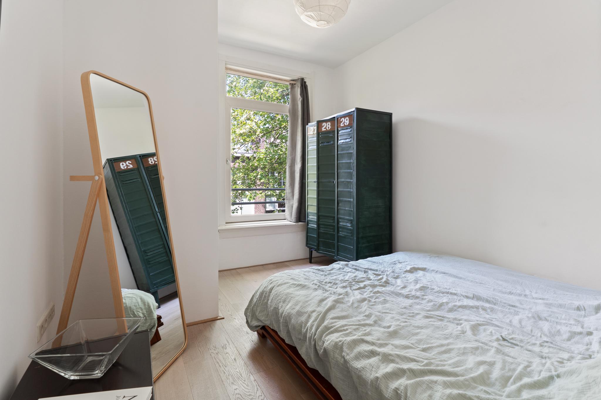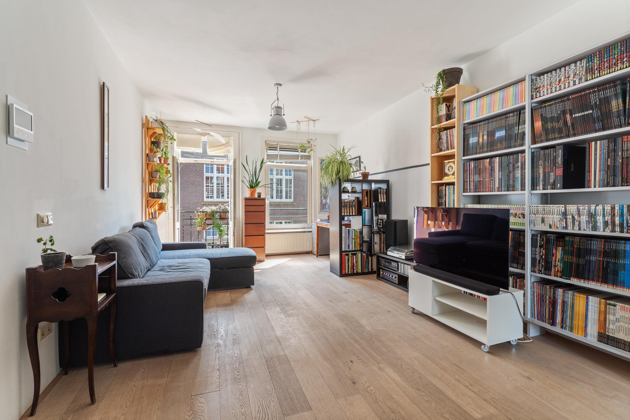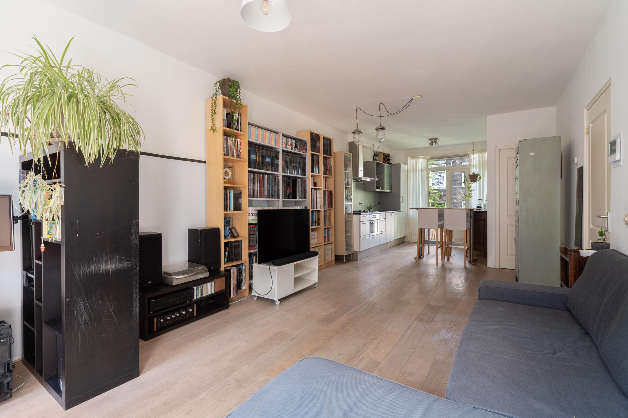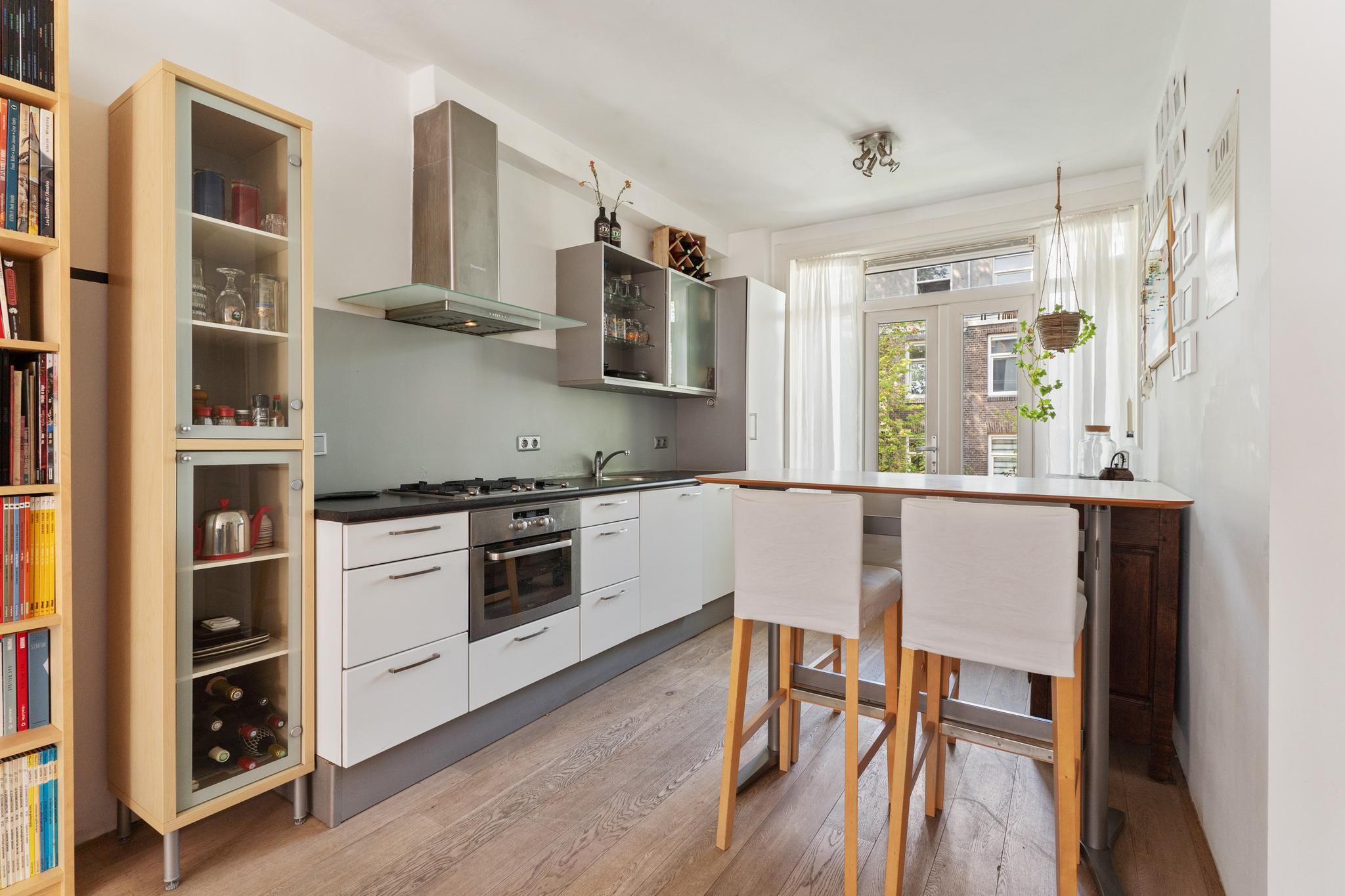 A bright and well laid-out 1-bedroom apartment of approximately 51 m², featuring a rear-facing balcony and a French balcony at the front. The apartment is situated on the fourth floor of a characteristic 1914 building, located on a quiet street in the popular Indische Buurt in Amsterdam East, offering beautiful views over Timorplein. The ground lease has been bought off in perpetuity.