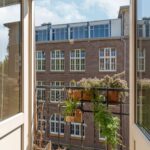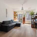 A bright and well laid-out 1-bedroom apartment of approximately 51 m², featuring a rear-facing balcony and a French balcony at the front. The apartment is situated on the fourth floor of a characteristic 1914 building, located on a quiet street in the popular Indische Buurt in Amsterdam East, offering beautiful views over Timorplein. The ground lease has been bought off in perpetuity. LAYOUT Shared staircase. Entrance to the apartment on the third floor. THIRD FLOOR Private entrance. At the front of the apartment, you’ll find the bright living room with open kitchen and double French doors opening onto a French…