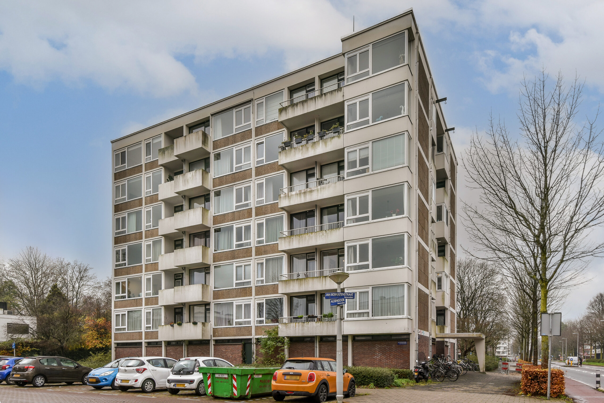 A wonderfully bright and pleasant apartment located at Van Boshuizenstraat 185, in the popular Buitenveldert area. The property features a light-filled living room with a modern open kitchen, one bedroom, a study, a bathroom, two sunny south-facing balconies, one with a beautiful view to the south and the other to the east and an external storage room. In short: a comfortable apartment in an excellent location. LAYOUT Ground Floor Through the neat and well-maintained communal entrance, you can take the elevator to the fifth floor. This floor also provides access to an additional storage room, ideal for extra storage space.…