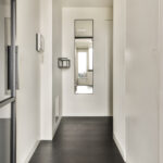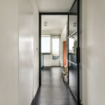 Upon entering, you step into a spacious hallway that provides access to the living room and the toilet. The bright living room with a modern open kitchen is fitted with large windows, allowing for plenty of natural light and creating an open and spacious atmosphere. You can also enjoy a beautiful view from here, offering a sense of tranquility right in the city.