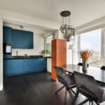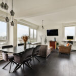 The kitchen, newly installed in 2023, is of high quality and equipped with luxury built-in appliances, including a steam oven with microwave function, a Miele dishwasher, a built-in refrigerator, a built-in freezer, a Quooker for boiling and sparkling water, and a Miele induction cooktop with integrated extractor. The living room with open kitchen also features air conditioning with a heating function. From the living room, you have access to one of the two balconies, located on the east side a wonderful spot to enjoy your morning coffee.