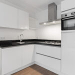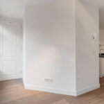 The living room with open kitchen is located at the front of the apartment. The kitchen is equipped with a dishwasher, fridge with freezer compartment, a 5-burner gas hob, a combi oven / microwave and a stainless steel extractor hood. The spacious bathroom has a walk-in shower, toilet and a double sink. Both of the bedrooms are located at the back of the apartment. The bedrooms measure approx. 7 m² and 8 m². Furthermore the apartment contains a separate laundry facility. The apartment was renovated in 2020, has double glazing and is equipped with underfloor heating.