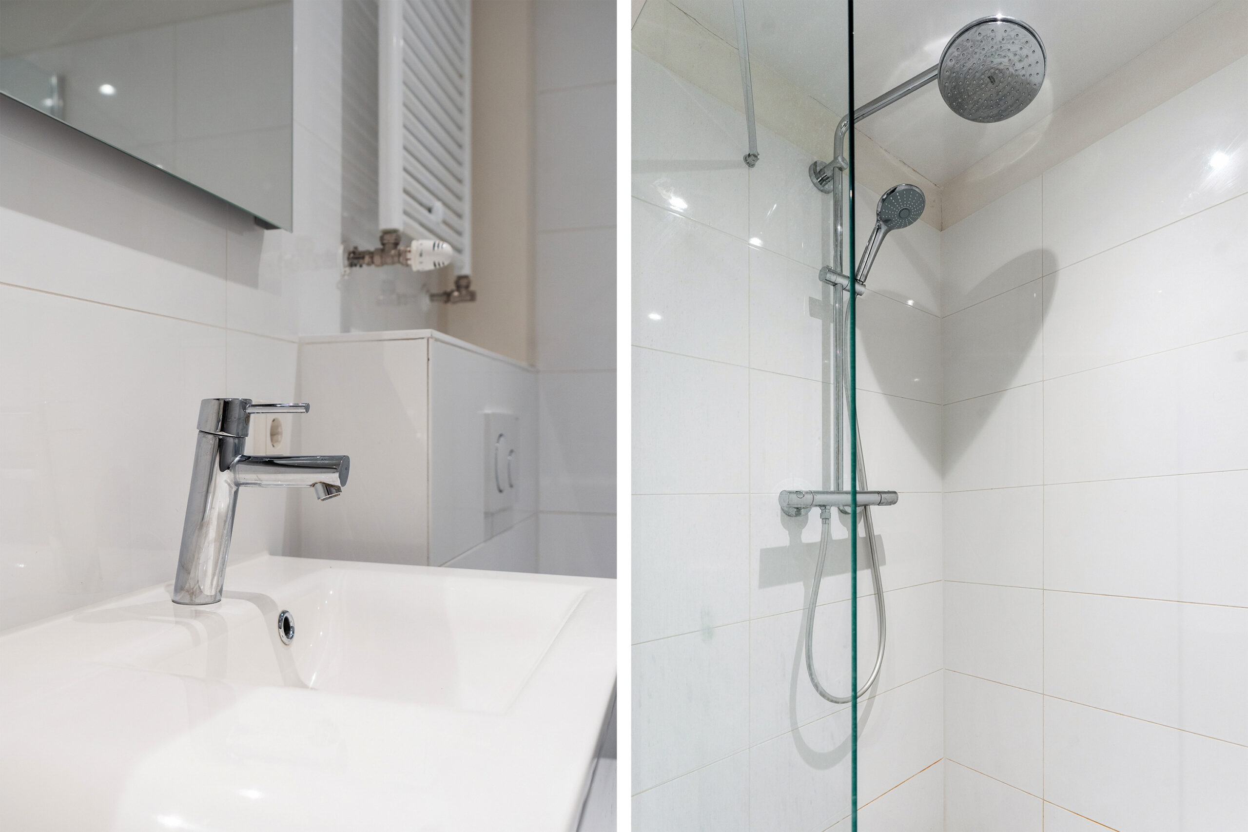 - Bathroom amenities Toilet, dubbele wastafel, wastafelmeubel, inloopdouche