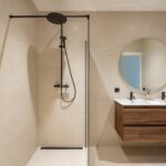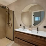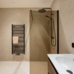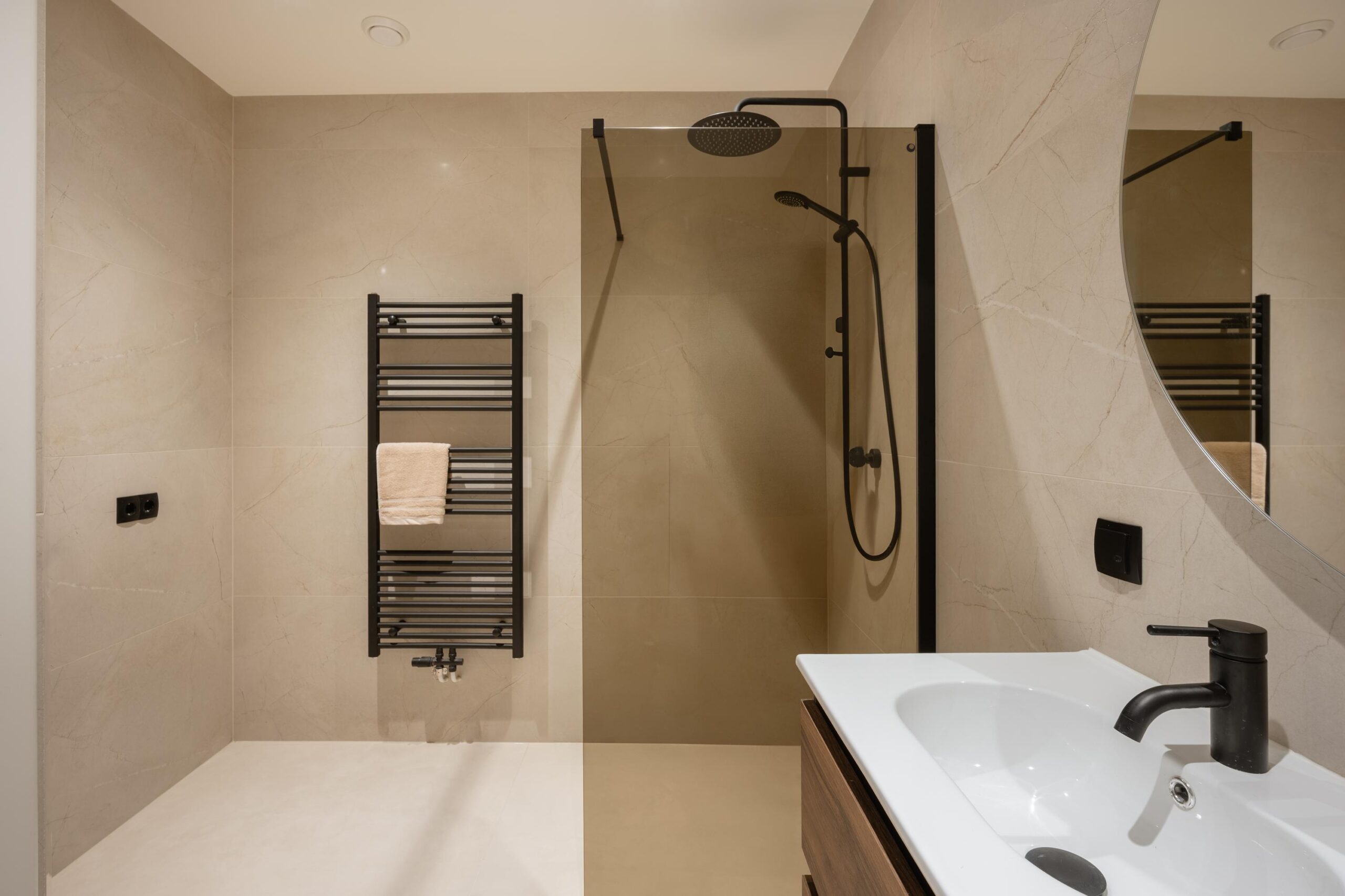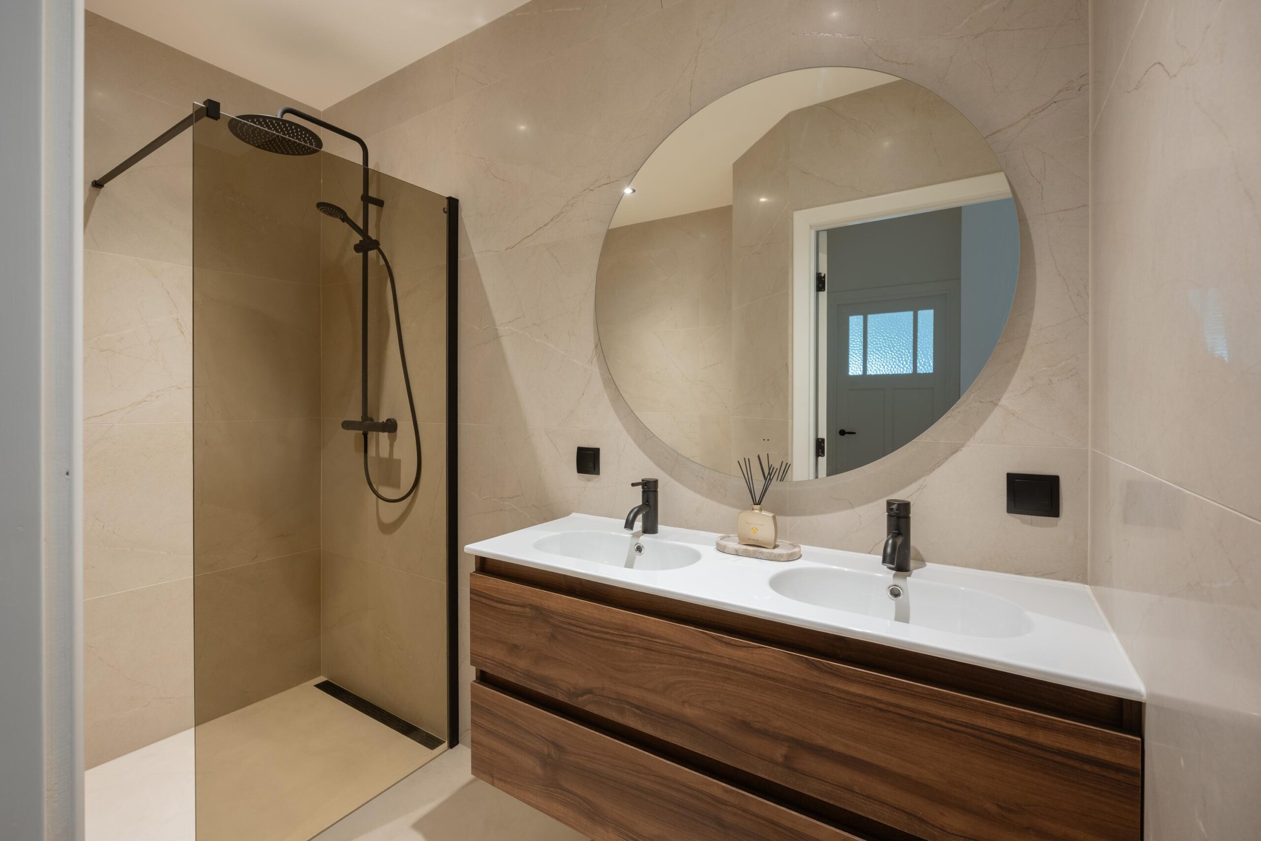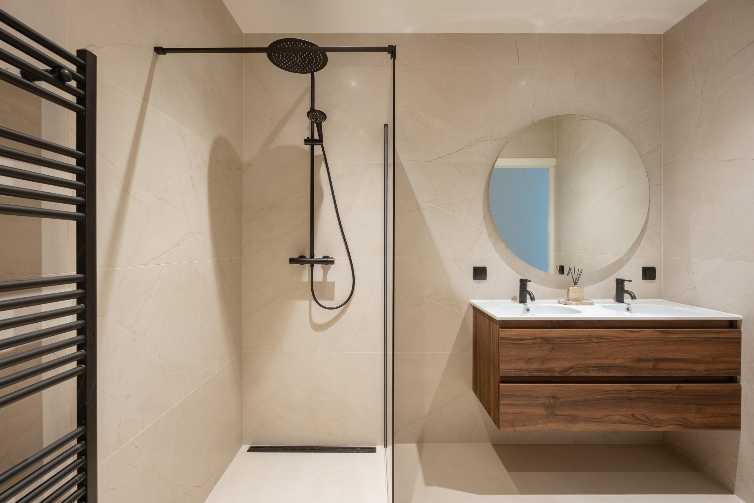 - Bathroom amenities Dubbele wastafel, wastafel, wastafelmeubel, inloopdouche, wasmachineaansluiting