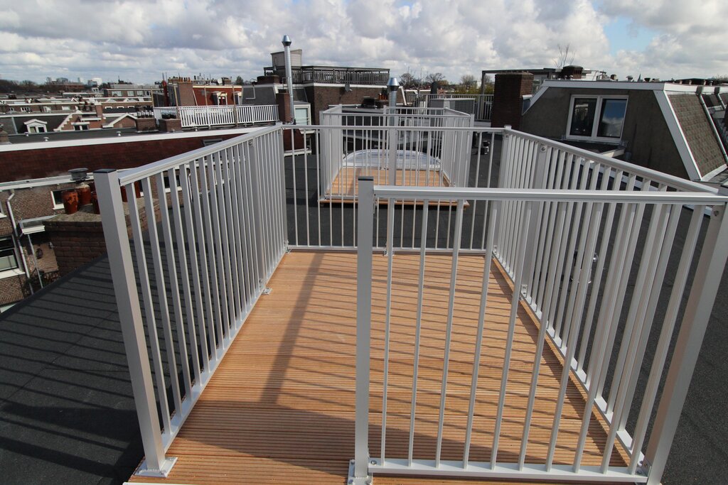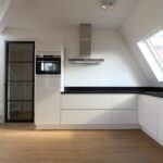 U bereikt het appartement via het gemeenschappelijke trappenhuis. De entree van de woning is op de vierde etage. Middels een eigen trap komt u binnen in de hal welke toegang geeft tot de woonkamer, separaat toilet en technische ruimte. Aan de achterzijde bevindt zich de woonkamer met luxe open keuken. De greeploze keuken is voorzien van een 4-pits inductie kookplaat, afzuiging, koel/vriescombinatie, een vaatwasser, een combi- oven/magnetron en een natuurstenen werkblad. Alle keukenapparatuur is van het merk AEG. Via de woonkamer heeft u toegang tot het zonnige dakterras ca. 5 m².