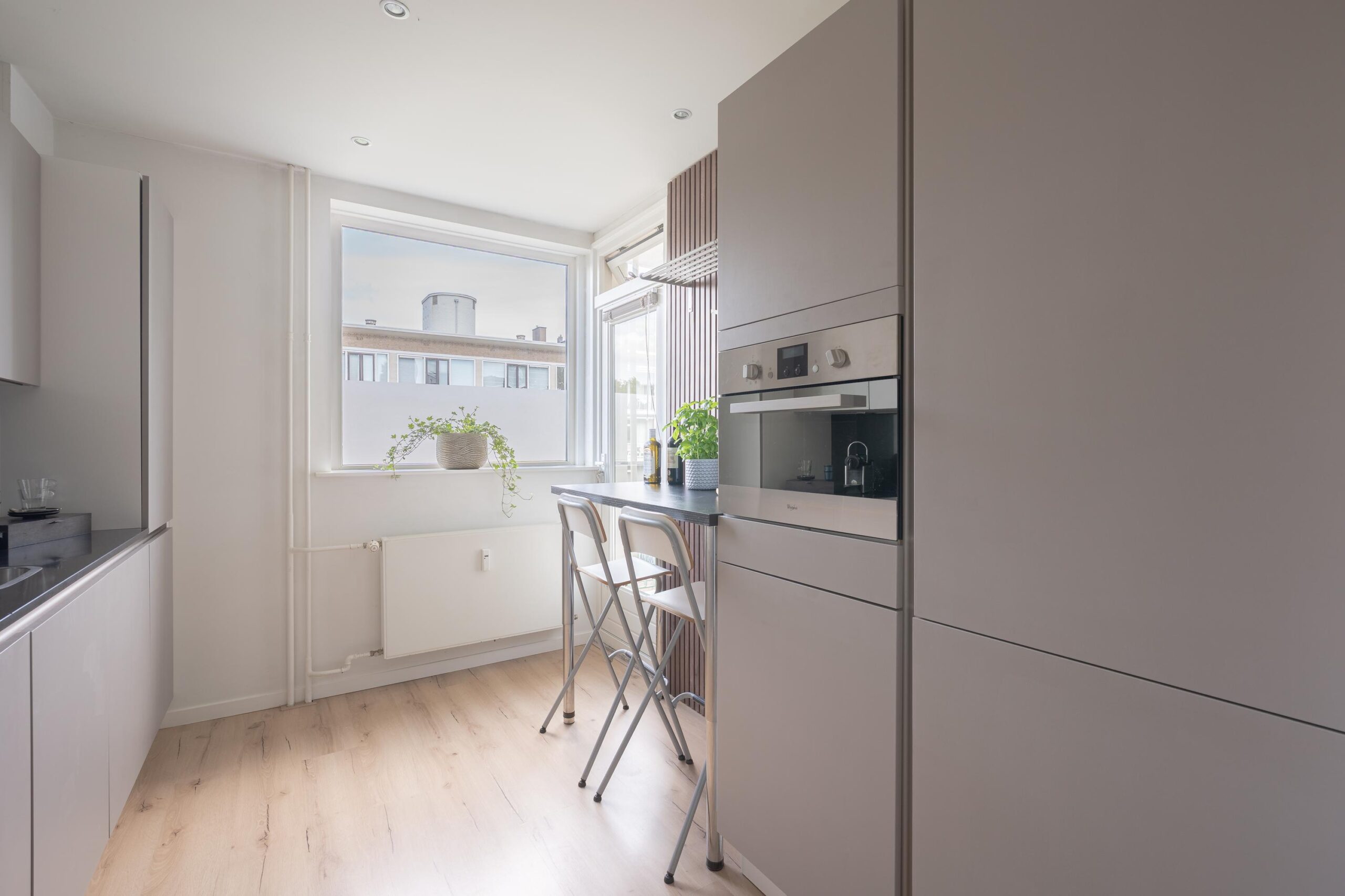 studeerkamer of thuiswerkkantoor. De ruime en lichte woonkamer vormt het hart van het appartement en sluit perfect aan bij de praktische en eigentijdse indeling. Dankzij de renovatie in 2014 verkeert de woning in een moderne staat en is zij direct te betrekken.