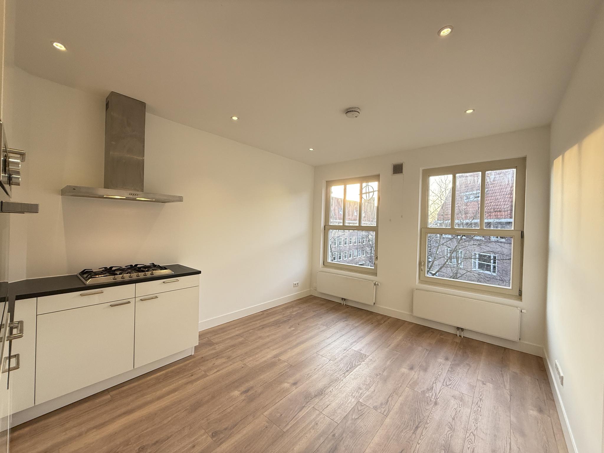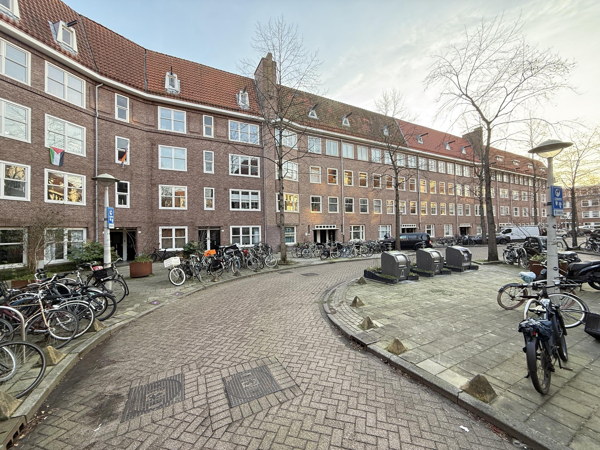 Double upper appartment of approximately 80m² with four bedrooms, two modern bathrooms, an open kitchen, a lovely sunny roof terrace and a balcony. Located in the bustling De Baarsjes, close to parks and various hotspots.