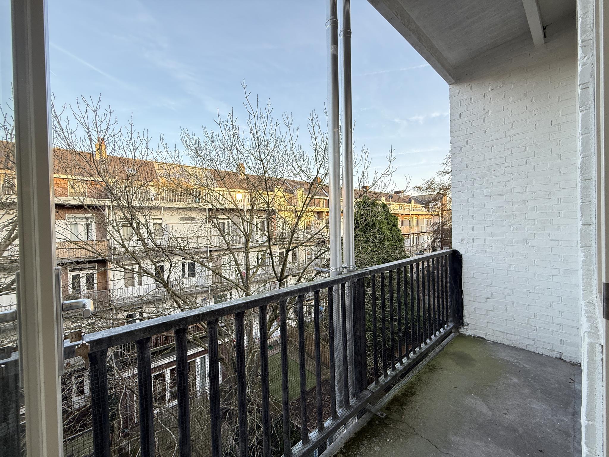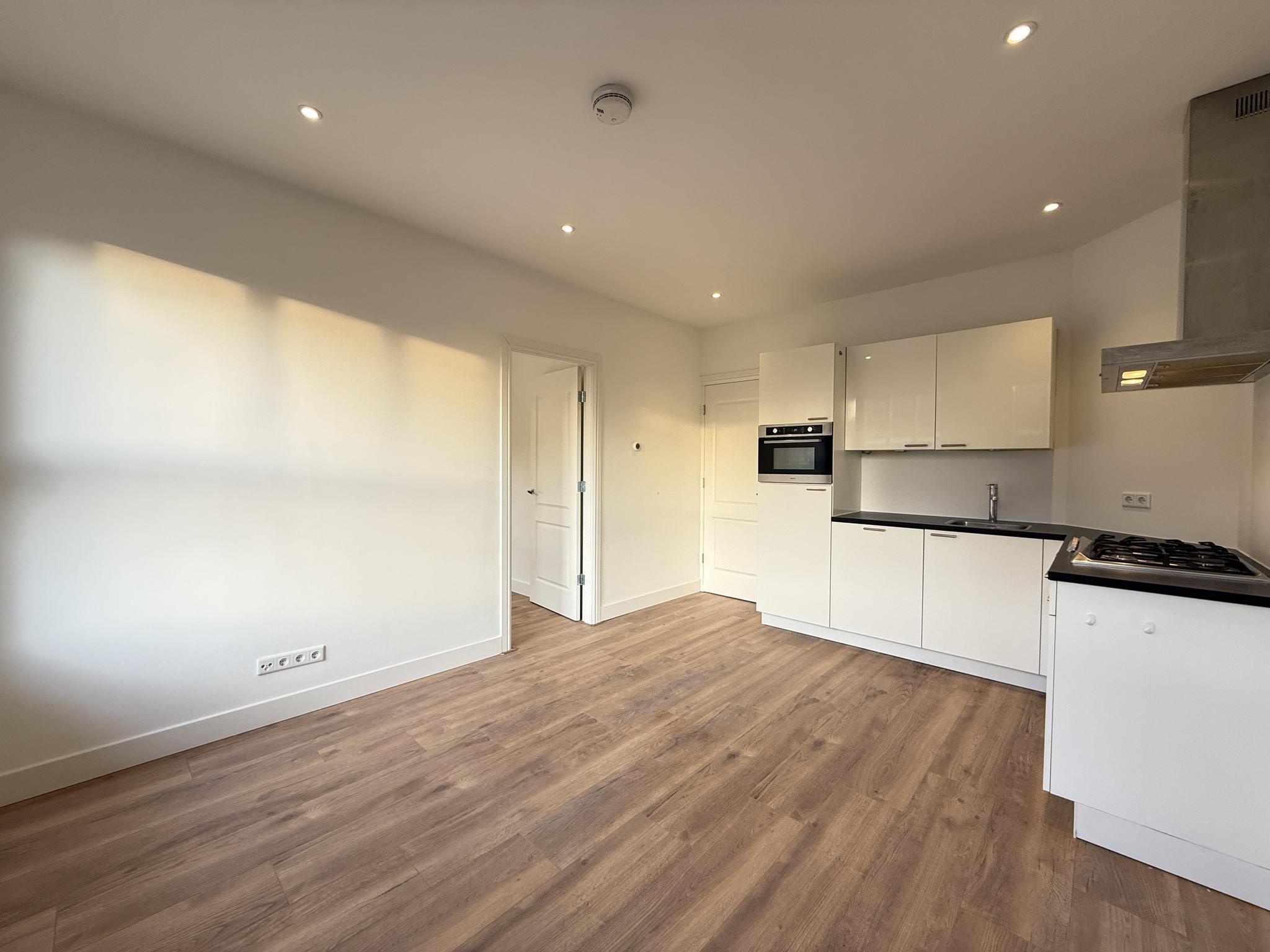 The living room is located at the front of the house. The open kitchen has a corner layout and is equipped with various built-in appliances such as a dishwasher, 4-burner gas stove, extractor hood, a microwave and a fridge with freezer compartment. There is a separate toilet with washbasin in the hall. Bedroom at the front of the house of approximately (2.4 x 3.3) 8m². The bedroom at the rear of the house of approximately (3.5 x 2.5) 9 m² has doors to the balcony of approximately 3.5 m². The balcony is located on the northeast. The bathroom has a washbasin with washbasin furniture, a walk-in shower, towel radiator and connection for the washing machine.