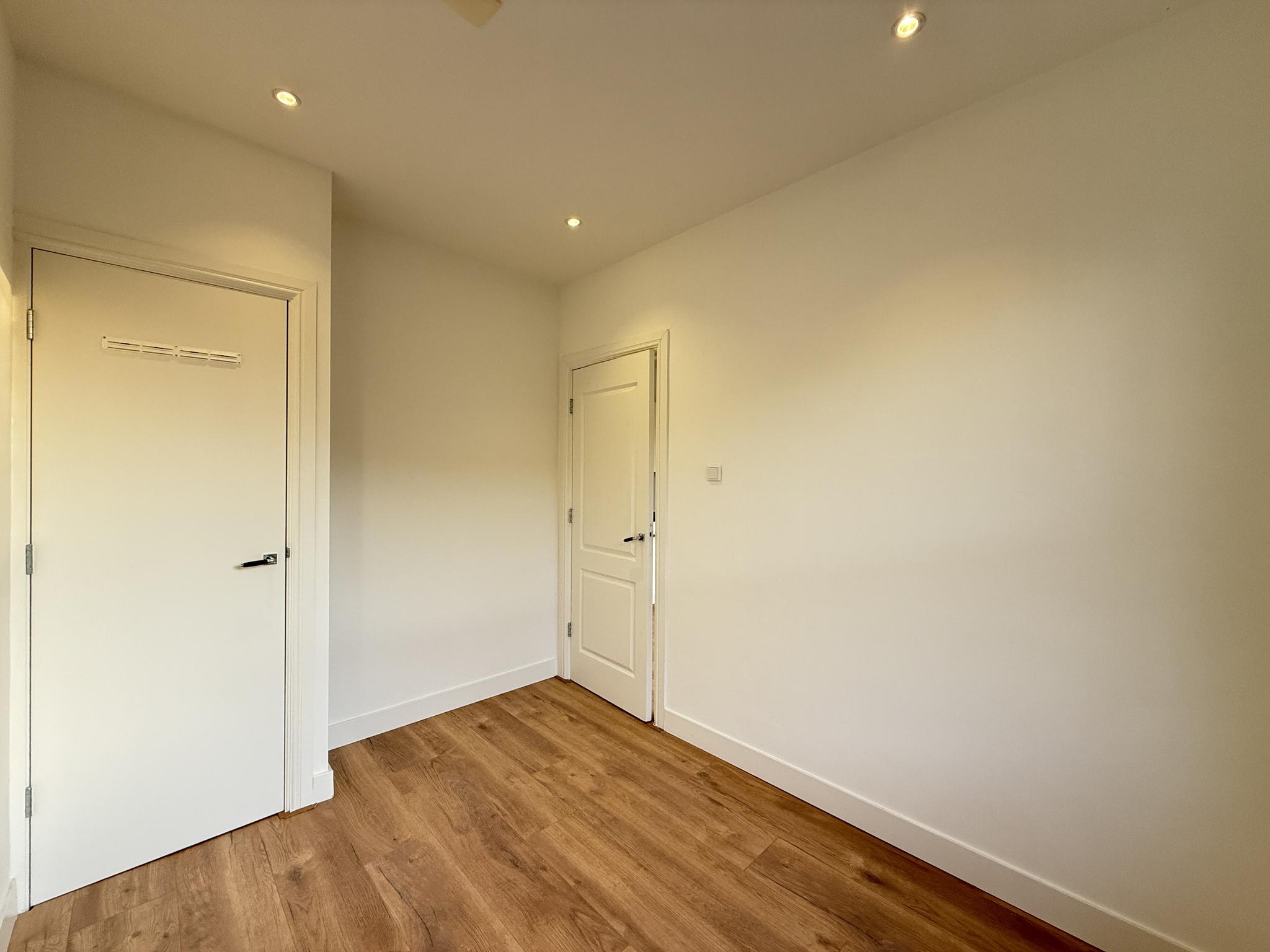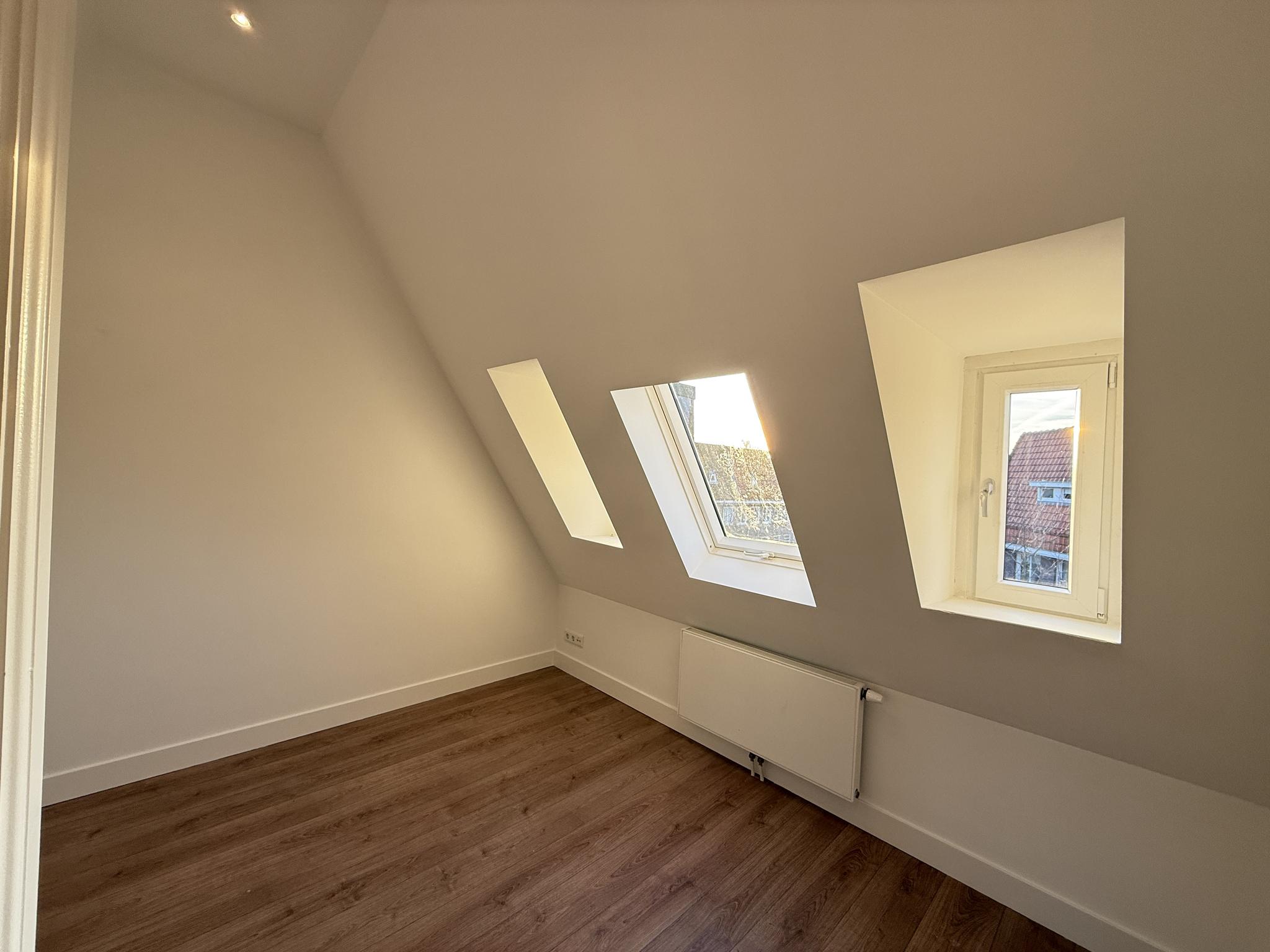 Aan de rustige achterzijde is de master bedroom van (3,1 x 3) circa 9,3 m² gelegen. Aan de voorzijde bevindt zich de slaapkamer van (2,5 x 2,9) circa 7,3 m² met schuine kap. De woning is voorzien van inbouwspots in alle kamers. De tweede badkamer is voorzien van een inloopdouche, wastafel met wastafelmeubel en een design radiator. Het heerlijke dakterras is via de ruime overloop te bereiken en is circa 16 m².