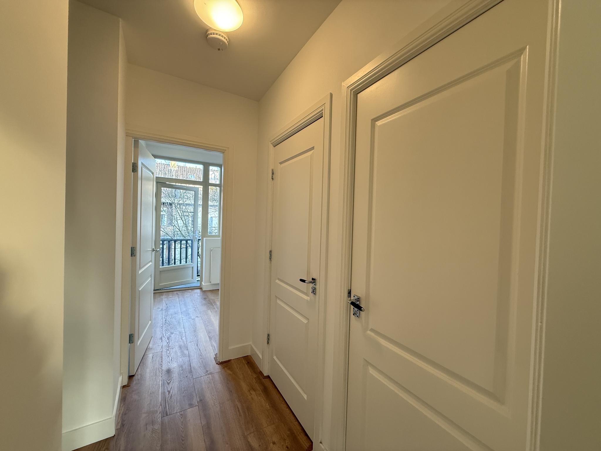 In de hal is een separaat toilet met fonteintje. Slaapkamer aan de voorzijde van de woning van circa 8m² (2,4 x 3,3). De slaapkamer aan de achterzijde van de woning van circa 9 m² (3,5 x 2,5) is voorzien van opslaande deuren naar het balkon van circa 3,5 m². Het balkon is gelegen op het noordoosten. De badkamer is voorzien van een wastafel met wastafelmeubel, een inloopdouche, handdoekradiator en aansluiting voor de wasmachine.