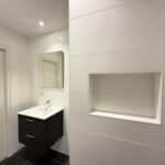 - Badkamervoorzieningen Wastafel, wastafelmeubel, inloopdouche, wastafel, wastafelmeubel, inloopdouche, wasmachineaansluiting