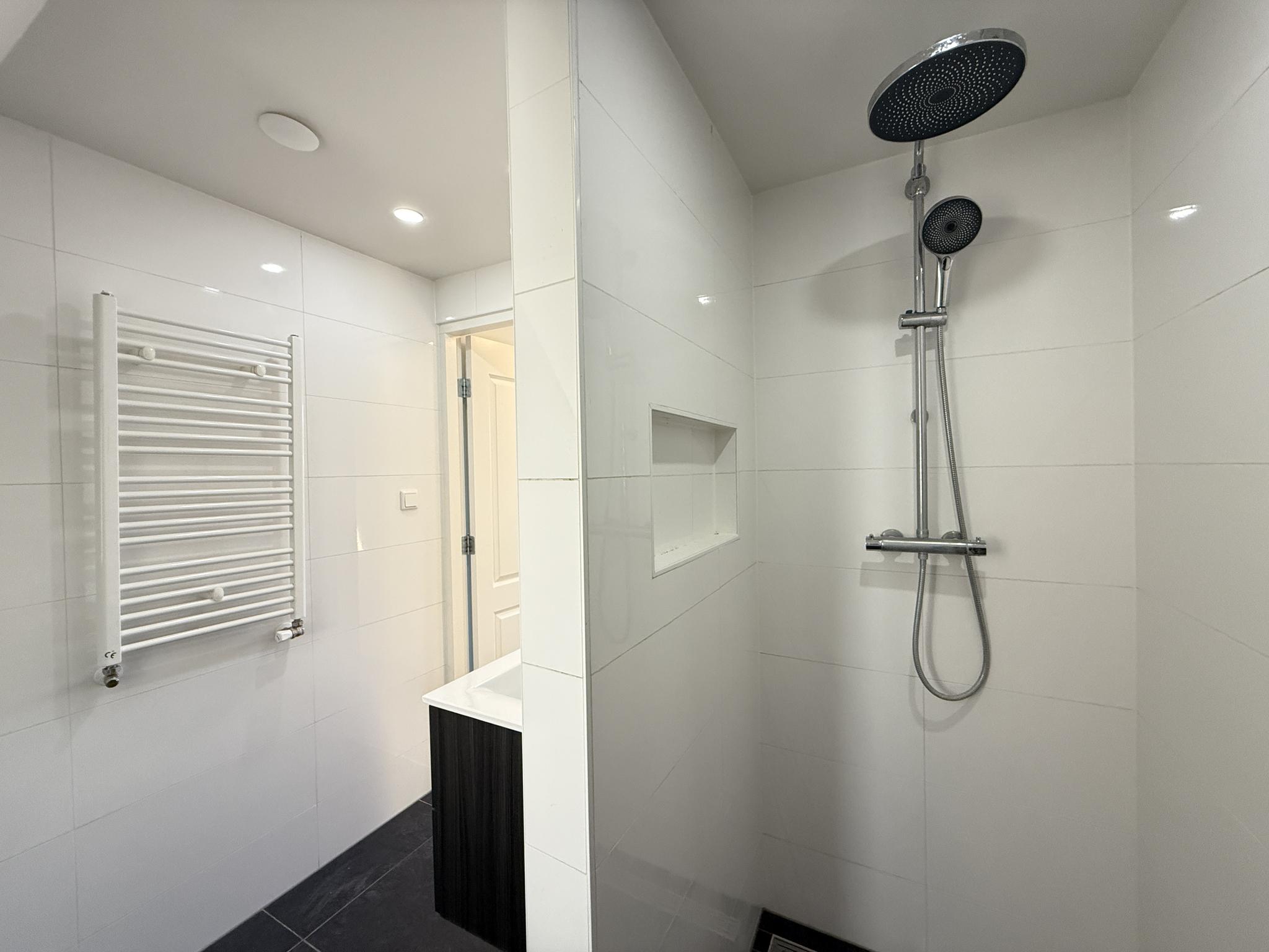 At the quiet rear is the master bedroom of approximately 9.3 m² (3.1 x 3). At the front is the bedroom of approximately 7.3 m² (2.5 x 2.9). The house has built-in spotlights in all rooms. The second bathroom has a walk-in shower, washbasin with washbasin furniture and a design radiator. The lovely roof terrace can be reached via the spacious landing and is approximately 16 m².