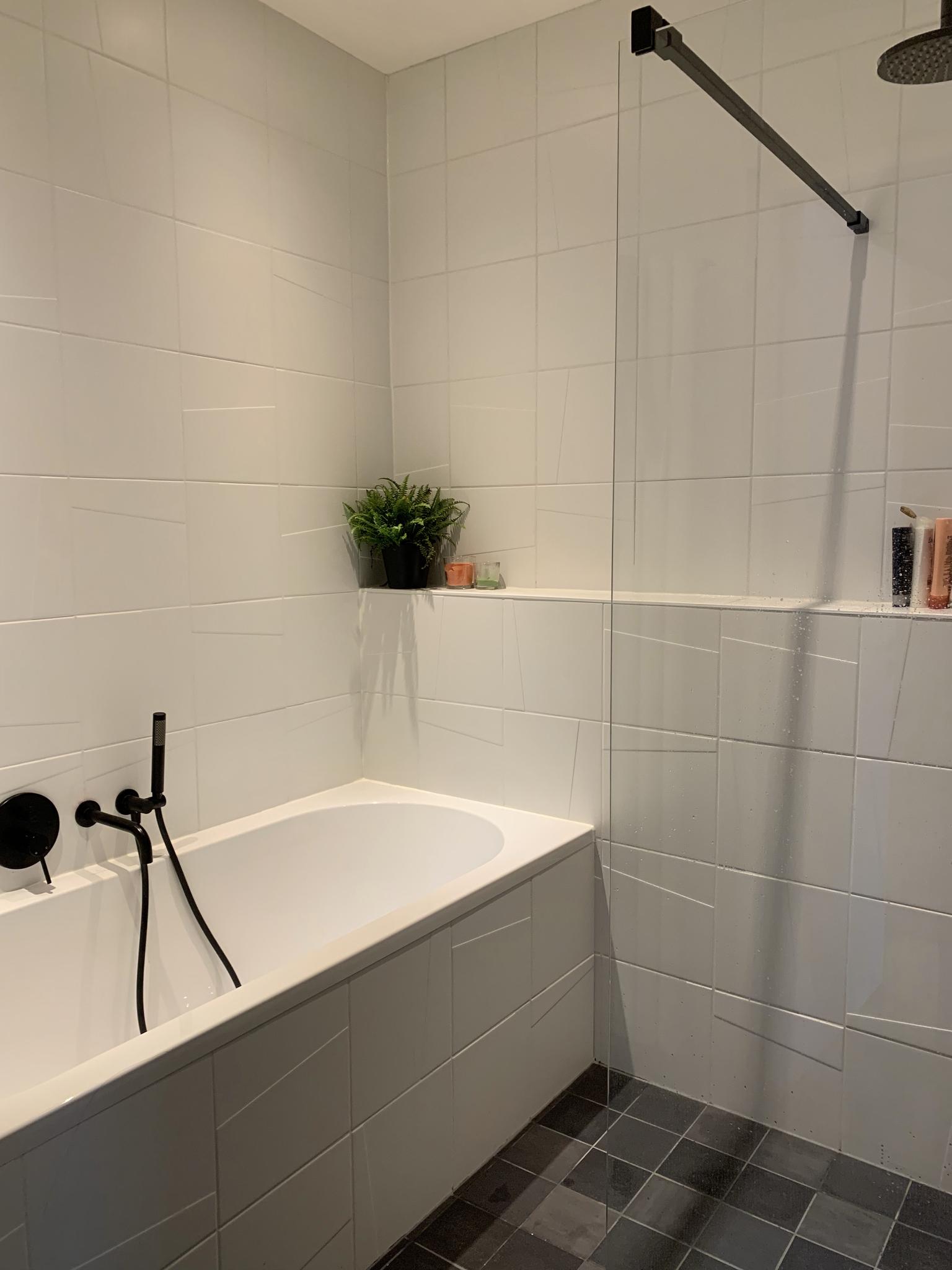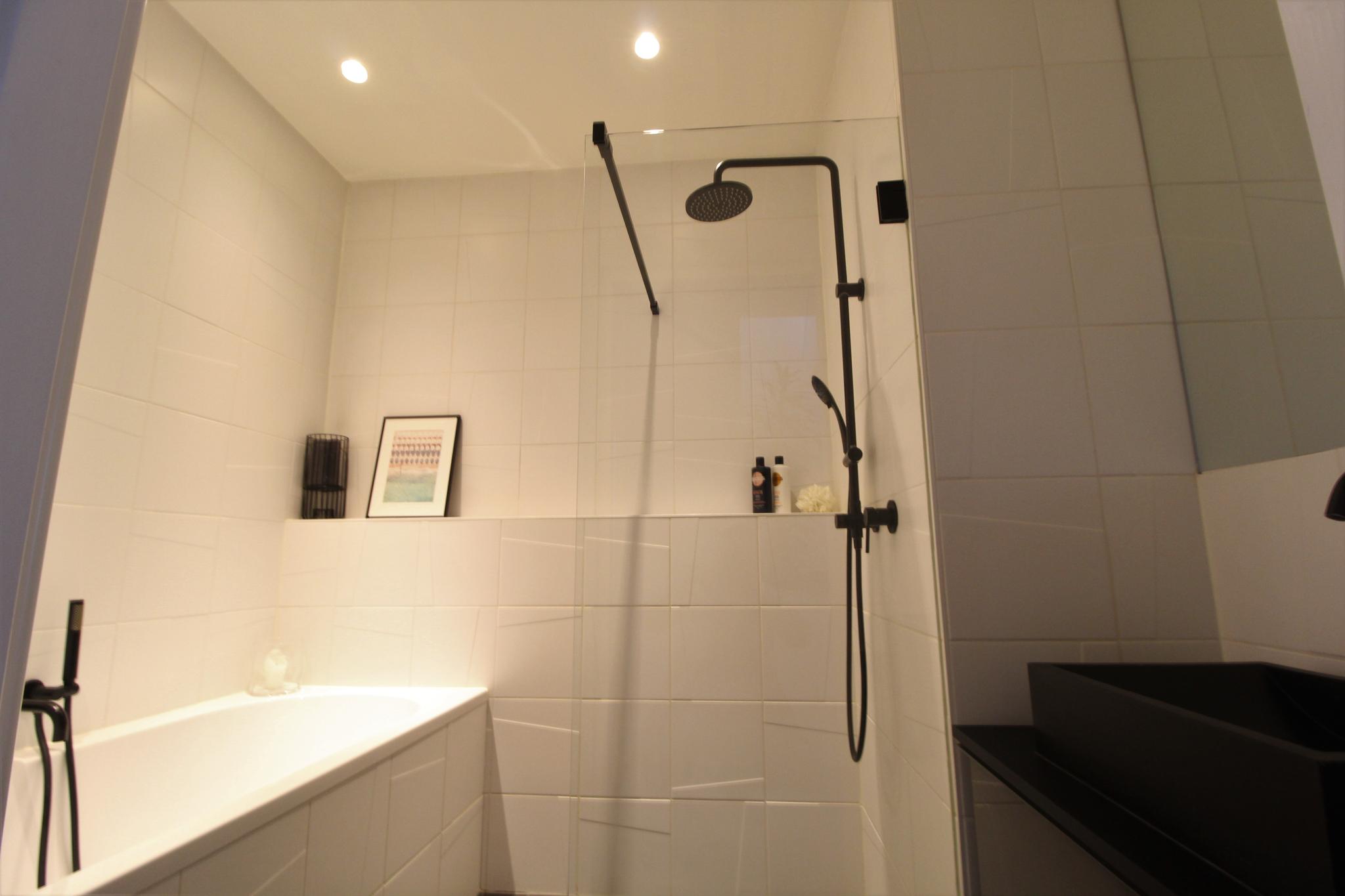 - Badkamervoorzieningen Ligbad, dubbele wastafel, wastafelmeubel, inloopdouche