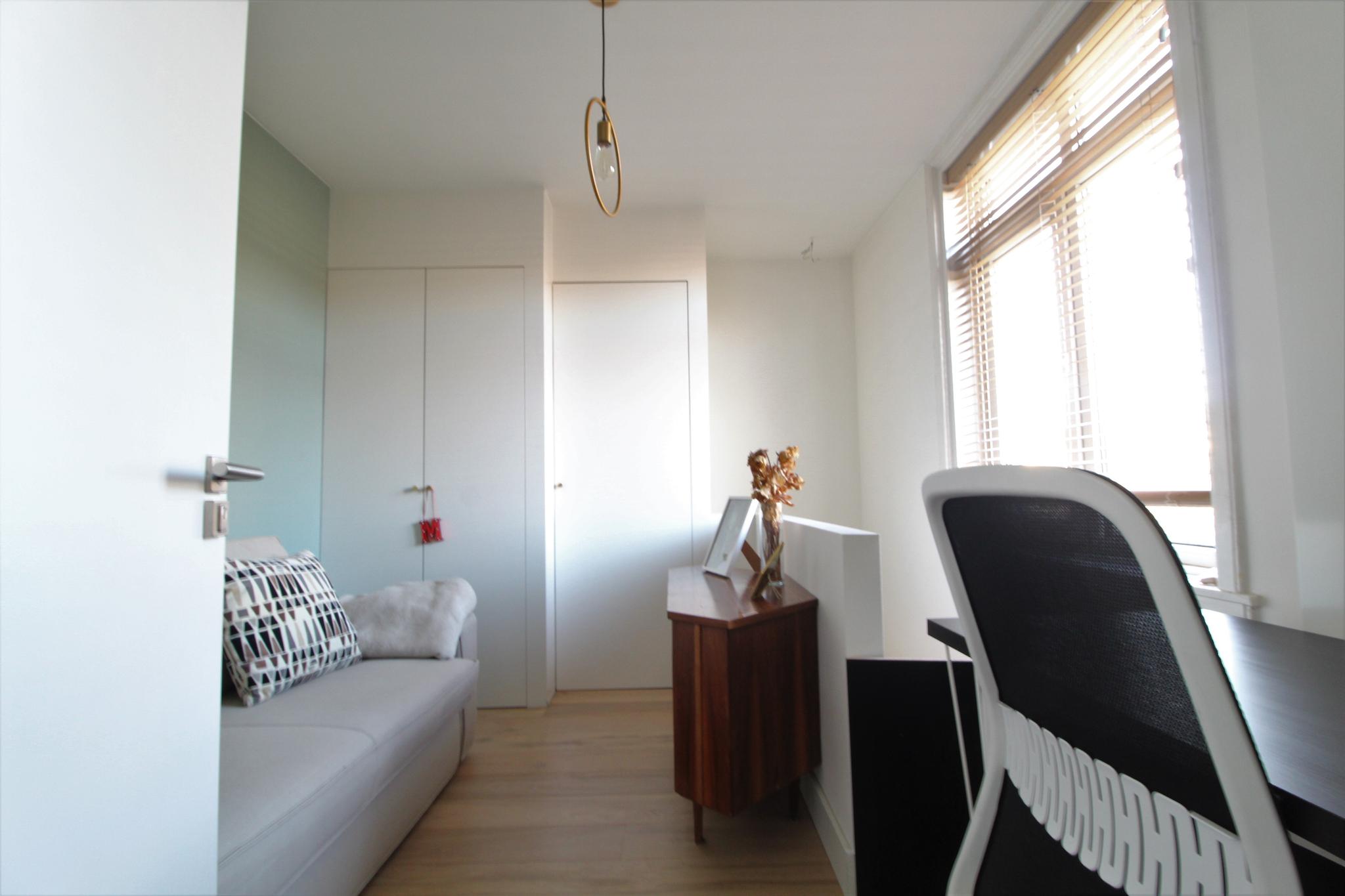 The bedroom is located at the rear of the house and measures approximately 11 m² (4.21 m x 2.66 m). From the bedroom you have access to a room with spacious wardrobes. The balcony at the rear of the house can also be reached from the bedroom. This sunny balcony measures approximately 9.5 m² and is located on the west.